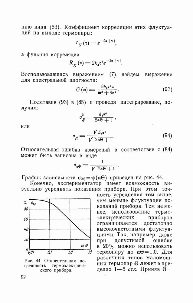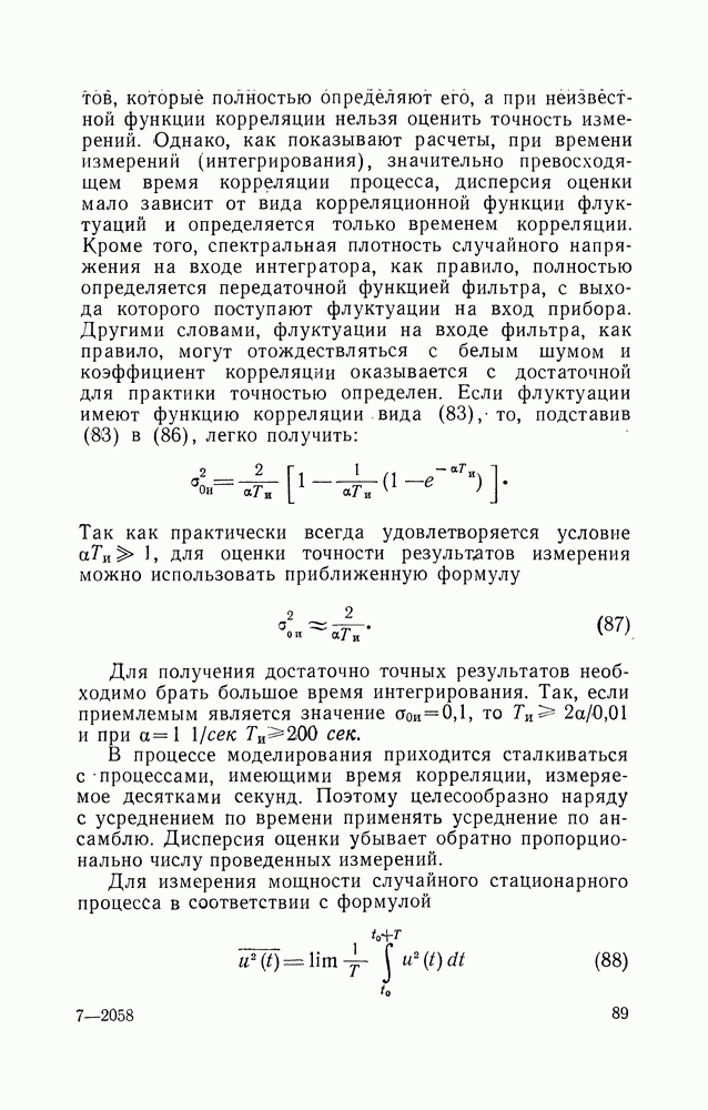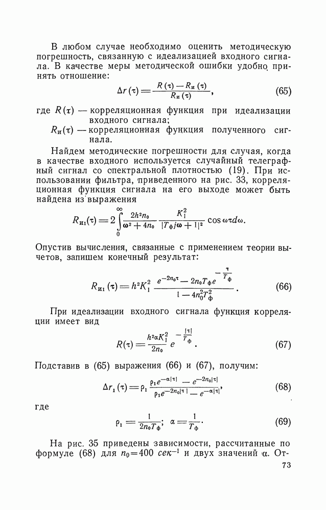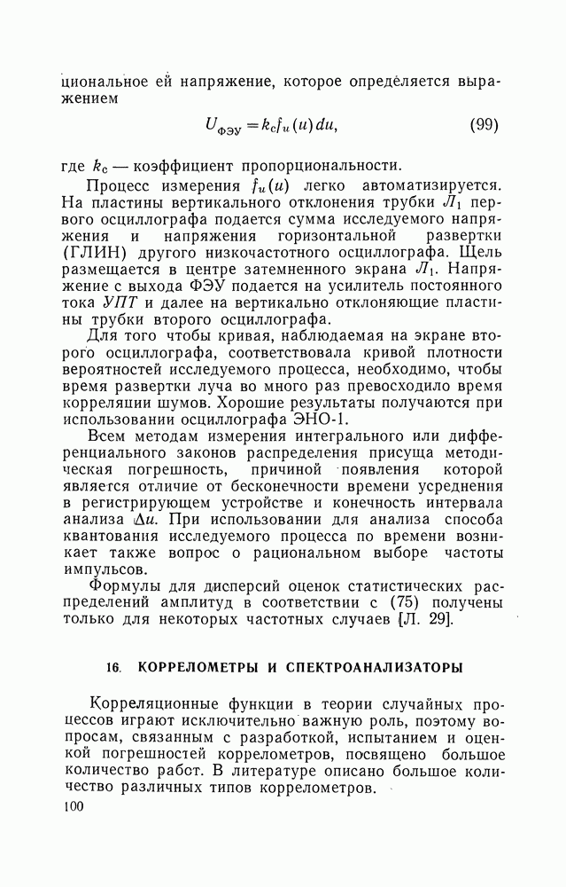 где Процесс измерения Для того чтобы кривая, наблюдаемая на экране второго осциллографа, соответствовала кривой плотности вероятностей исследуемого процесса, необходимо, чтобы время развертки луча во много раз превосходило время корреляции шумов. Хорошие результаты получаются при использовании осциллографа ЭНО-1. Всем методам измерения интегрального или дифференциального законов распределения присуща методическая погрешность, причиной появления которой является отличие от бесконечности времени усреднения в регистрирующем устройстве и конечность интервала анализа Формулы для дисперсий оценок статистических распределений амплитуд в соответствии с (75) получены только для некоторых частотных случаев