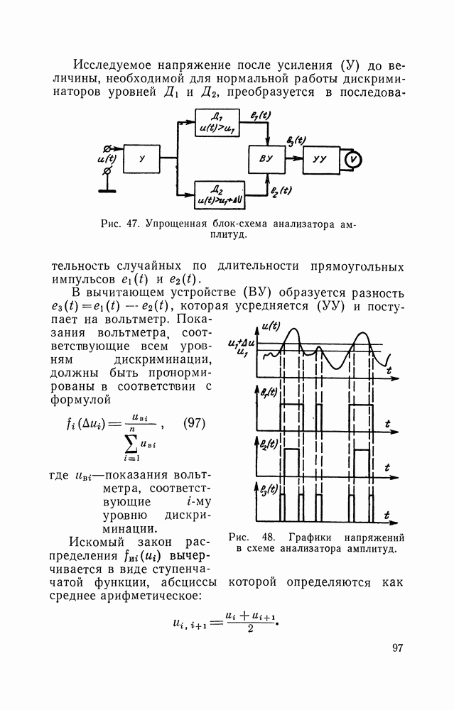 где На основании выражения (96) блок-схема дифференциального анализатора может быть представлена в виде, приведенном на рис. 47 (временные диаграммы на рис. 48). Исследуемое напряжение после усиления