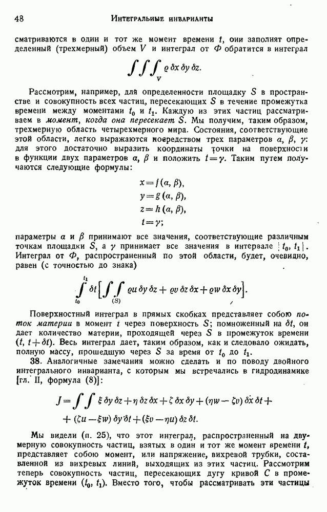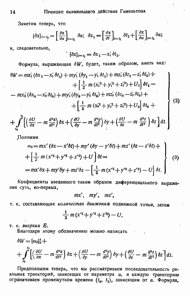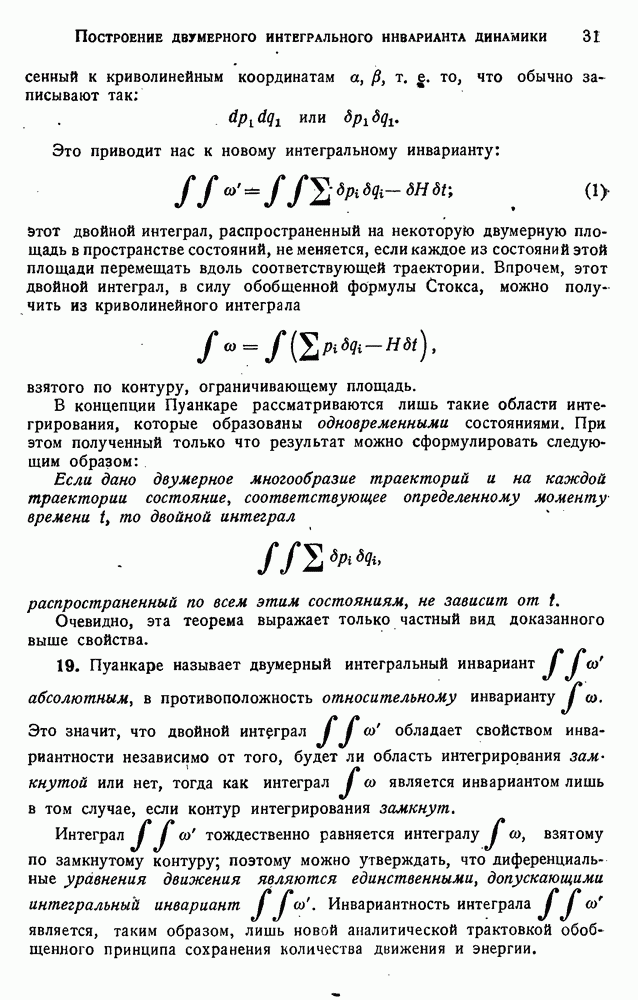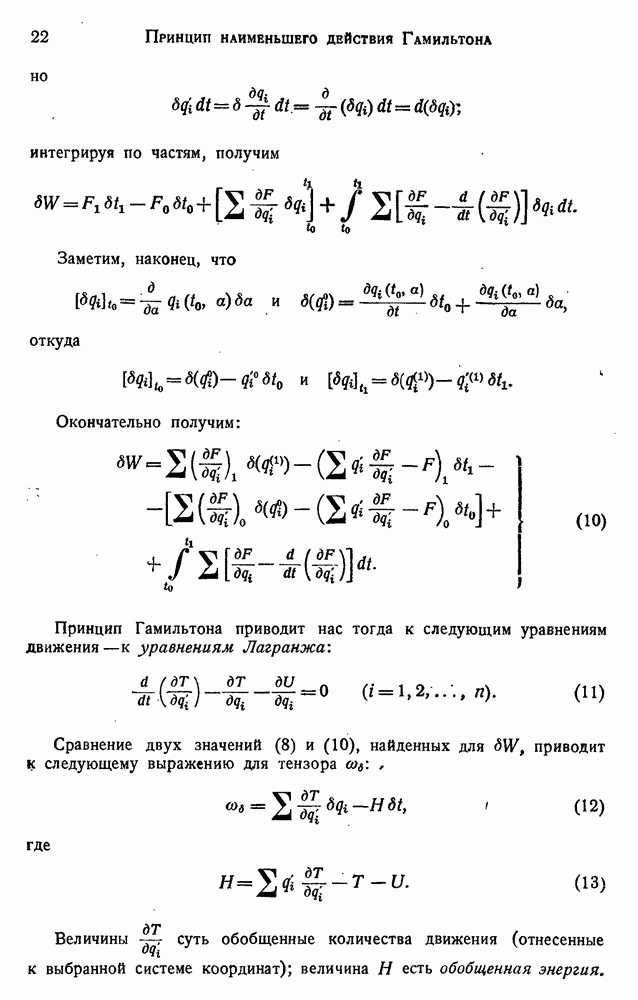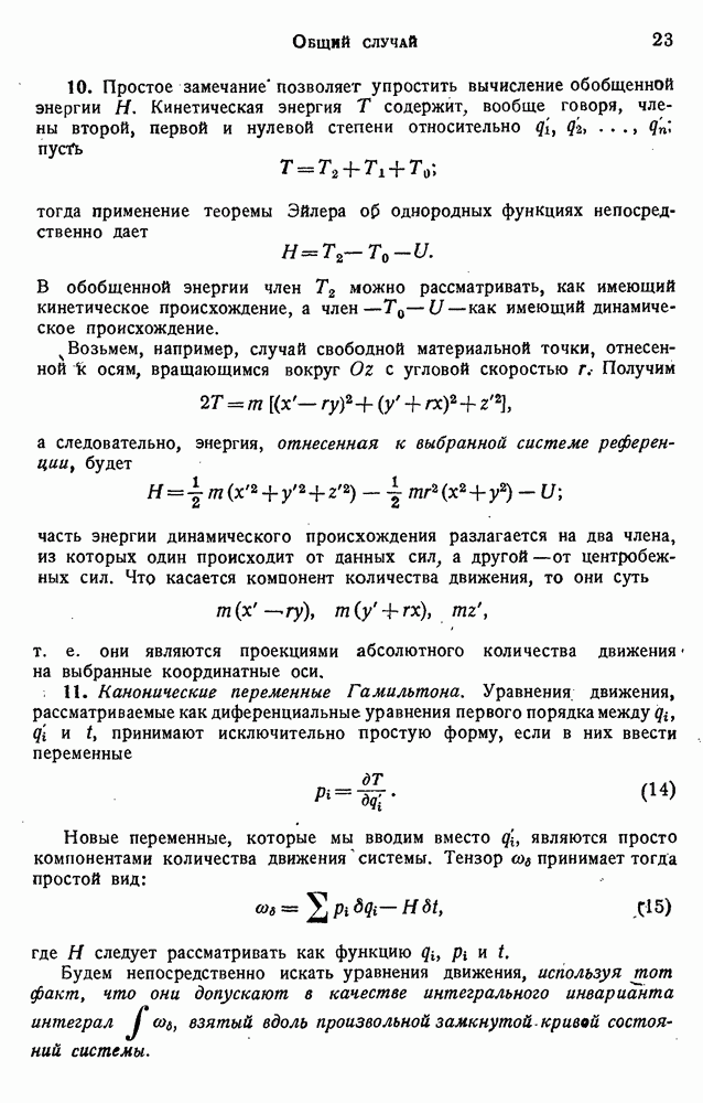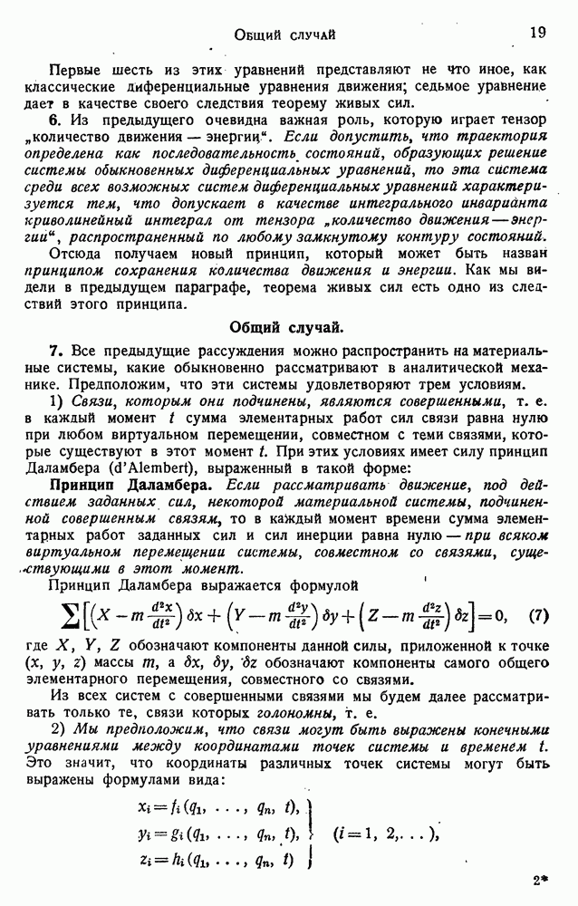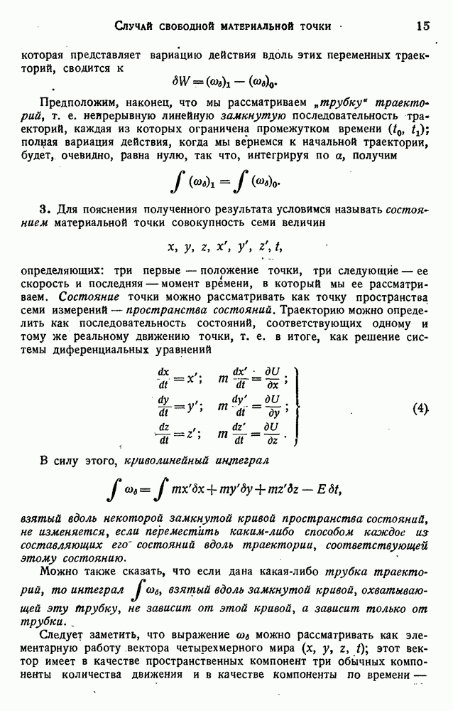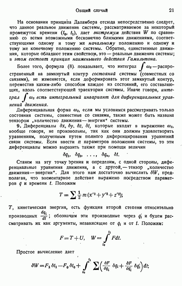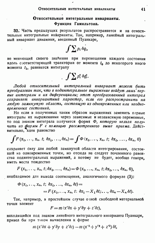 позволяет представить приращение (пространственное) энергии в каждой точке 93. Другое весьма важное приложение относится к динамике, именно к случаю, когда данные связи и силы не зависят от времени. Бесконечно малое преобразование которое допускают в этом случае уравнения движения, позволяет вывести из основного интегрального инварианта динамики