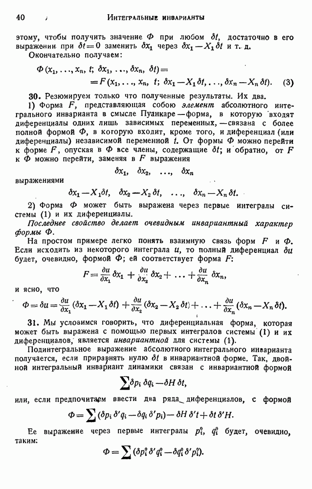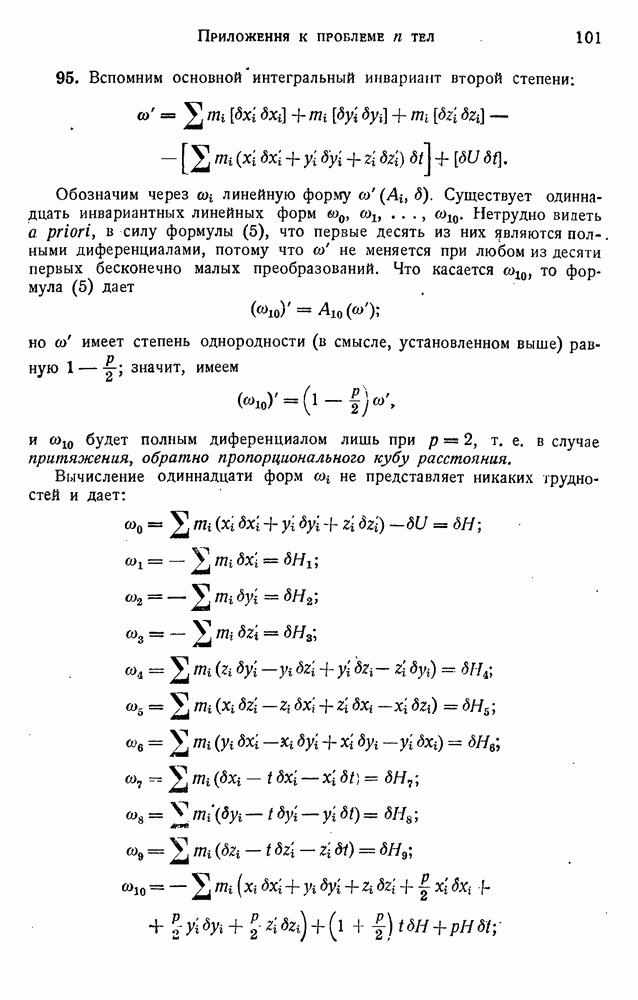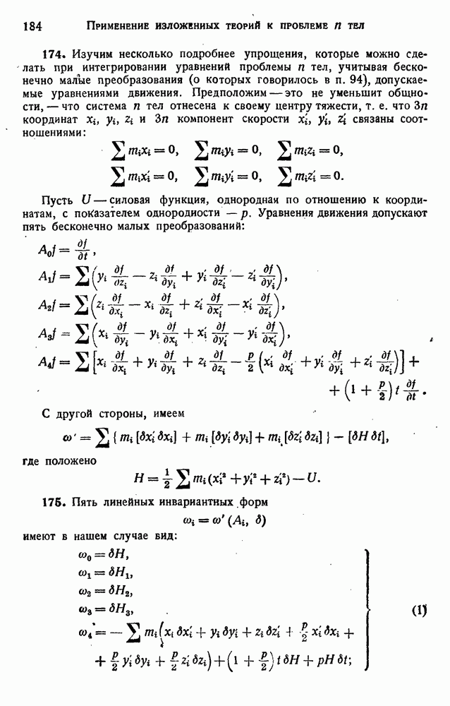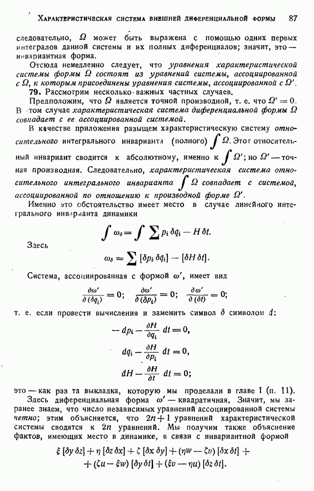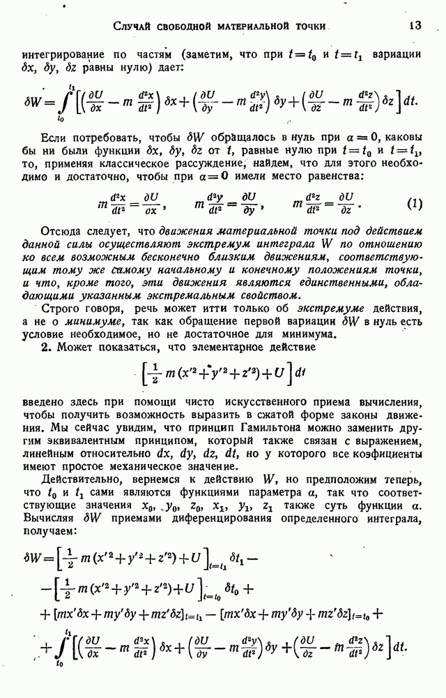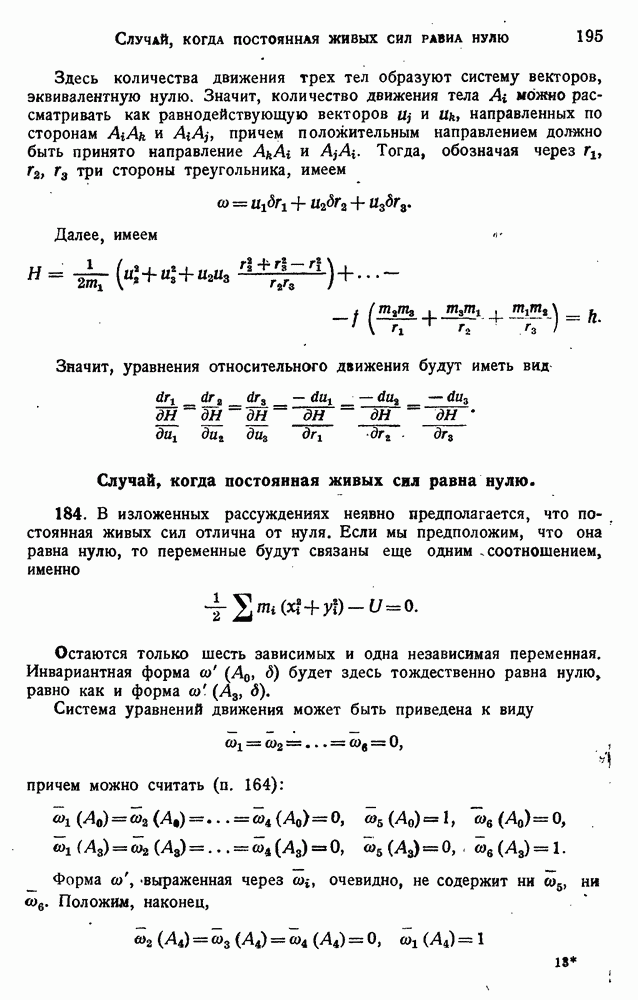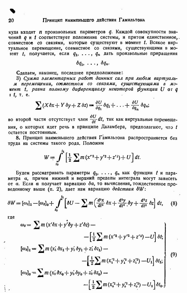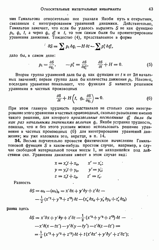 позволяет представить приращение (пространственное) энергии в каждой точке 93. Другое весьма важное приложение относится к динамике, именно к случаю, когда данные связи и силы не зависят от времени. Бесконечно малое преобразование которое допускают в этом случае уравнения движения, позволяет вывести из основного интегрального инварианта динамики