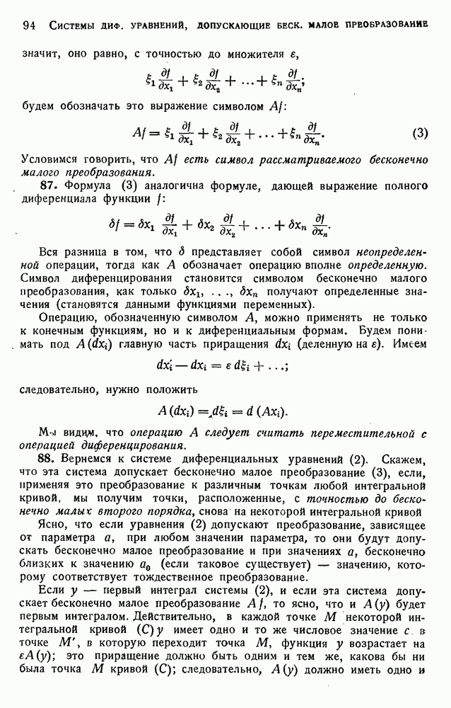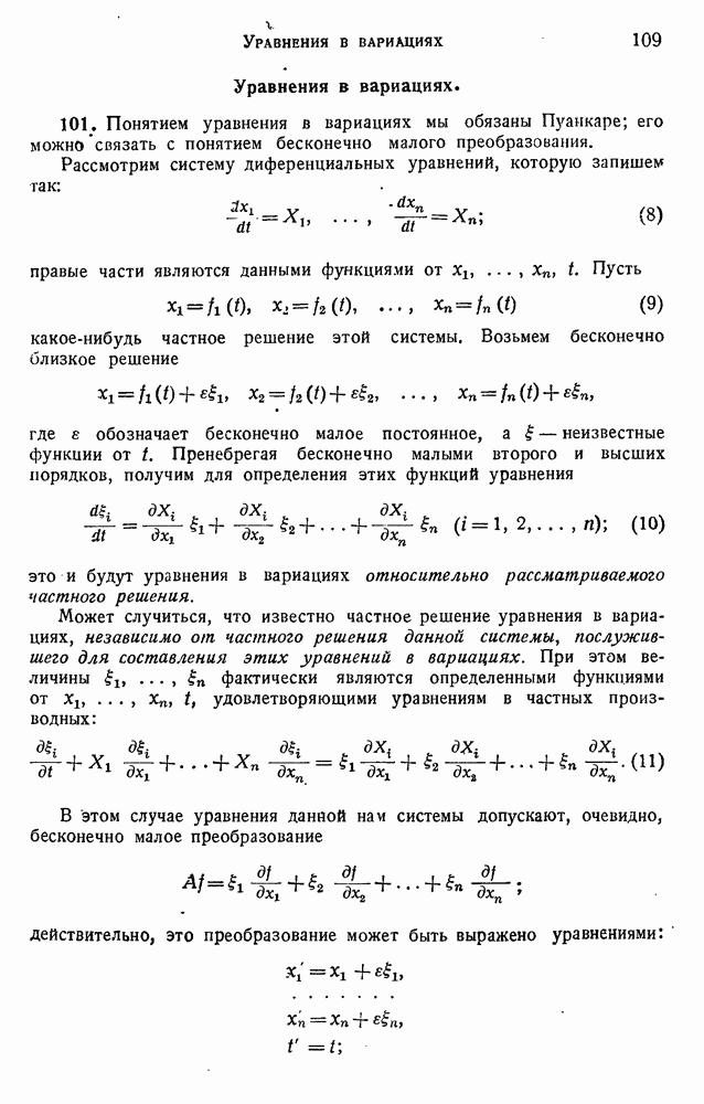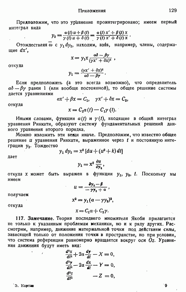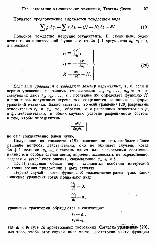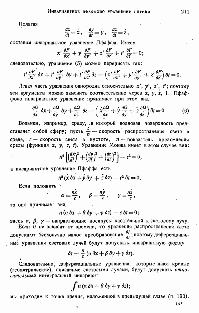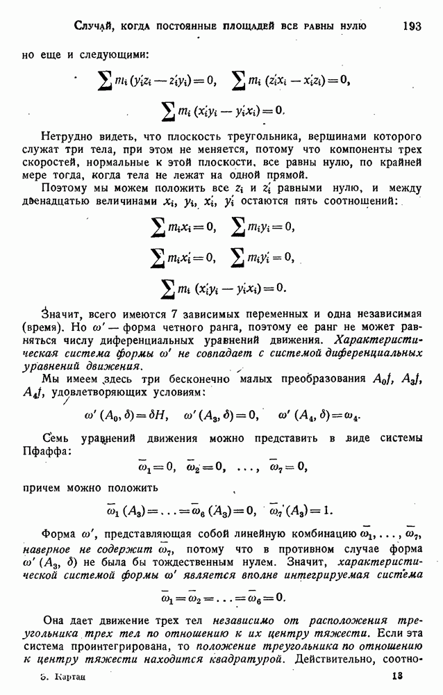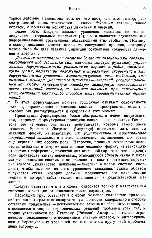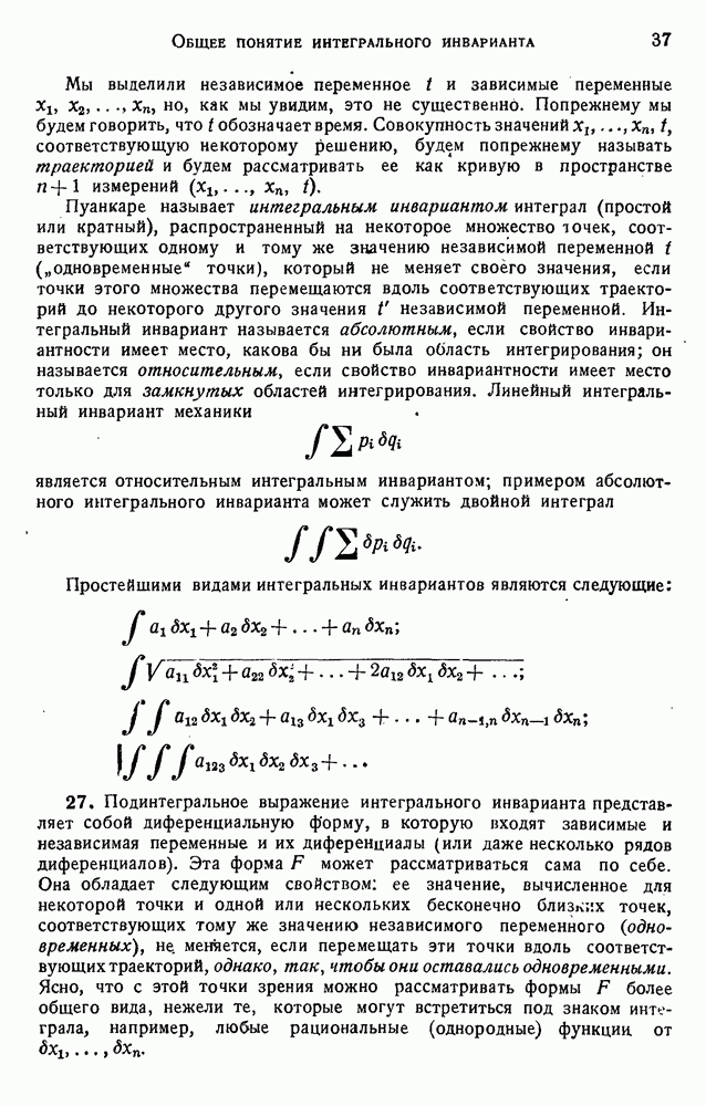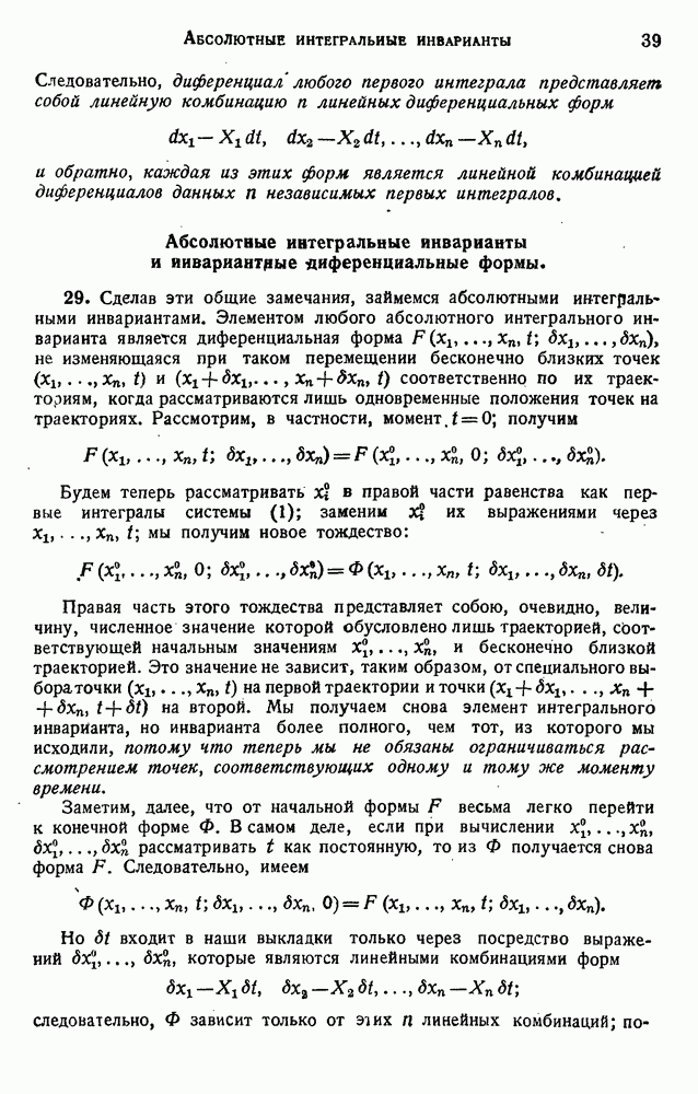 позволяет представить приращение (пространственное) энергии в каждой точке 93. Другое весьма важное приложение относится к динамике, именно к случаю, когда данные связи и силы не зависят от времени. Бесконечно малое преобразование которое допускают в этом случае уравнения движения, позволяет вывести из основного интегрального инварианта динамики