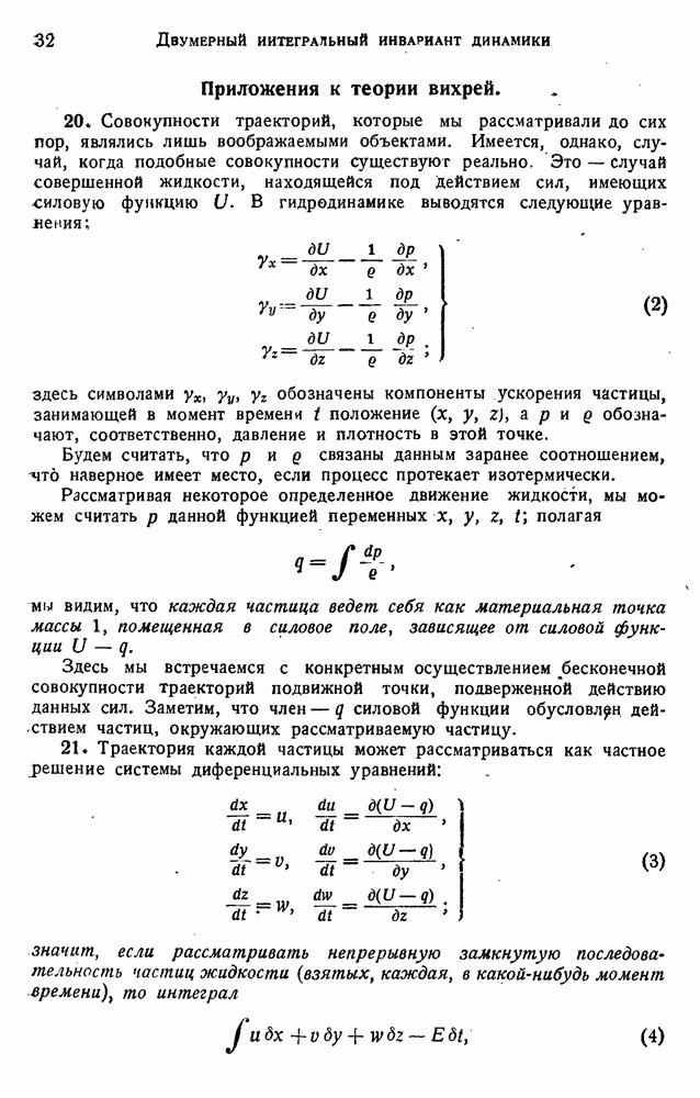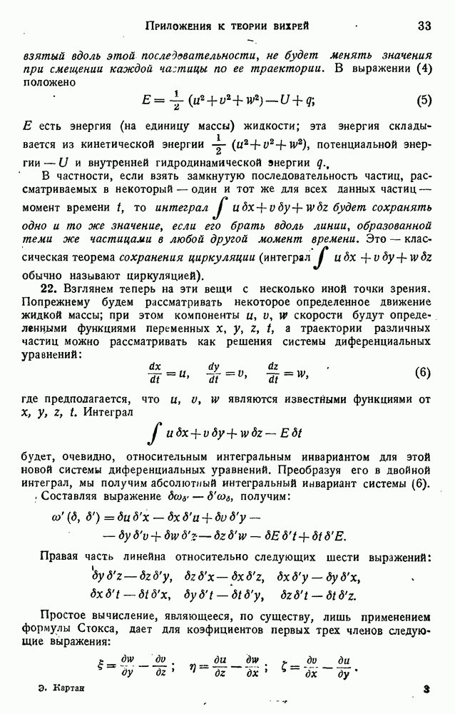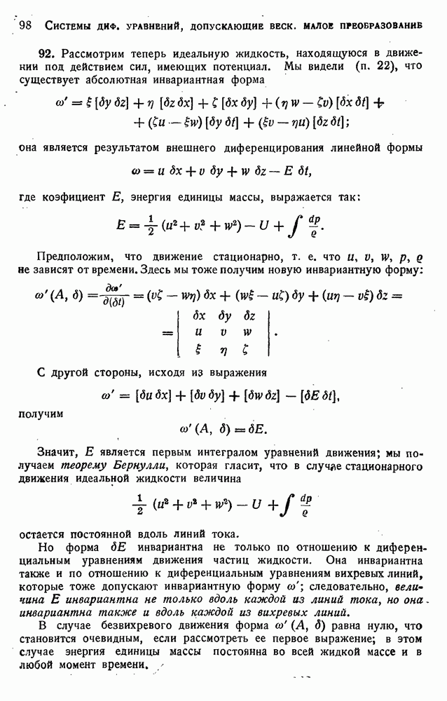 она определяет траектории частиц, но не указывает, как эти траектории пробегаются частицами в зависимости от времени. Формула (5) также выражает то свойство, что форма 92. Рассмотрим теперь идеальную жидкость, находящуюся в движении под действием сил, имеющих потенциал. Мы видели