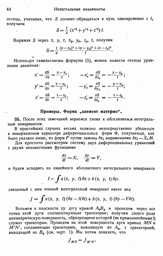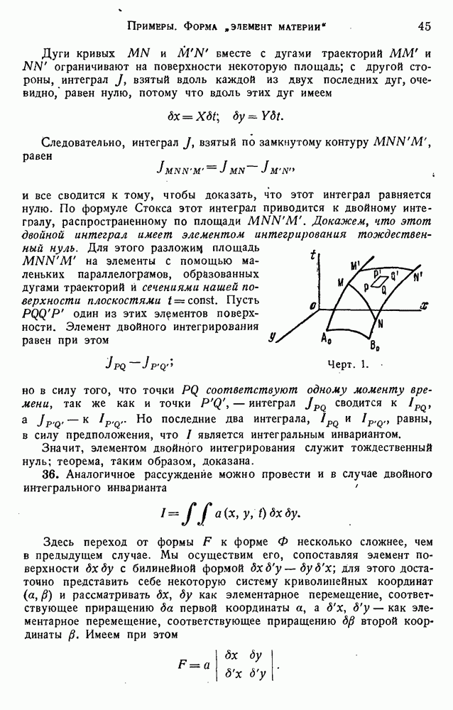 Свойство этой формы быть инвариантной ясно физически. Рассмотрим, в самом деле, трубку траекторий и пересечем эту трубку какими-либо двумя поверхностями, из которых трубка вырезает площади