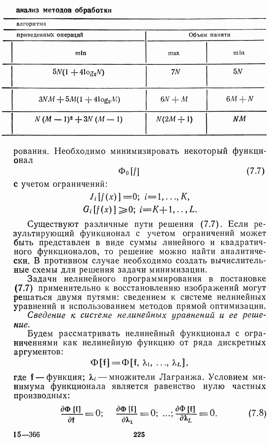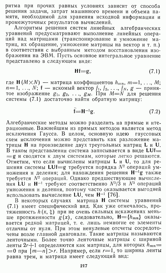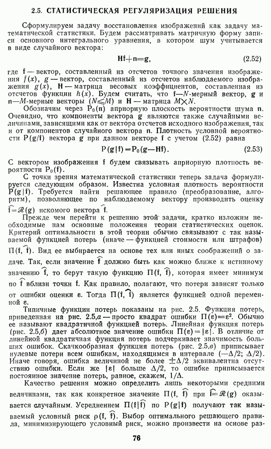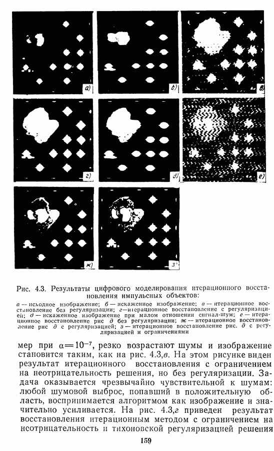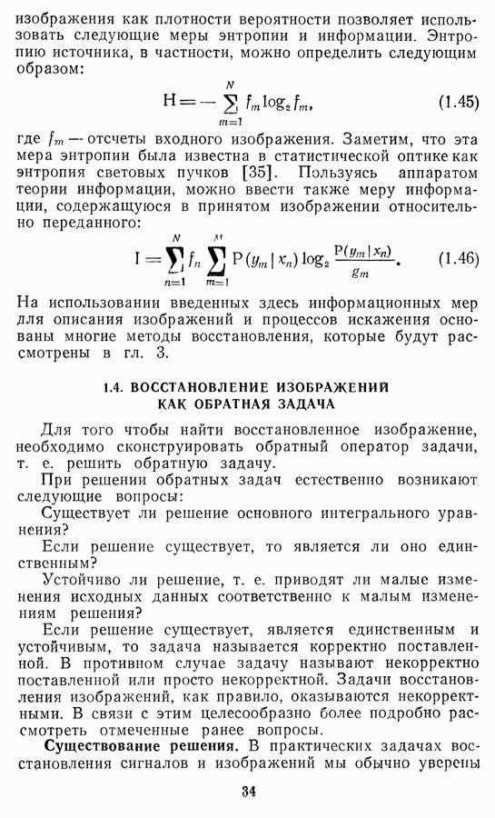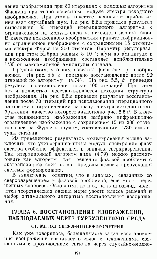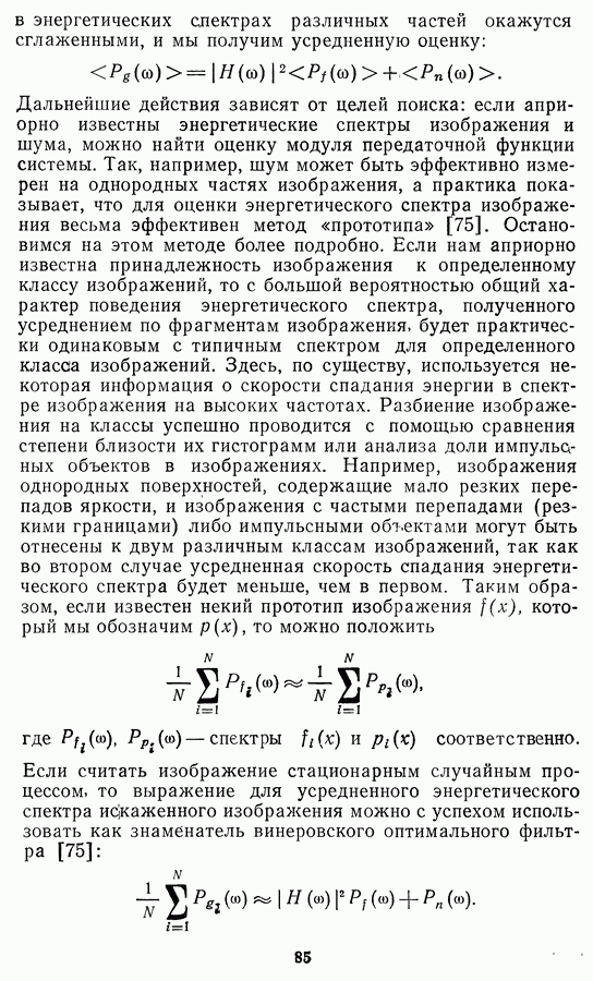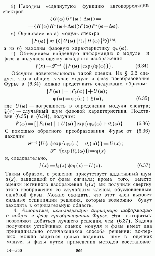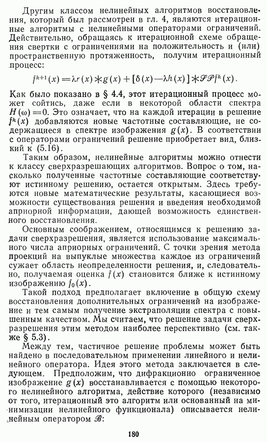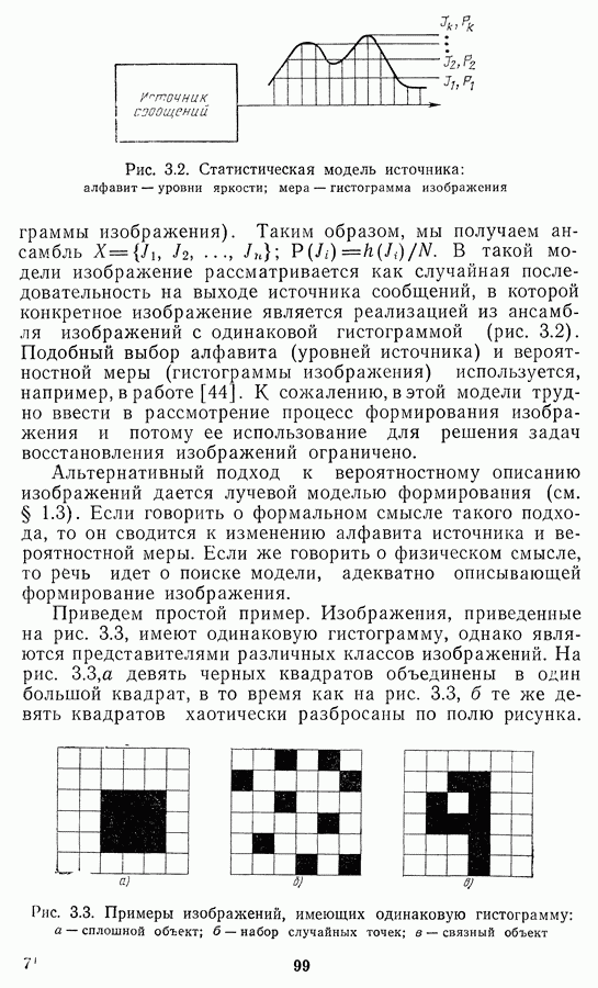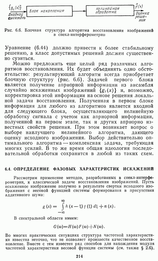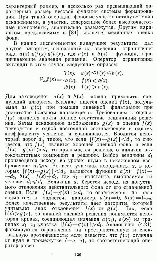 Этот прием, однако, оставляет неясным физический смысл производных преобразований. Еще один недостаток метода максимума энтропии состоит в том, что наилучшие результаты с его помощью получаются при восстановлении объектов, состоящих из отдельных импульсов на однородном фоне, а попытки применения метода к пространственно протяженным объектам вызывают появление флуктуаций [60]. Изложенные результаты, касающиеся методов максимума энтропии и максимума информации, могут быть объединены в единую схему, основанную на построении алгоритмов оценивания плотности распределения с помощью метода максимального правдоподобия. Тем самым рассмотренные алгоритмы можно включить в группу методов статистической регуляризации, описанных в § 2.4. Отличие лишь в том, что эти алгоритмы основаны на другой статистической модели — представлении самого изображения как плотности вероятности. Такая модель сразу же приводит к нелинейности рассматриваемых функционалов [98]. Однако отмеченные ранее недостатки заставляют искать алгоритмы, которые, сохраняя преимущества теоретико-информационных методов восстановления (неограниченность по полосе частот, неотрицательность решения и т. п.), позволяют восстанавливать более широкий класс изображений.