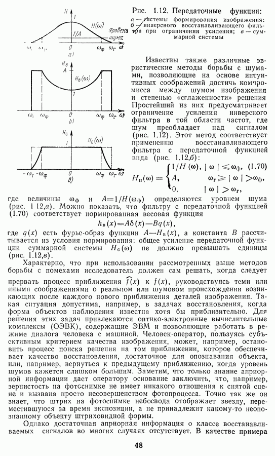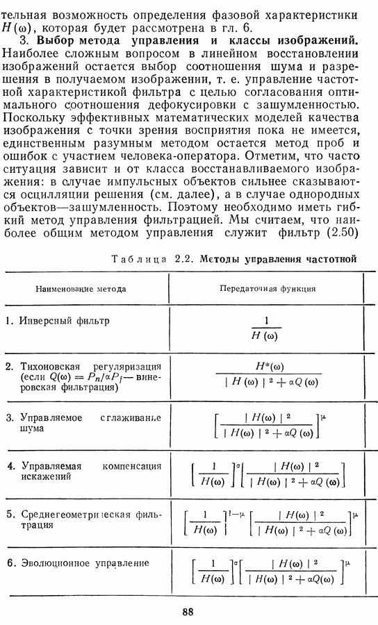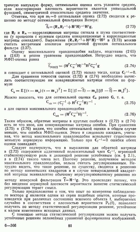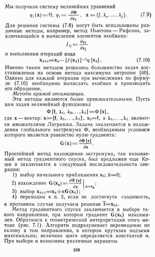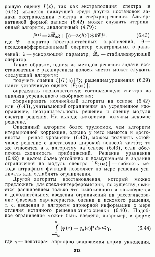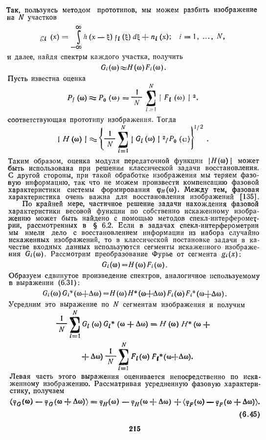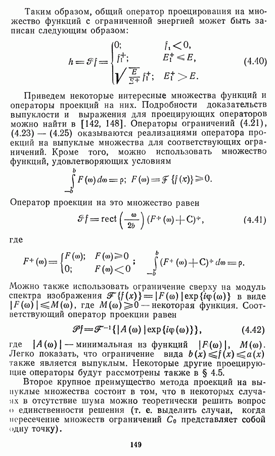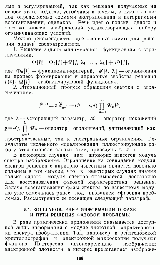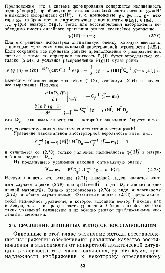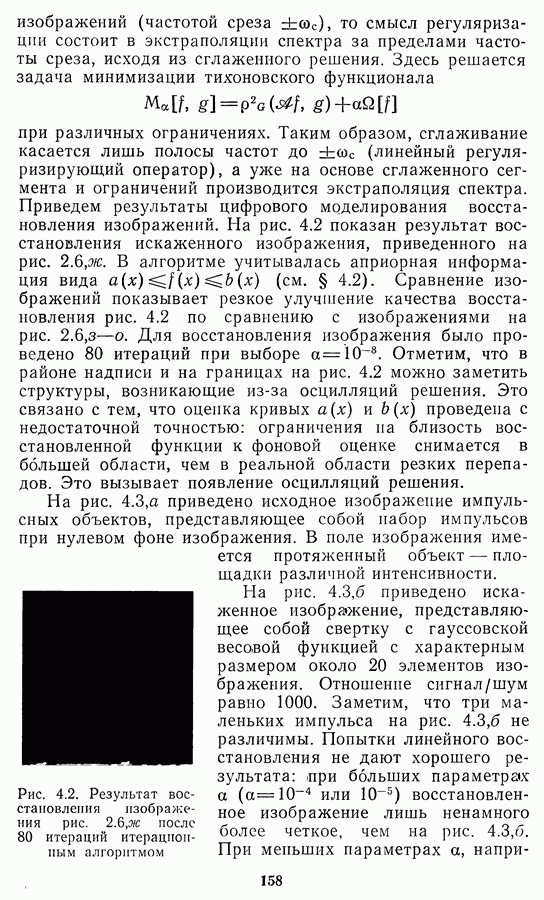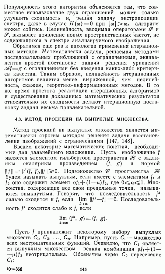 Этот прием, однако, оставляет неясным физический смысл производных преобразований. Еще один недостаток метода максимума энтропии состоит в том, что наилучшие результаты с его помощью получаются при восстановлении объектов, состоящих из отдельных импульсов на однородном фоне, а попытки применения метода к пространственно протяженным объектам вызывают появление флуктуаций [60]. Изложенные результаты, касающиеся методов максимума энтропии и максимума информации, могут быть объединены в единую схему, основанную на построении алгоритмов оценивания плотности распределения с помощью метода максимального правдоподобия. Тем самым рассмотренные алгоритмы можно включить в группу методов статистической регуляризации, описанных в § 2.4. Отличие лишь в том, что эти алгоритмы основаны на другой статистической модели — представлении самого изображения как плотности вероятности. Такая модель сразу же приводит к нелинейности рассматриваемых функционалов [98]. Однако отмеченные ранее недостатки заставляют искать алгоритмы, которые, сохраняя преимущества теоретико-информационных методов восстановления (неограниченность по полосе частот, неотрицательность решения и т. п.), позволяют восстанавливать более широкий класс изображений.