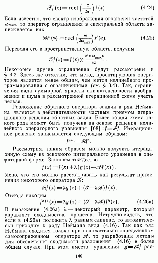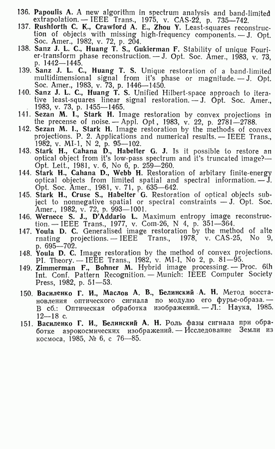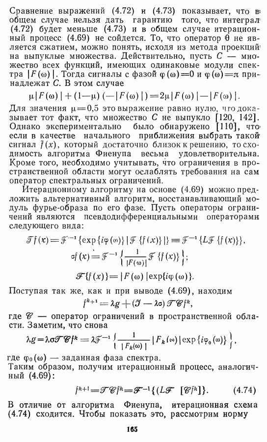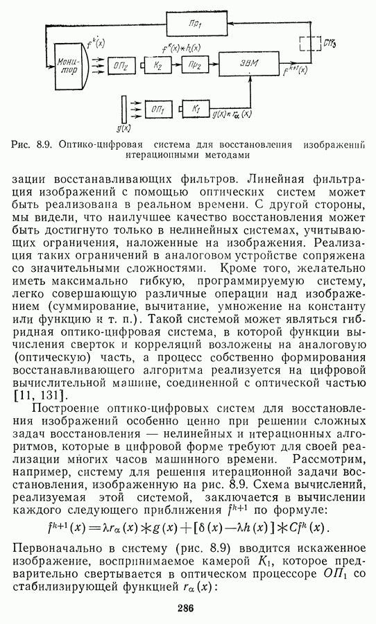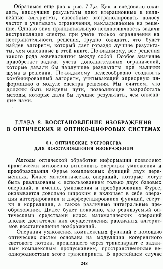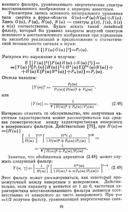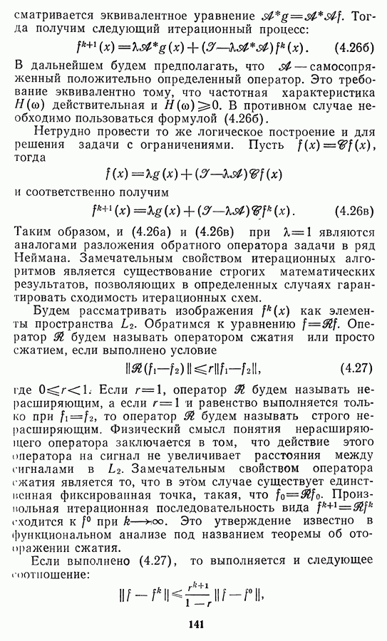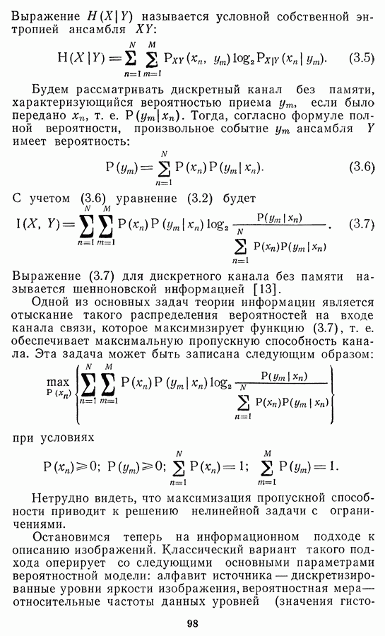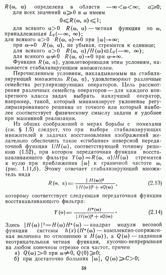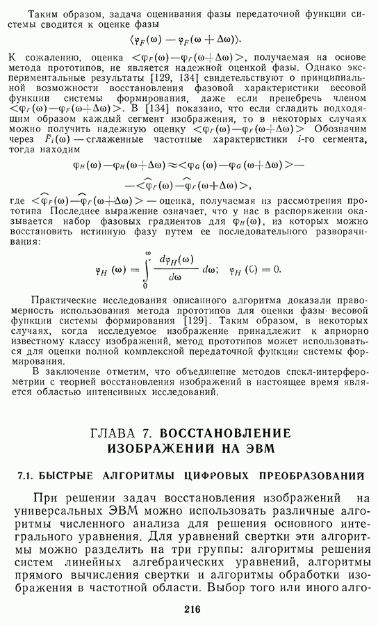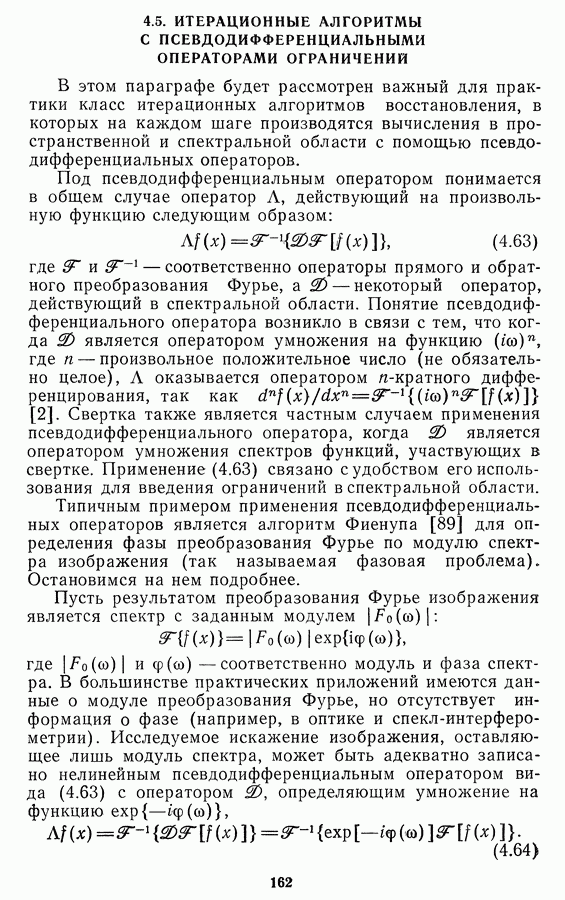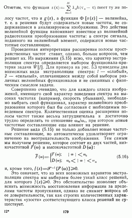 Этот прием, однако, оставляет неясным физический смысл производных преобразований. Еще один недостаток метода максимума энтропии состоит в том, что наилучшие результаты с его помощью получаются при восстановлении объектов, состоящих из отдельных импульсов на однородном фоне, а попытки применения метода к пространственно протяженным объектам вызывают появление флуктуаций [60]. Изложенные результаты, касающиеся методов максимума энтропии и максимума информации, могут быть объединены в единую схему, основанную на построении алгоритмов оценивания плотности распределения с помощью метода максимального правдоподобия. Тем самым рассмотренные алгоритмы можно включить в группу методов статистической регуляризации, описанных в § 2.4. Отличие лишь в том, что эти алгоритмы основаны на другой статистической модели — представлении самого изображения как плотности вероятности. Такая модель сразу же приводит к нелинейности рассматриваемых функционалов [98]. Однако отмеченные ранее недостатки заставляют искать алгоритмы, которые, сохраняя преимущества теоретико-информационных методов восстановления (неограниченность по полосе частот, неотрицательность решения и т. п.), позволяют восстанавливать более широкий класс изображений.