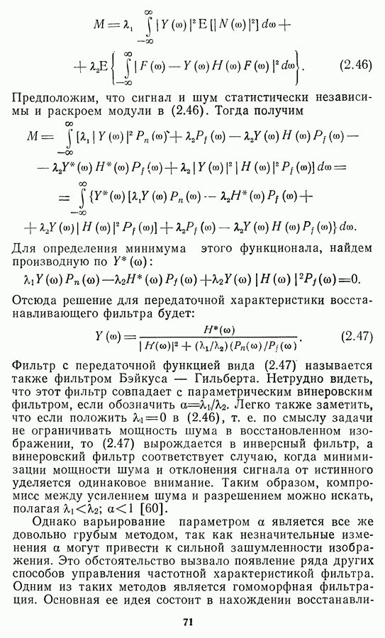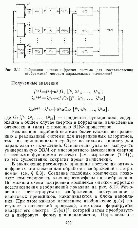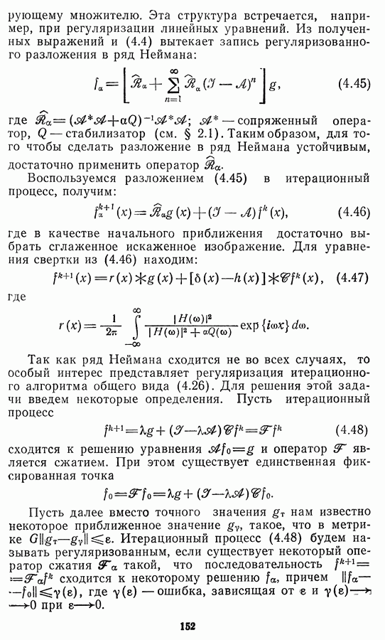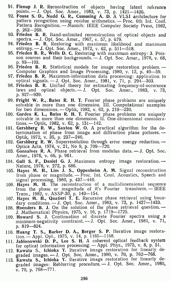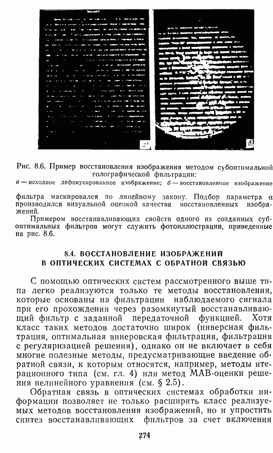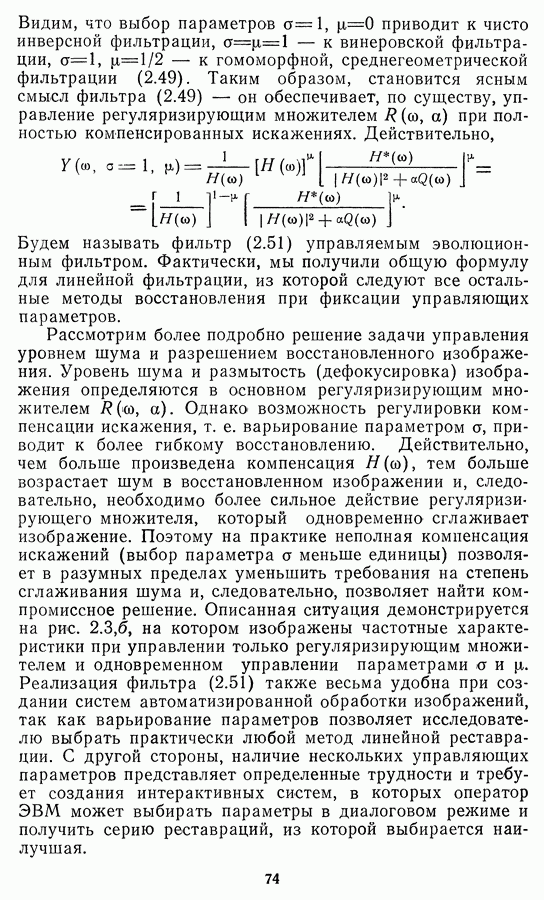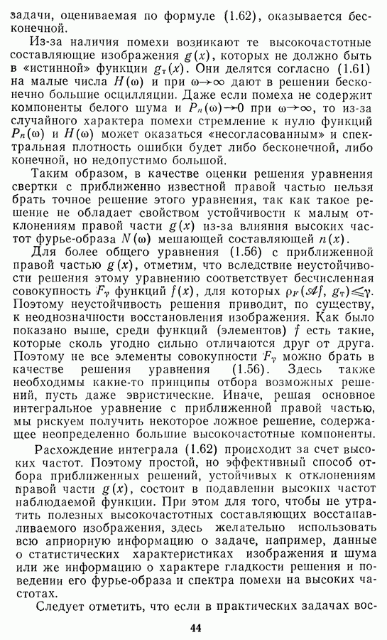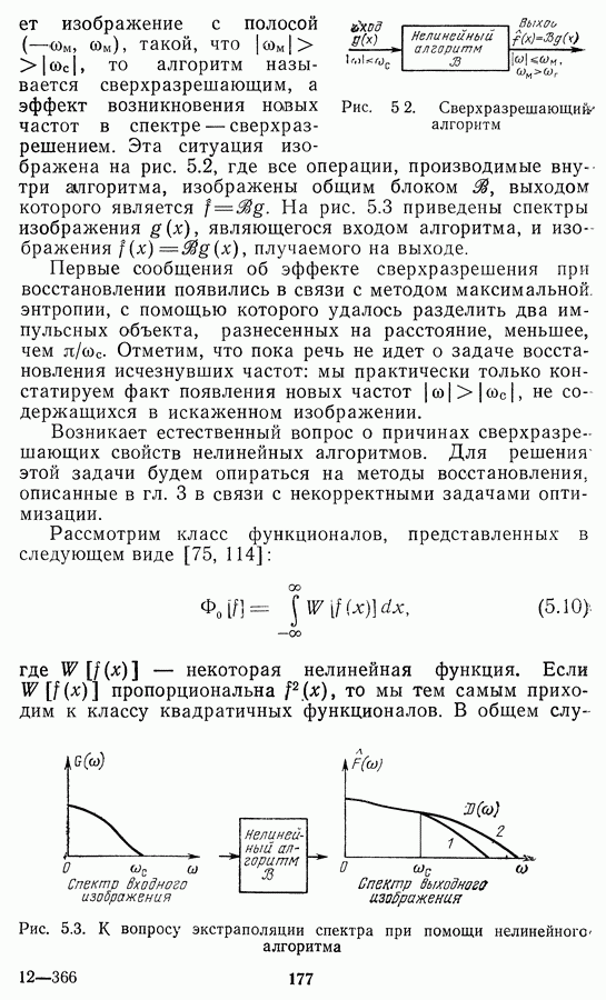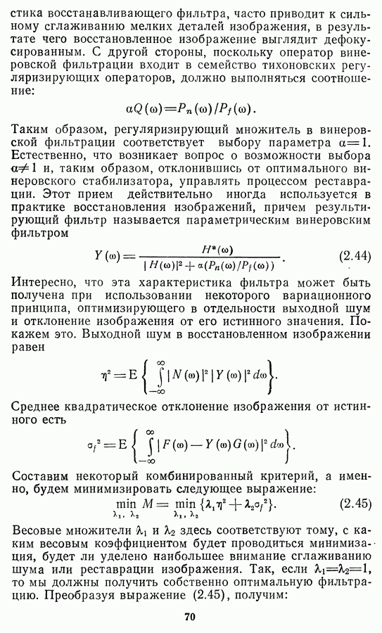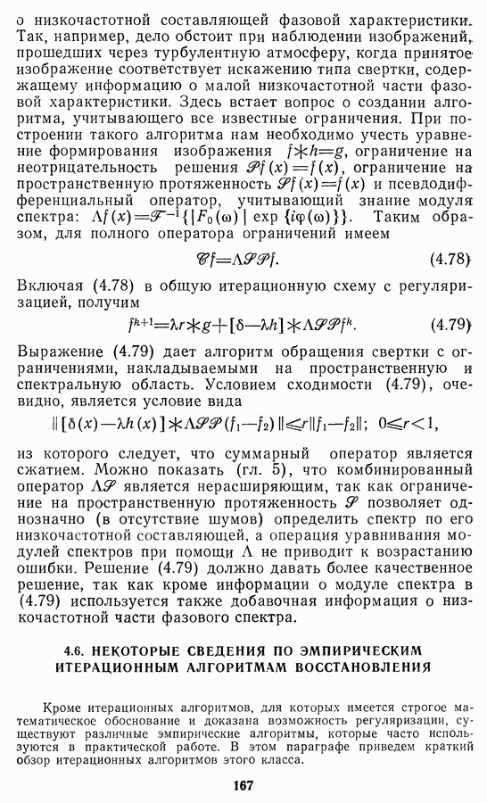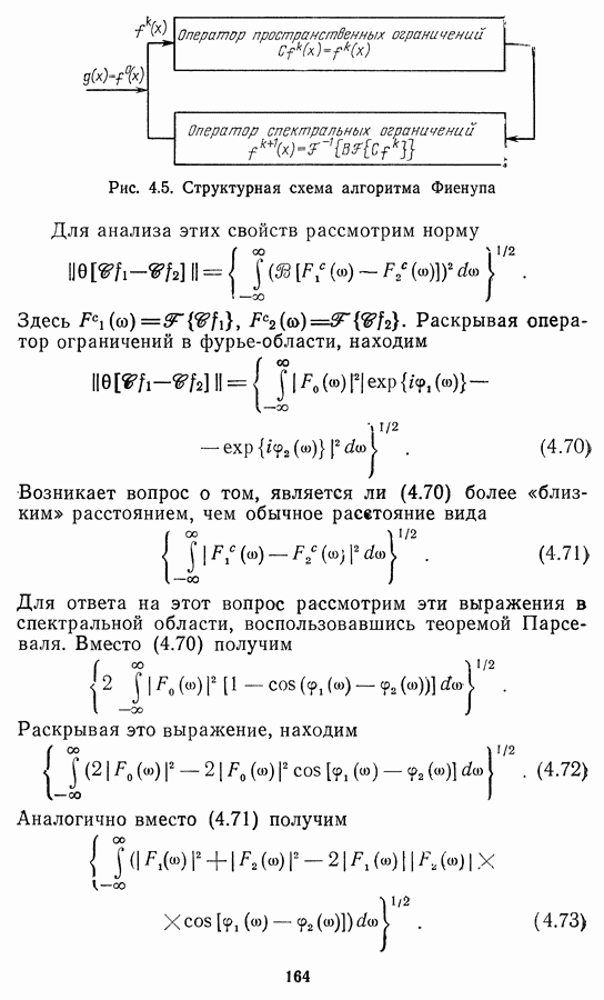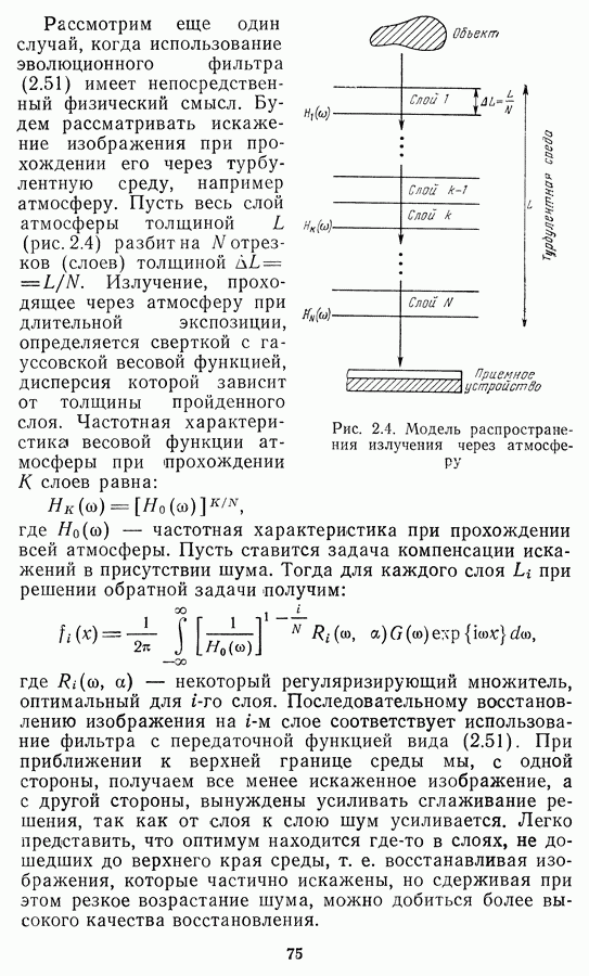 Этот прием, однако, оставляет неясным физический смысл производных преобразований. Еще один недостаток метода максимума энтропии состоит в том, что наилучшие результаты с его помощью получаются при восстановлении объектов, состоящих из отдельных импульсов на однородном фоне, а попытки применения метода к пространственно протяженным объектам вызывают появление флуктуаций [60]. Изложенные результаты, касающиеся методов максимума энтропии и максимума информации, могут быть объединены в единую схему, основанную на построении алгоритмов оценивания плотности распределения с помощью метода максимального правдоподобия. Тем самым рассмотренные алгоритмы можно включить в группу методов статистической регуляризации, описанных в § 2.4. Отличие лишь в том, что эти алгоритмы основаны на другой статистической модели — представлении самого изображения как плотности вероятности. Такая модель сразу же приводит к нелинейности рассматриваемых функционалов [98]. Однако отмеченные ранее недостатки заставляют искать алгоритмы, которые, сохраняя преимущества теоретико-информационных методов восстановления (неограниченность по полосе частот, неотрицательность решения и т. п.), позволяют восстанавливать более широкий класс изображений.