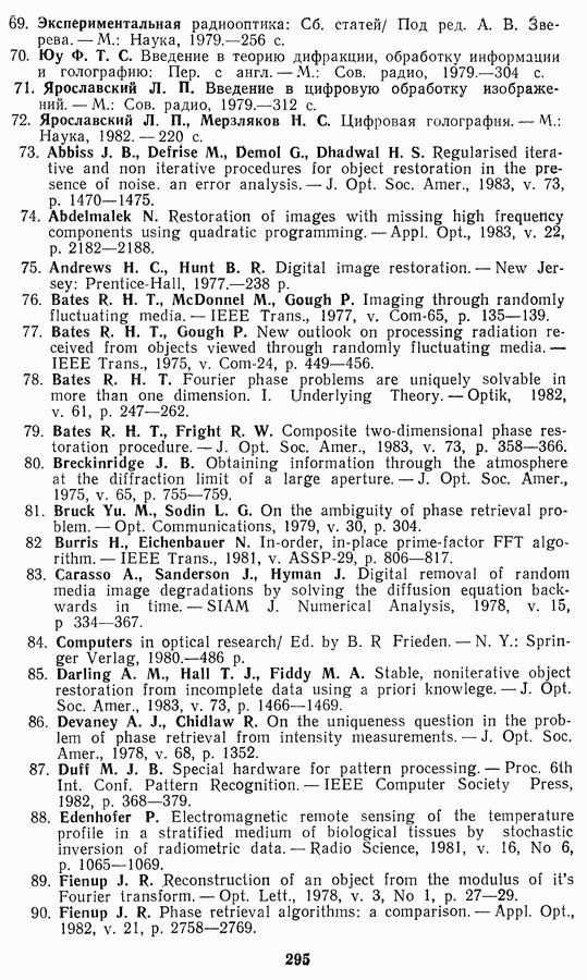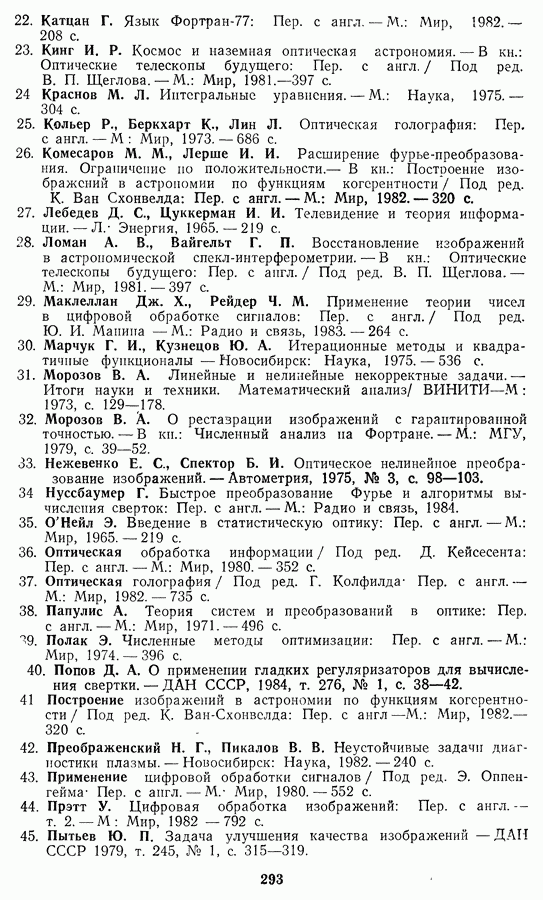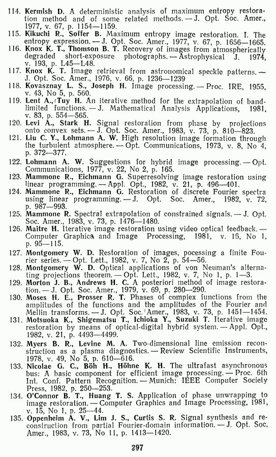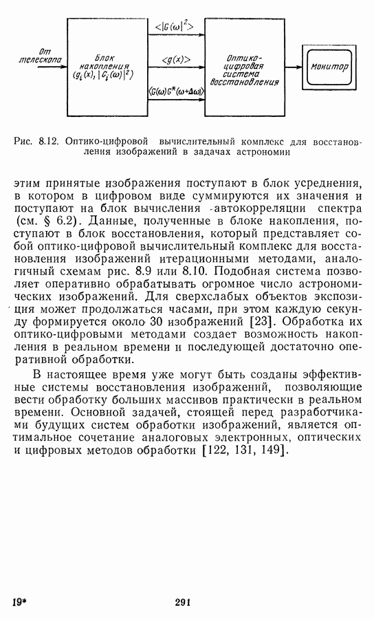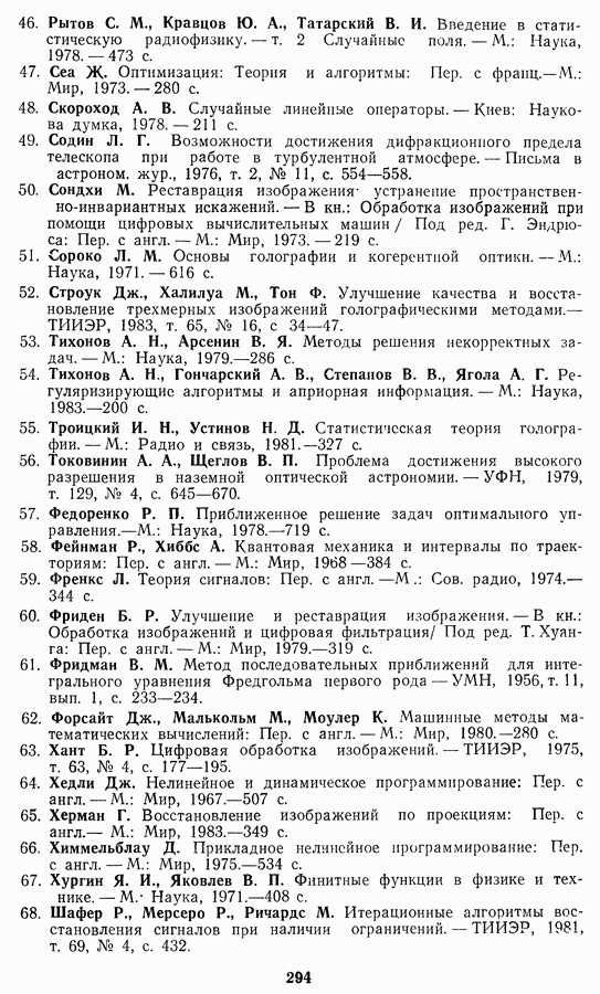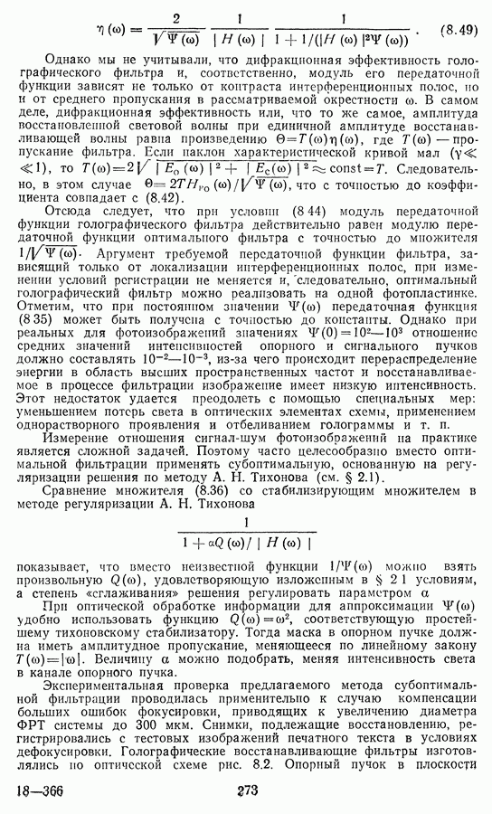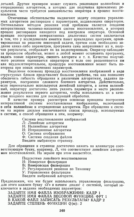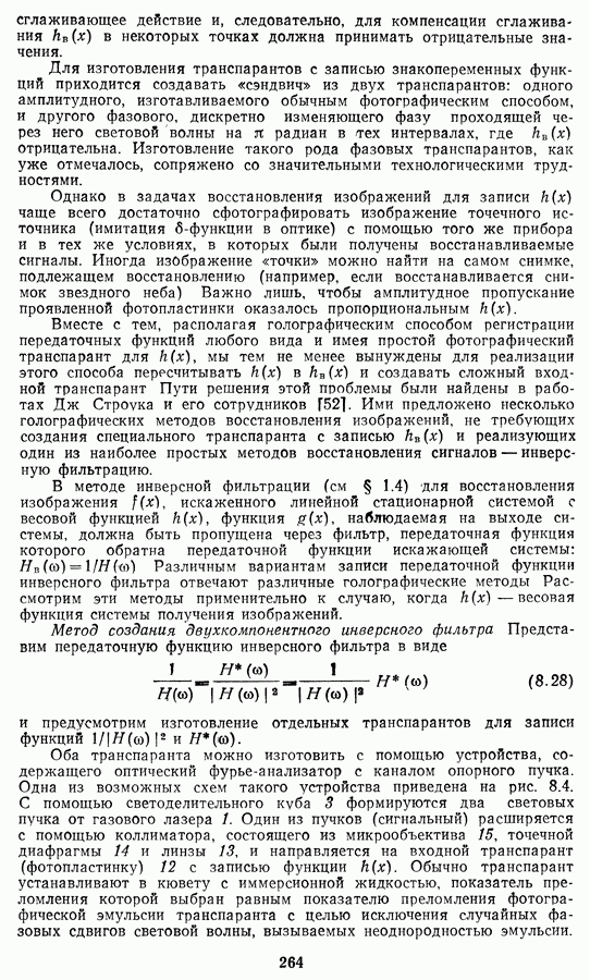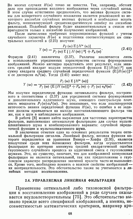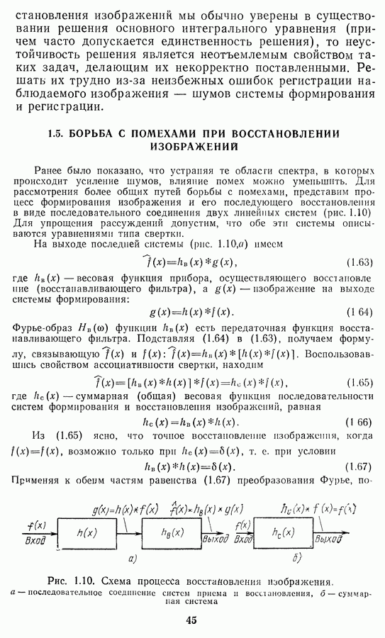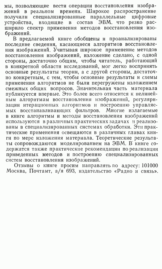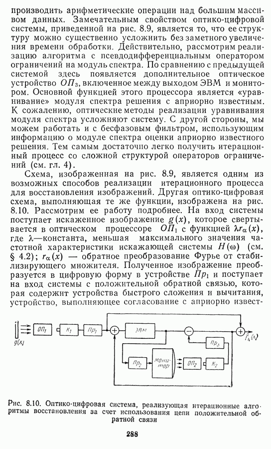 Этот прием, однако, оставляет неясным физический смысл производных преобразований. Еще один недостаток метода максимума энтропии состоит в том, что наилучшие результаты с его помощью получаются при восстановлении объектов, состоящих из отдельных импульсов на однородном фоне, а попытки применения метода к пространственно протяженным объектам вызывают появление флуктуаций [60]. Изложенные результаты, касающиеся методов максимума энтропии и максимума информации, могут быть объединены в единую схему, основанную на построении алгоритмов оценивания плотности распределения с помощью метода максимального правдоподобия. Тем самым рассмотренные алгоритмы можно включить в группу методов статистической регуляризации, описанных в § 2.4. Отличие лишь в том, что эти алгоритмы основаны на другой статистической модели — представлении самого изображения как плотности вероятности. Такая модель сразу же приводит к нелинейности рассматриваемых функционалов [98]. Однако отмеченные ранее недостатки заставляют искать алгоритмы, которые, сохраняя преимущества теоретико-информационных методов восстановления (неограниченность по полосе частот, неотрицательность решения и т. п.), позволяют восстанавливать более широкий класс изображений.