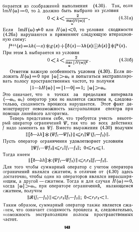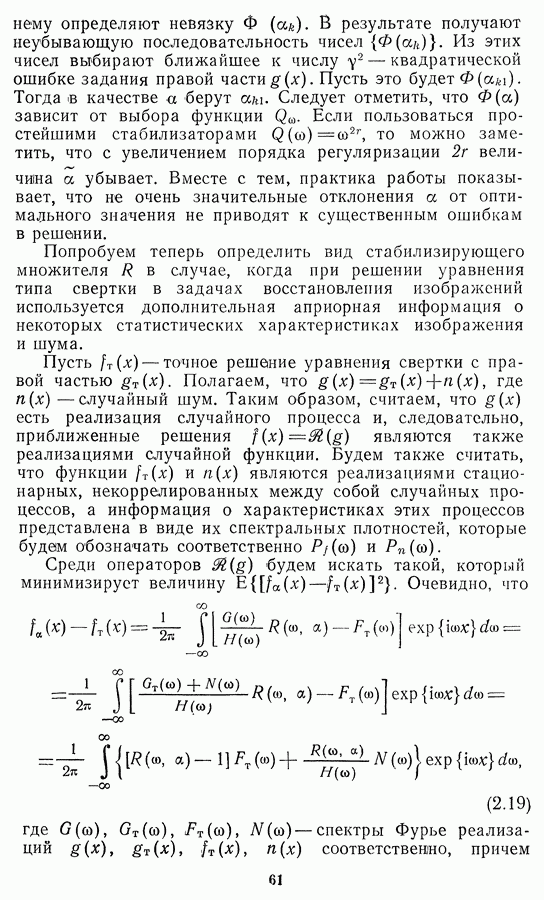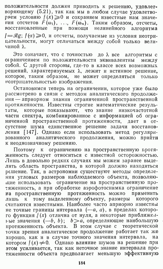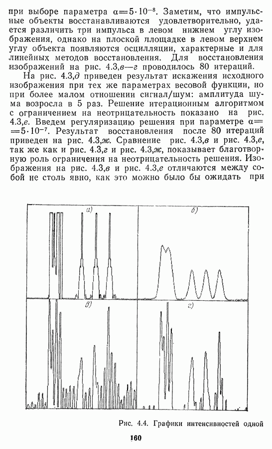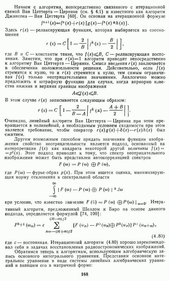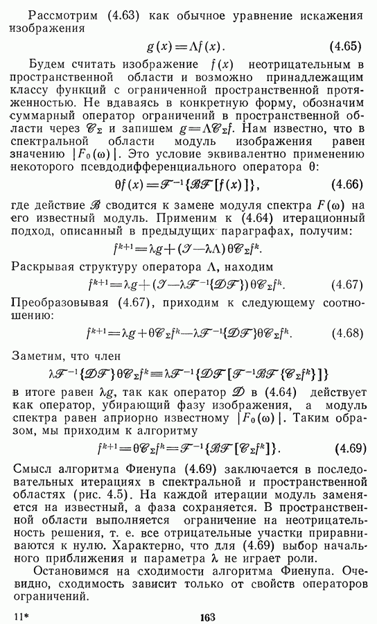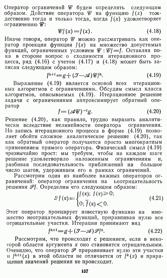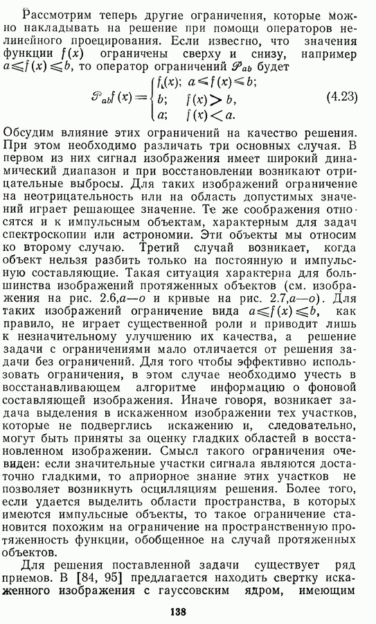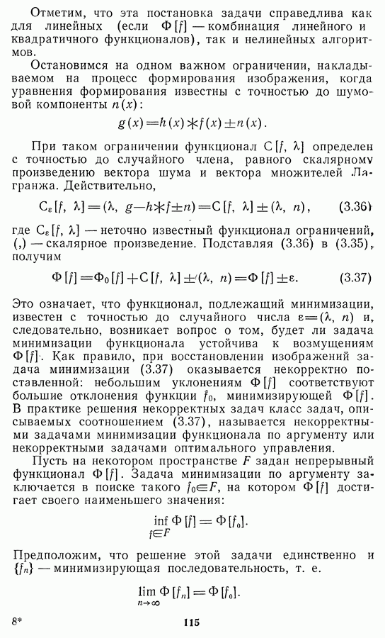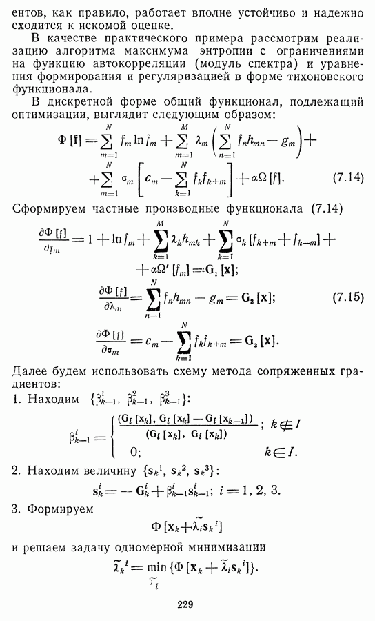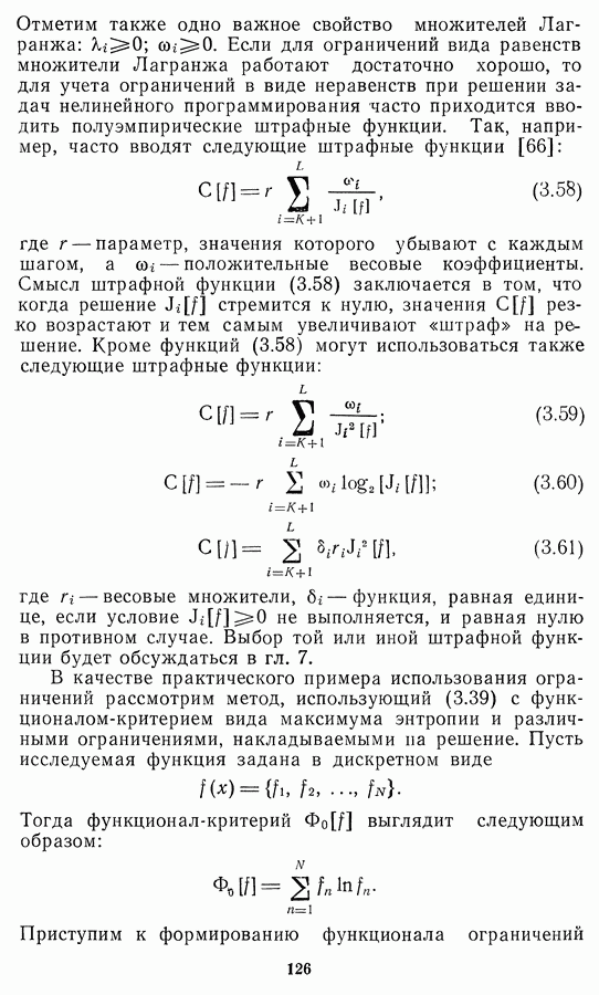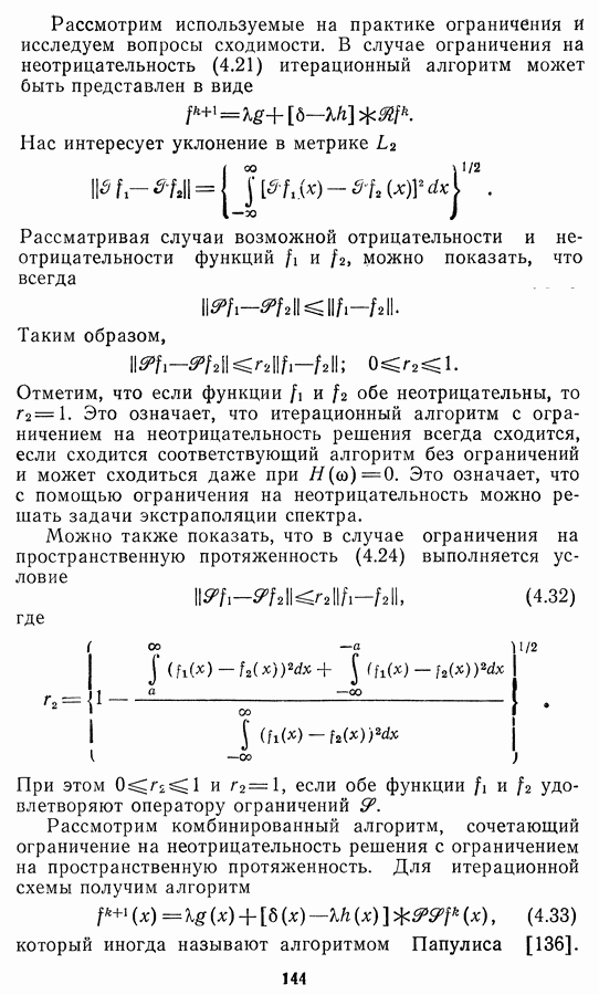 Необходимо отметить, что в последнее время появилось большое число алгоритмов на основе как (3.19), так и (3.30), использующих при этом самые разнообразные ограничения, вытекающие из постановки каждой конкретной задачи. Правда, наличие двух норм энтропии вызывает некоторое сомнение, во-первых, из-за того, что неясно, какую из них использовать на практике, а во-вторых, из-за недостаточно четкой постановки задачи восстановления. Существует еще одна интересная особенность алгоритмов, основанных на поиске максимума энтропии. Обратимся к выражениям (3.27)-(3.29) для случая идеальной системы формирования, но при наличии аддитивного шума