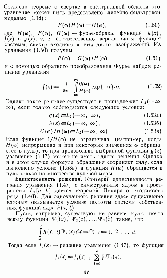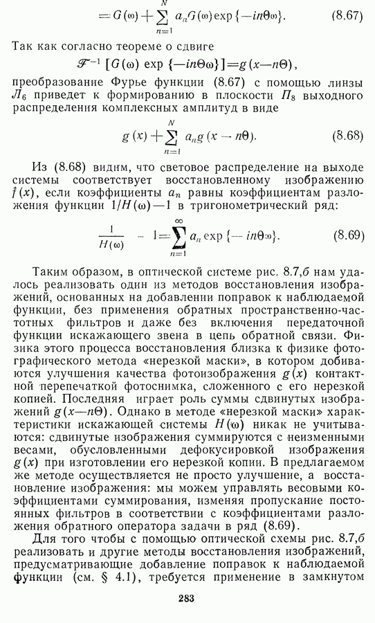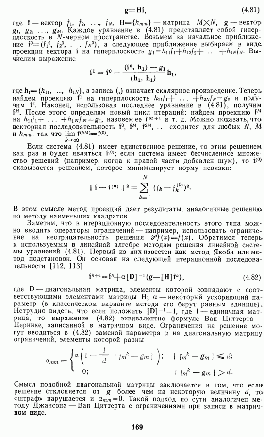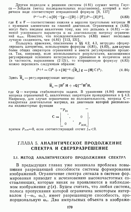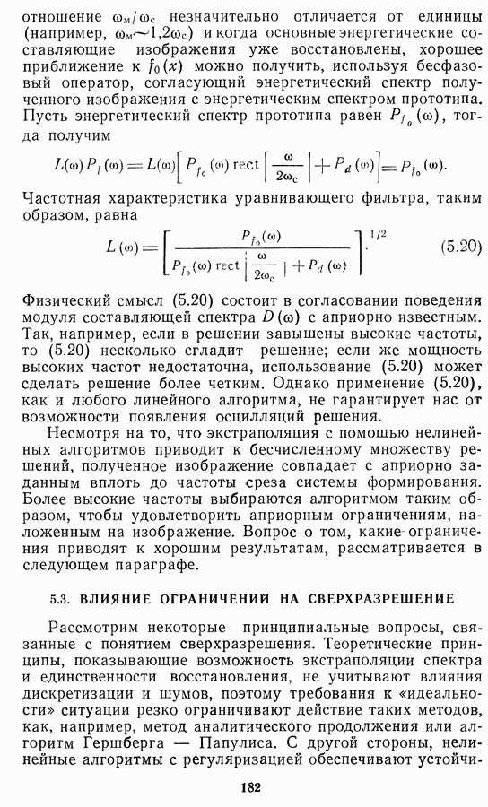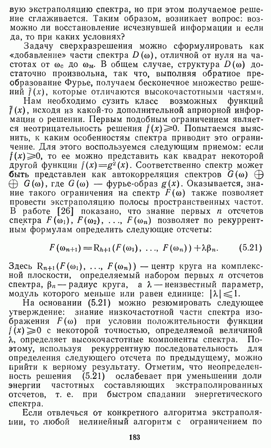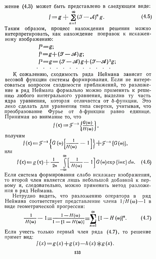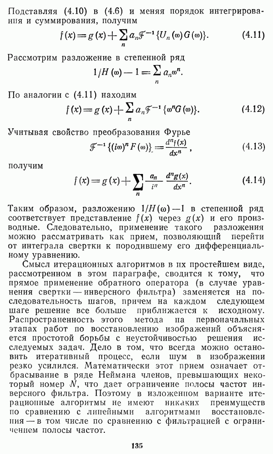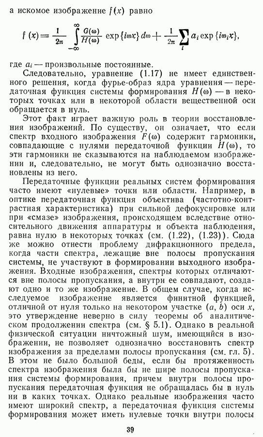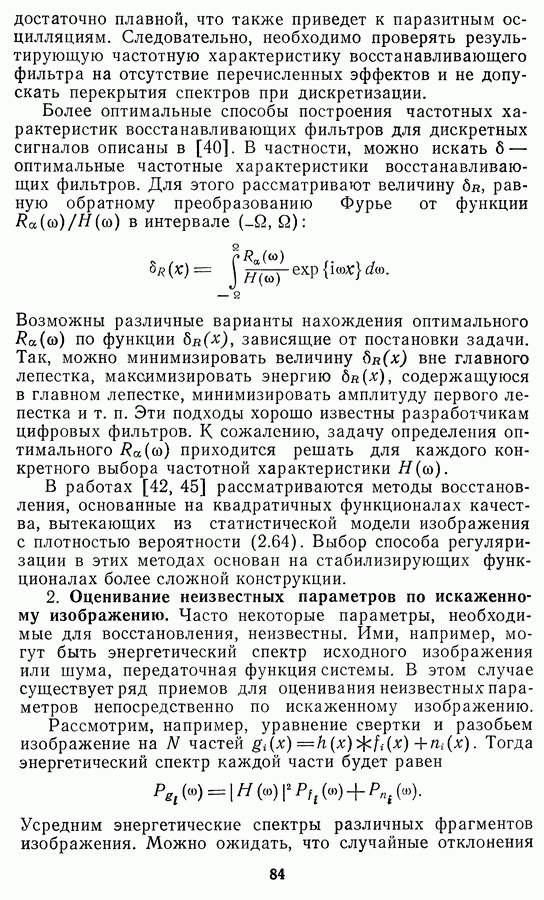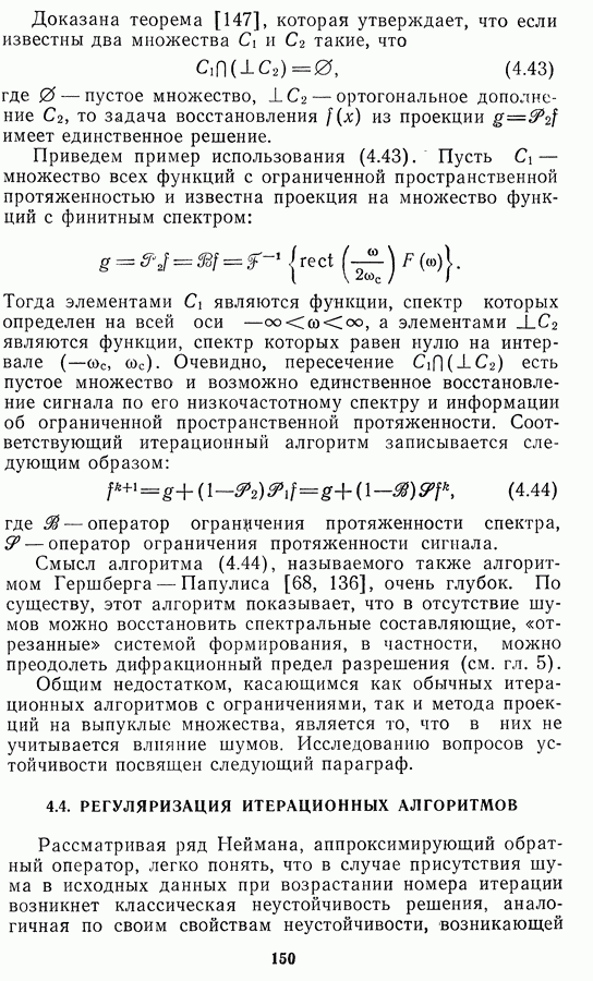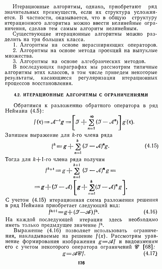 Необходимо отметить, что в последнее время появилось большое число алгоритмов на основе как (3.19), так и (3.30), использующих при этом самые разнообразные ограничения, вытекающие из постановки каждой конкретной задачи. Правда, наличие двух норм энтропии вызывает некоторое сомнение, во-первых, из-за того, что неясно, какую из них использовать на практике, а во-вторых, из-за недостаточно четкой постановки задачи восстановления. Существует еще одна интересная особенность алгоритмов, основанных на поиске максимума энтропии. Обратимся к выражениям (3.27)-(3.29) для случая идеальной системы формирования, но при наличии аддитивного шума