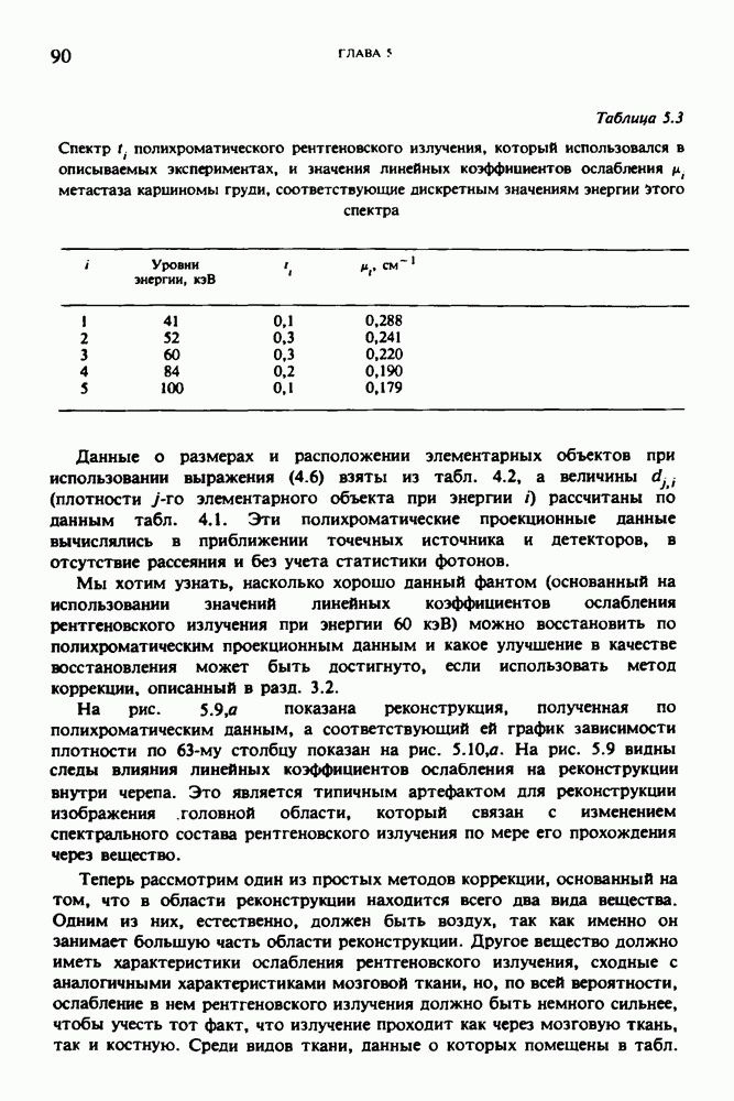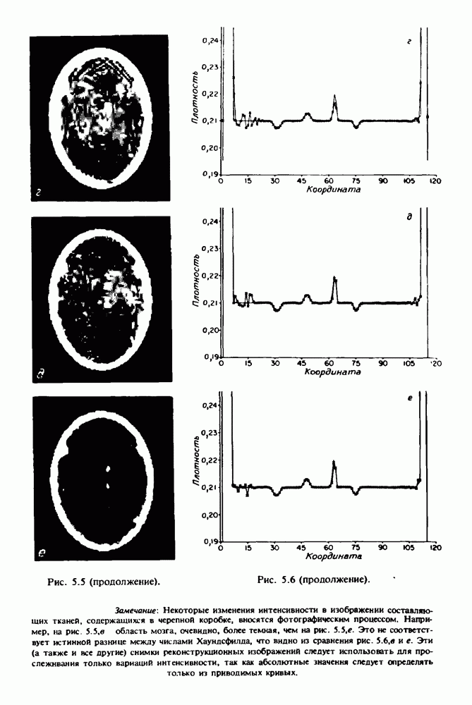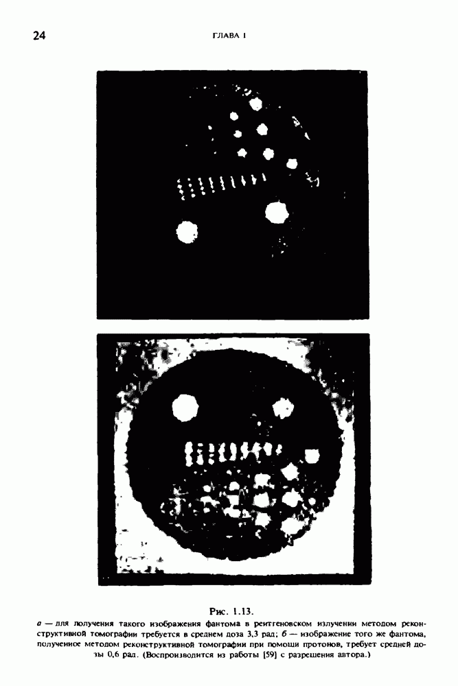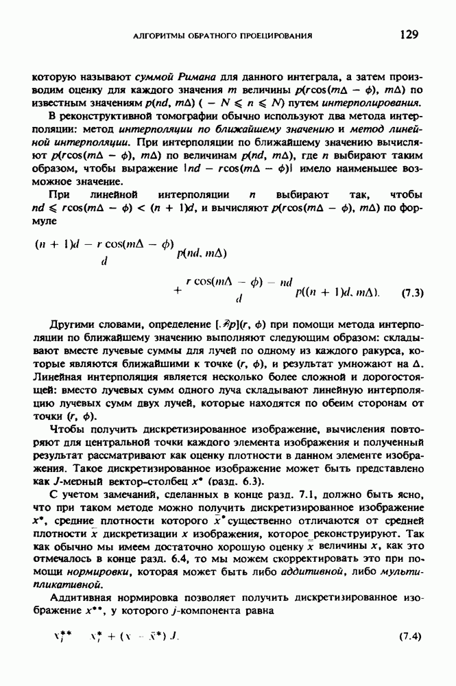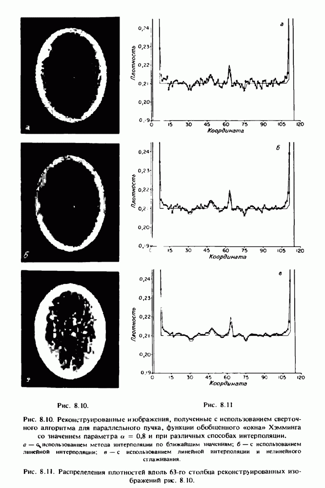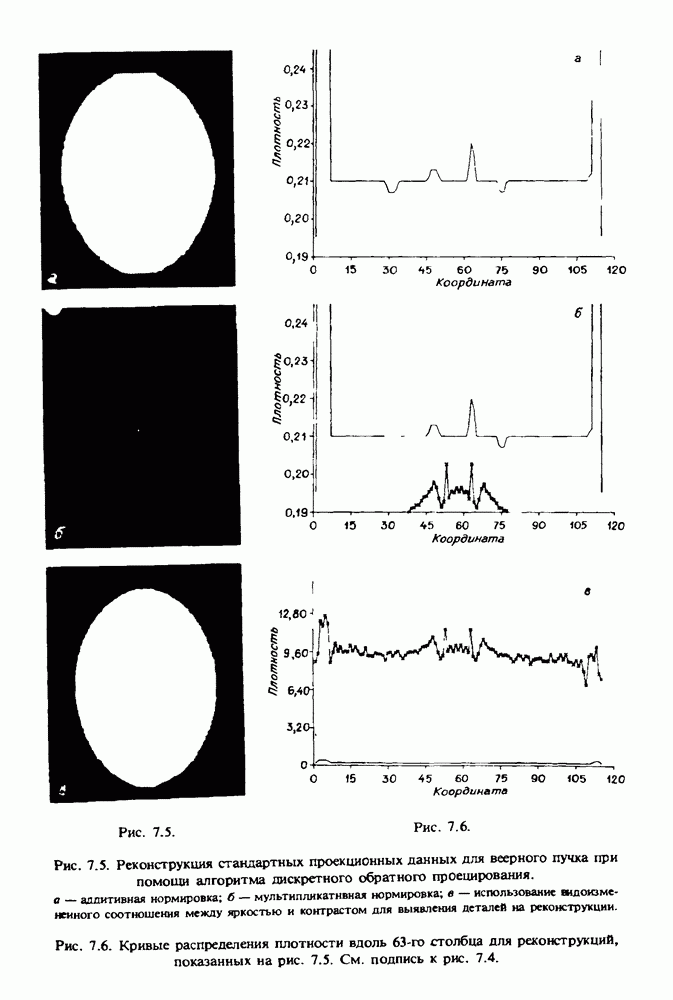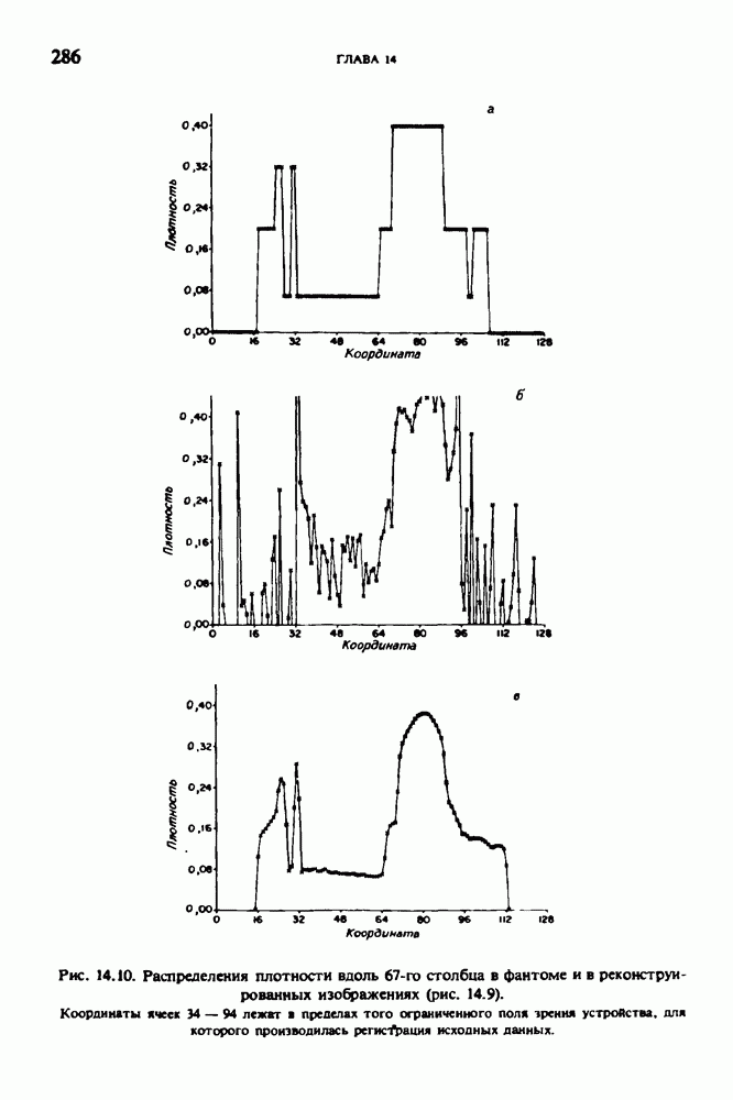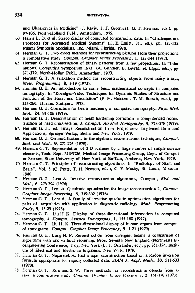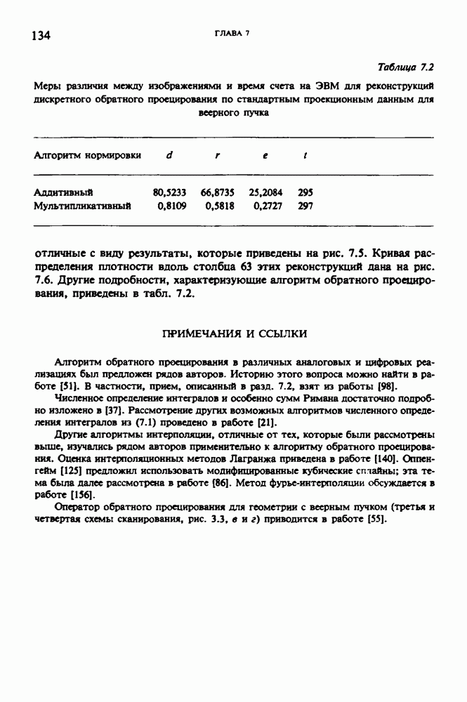 15.5. ЭКСПЕРИМЕНТАЛЬНЫЕ РЕЗУЛЬТАТЫНаш первый пример относится к случаю отображения системы желудочков головного мозга человека, которое было сделано по восьми смежным срезам толщиной объема 1,5 х 1,5 х 8 мм, хотя более желательна, как и в предыдущих разделах, была бы кубическая форма элементарных объемов. Чтобы преобразовать элементарные объемы в кубические, использовалась линейная интерполяция данных для оценки 38 смежных срезов толщиной 1,5 мм. Таким образом, формируется массив из 80 х 80 х 32 чисел, характеризующих среднюю плотность множества элементарных объемов кубической формы. Причина, по которой желудочки мозга выглядят более темными, чем окружающие ткани, состоит в том, что они содержат спинномозговую жидкость с несколько меньшим, чем у мозга, линейным коэффициентом ослабления (табл. 4.1). Поэтому диапазон