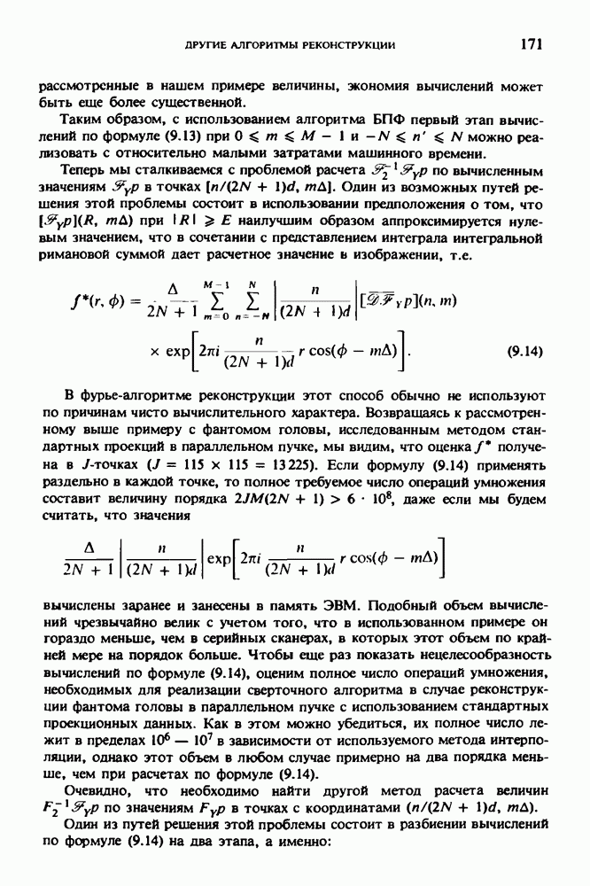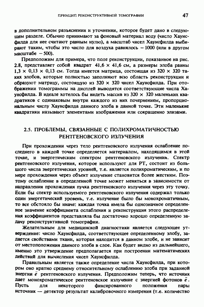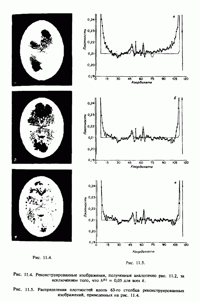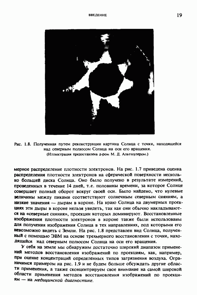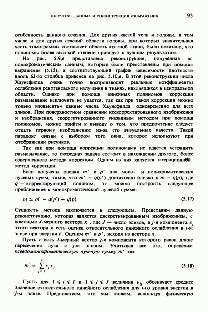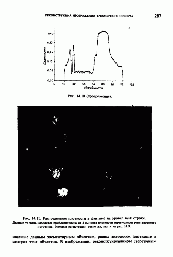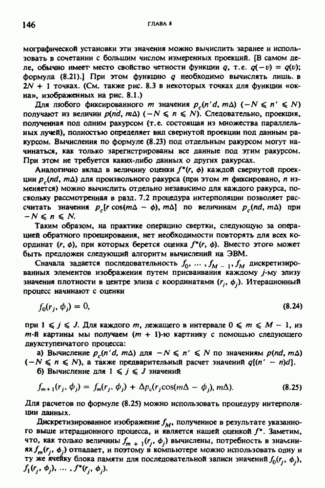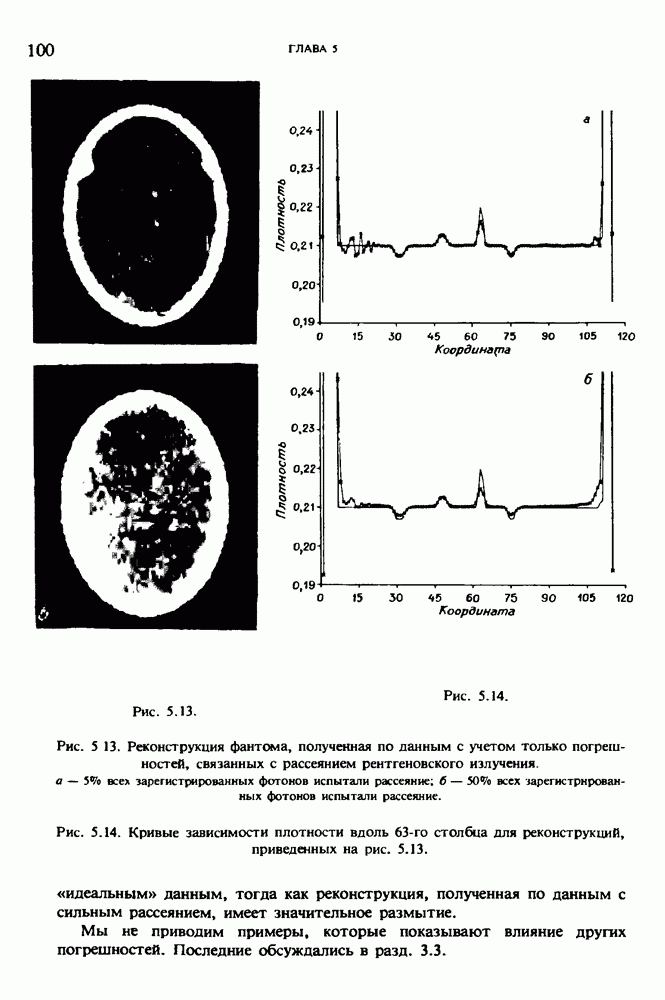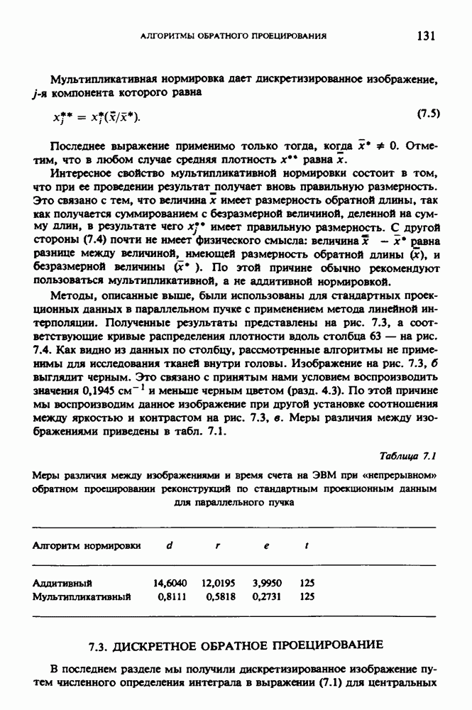 15.5. ЭКСПЕРИМЕНТАЛЬНЫЕ РЕЗУЛЬТАТЫНаш первый пример относится к случаю отображения системы желудочков головного мозга человека, которое было сделано по восьми смежным срезам толщиной объема 1,5 х 1,5 х 8 мм, хотя более желательна, как и в предыдущих разделах, была бы кубическая форма элементарных объемов. Чтобы преобразовать элементарные объемы в кубические, использовалась линейная интерполяция данных для оценки 38 смежных срезов толщиной 1,5 мм. Таким образом, формируется массив из 80 х 80 х 32 чисел, характеризующих среднюю плотность множества элементарных объемов кубической формы. Причина, по которой желудочки мозга выглядят более темными, чем окружающие ткани, состоит в том, что они содержат спинномозговую жидкость с несколько меньшим, чем у мозга, линейным коэффициентом ослабления (табл. 4.1). Поэтому диапазон
