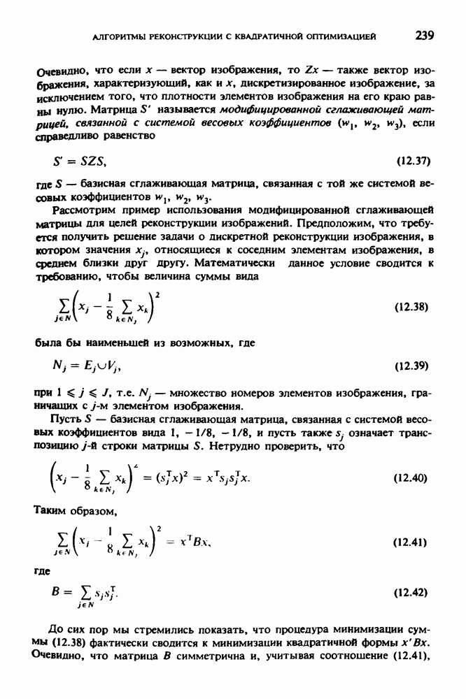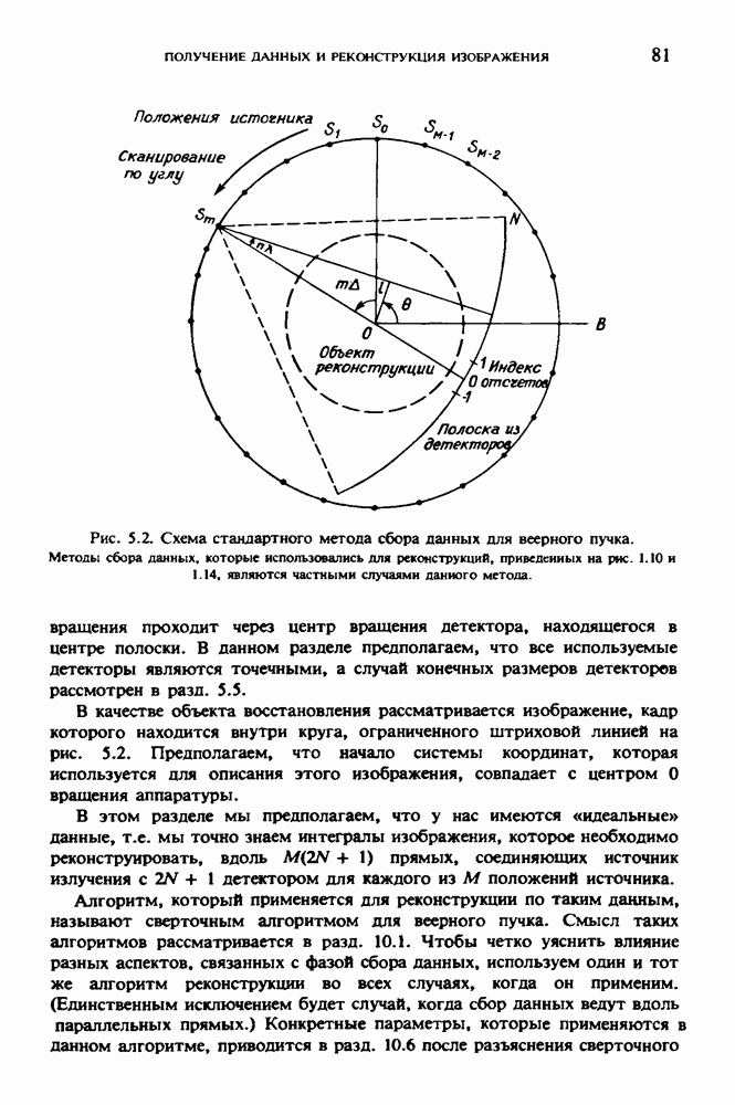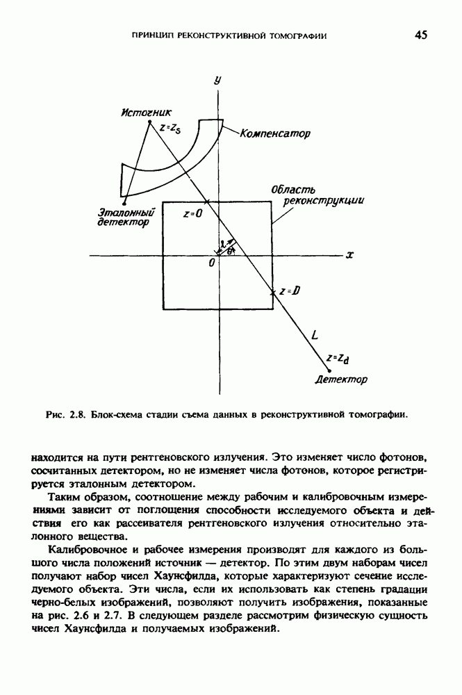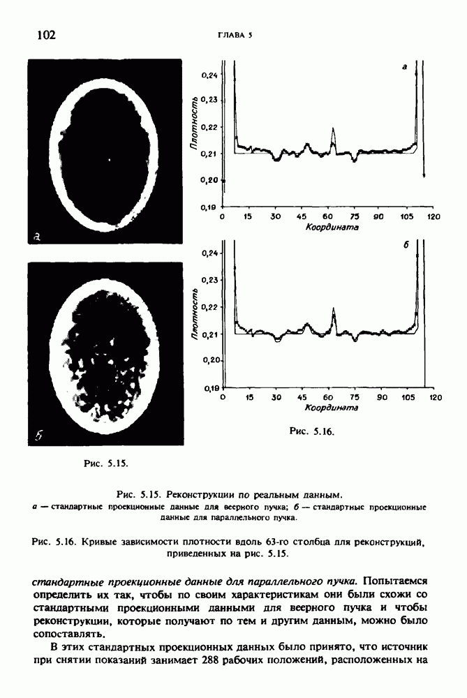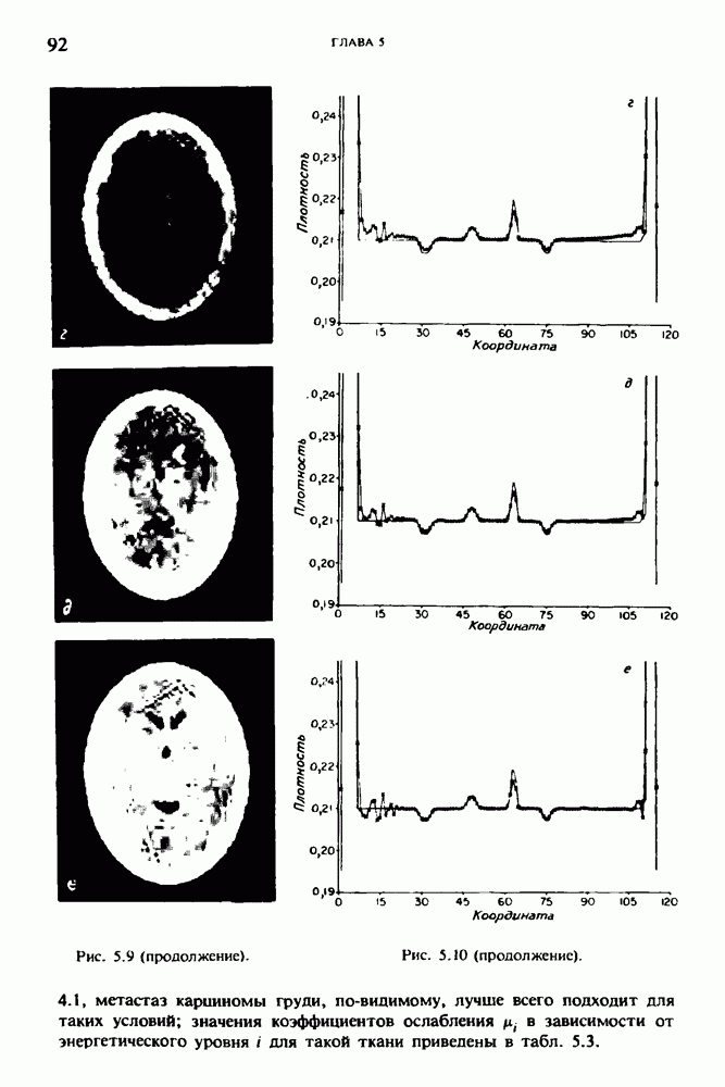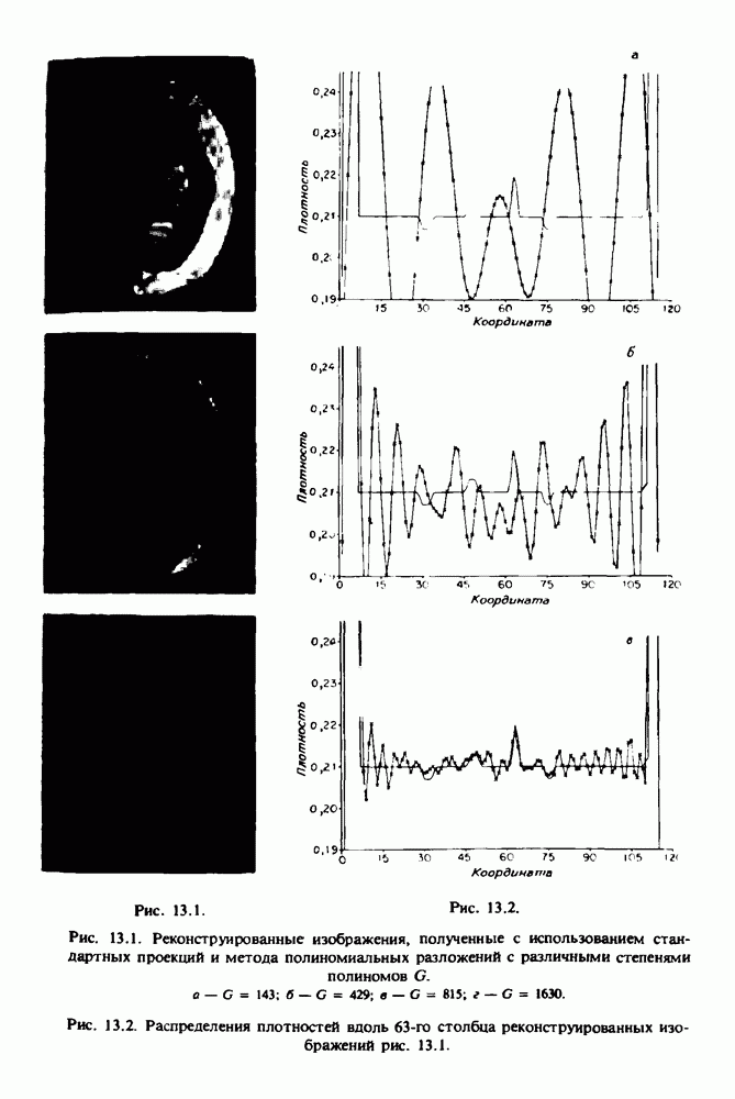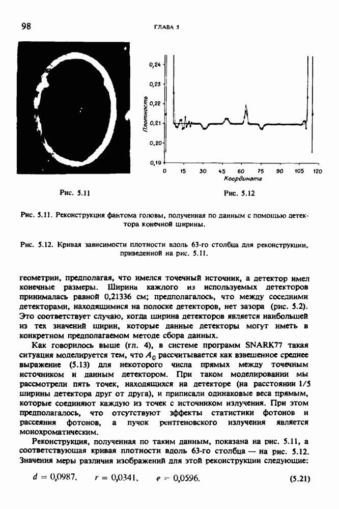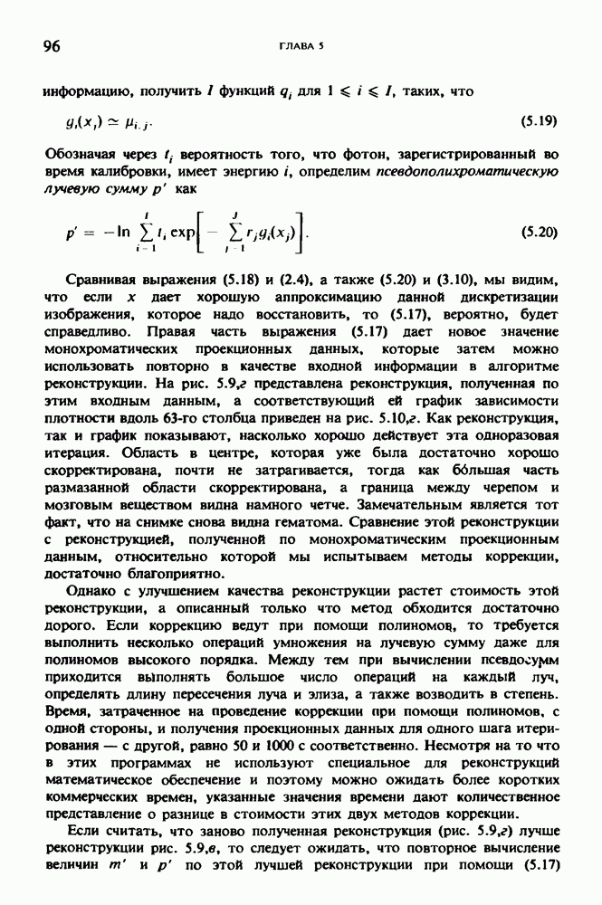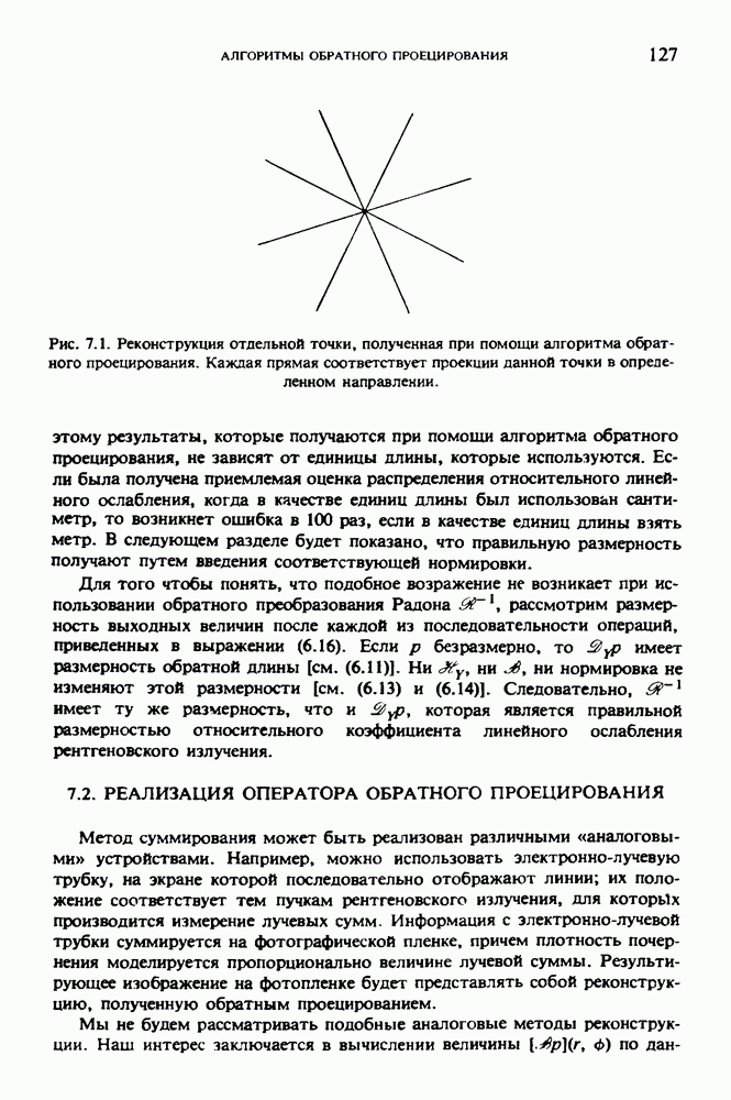 15.5. ЭКСПЕРИМЕНТАЛЬНЫЕ РЕЗУЛЬТАТЫНаш первый пример относится к случаю отображения системы желудочков головного мозга человека, которое было сделано по восьми смежным срезам толщиной объема 1,5 х 1,5 х 8 мм, хотя более желательна, как и в предыдущих разделах, была бы кубическая форма элементарных объемов. Чтобы преобразовать элементарные объемы в кубические, использовалась линейная интерполяция данных для оценки 38 смежных срезов толщиной 1,5 мм. Таким образом, формируется массив из 80 х 80 х 32 чисел, характеризующих среднюю плотность множества элементарных объемов кубической формы. Причина, по которой желудочки мозга выглядят более темными, чем окружающие ткани, состоит в том, что они содержат спинномозговую жидкость с несколько меньшим, чем у мозга, линейным коэффициентом ослабления (табл. 4.1). Поэтому диапазон