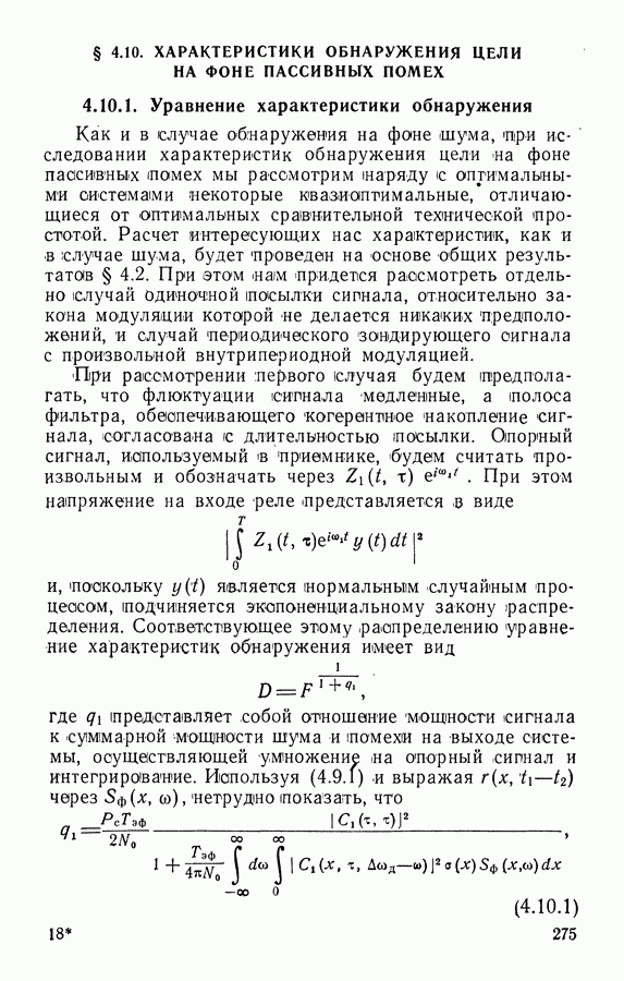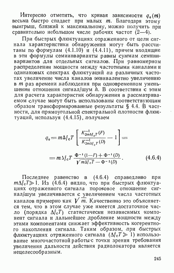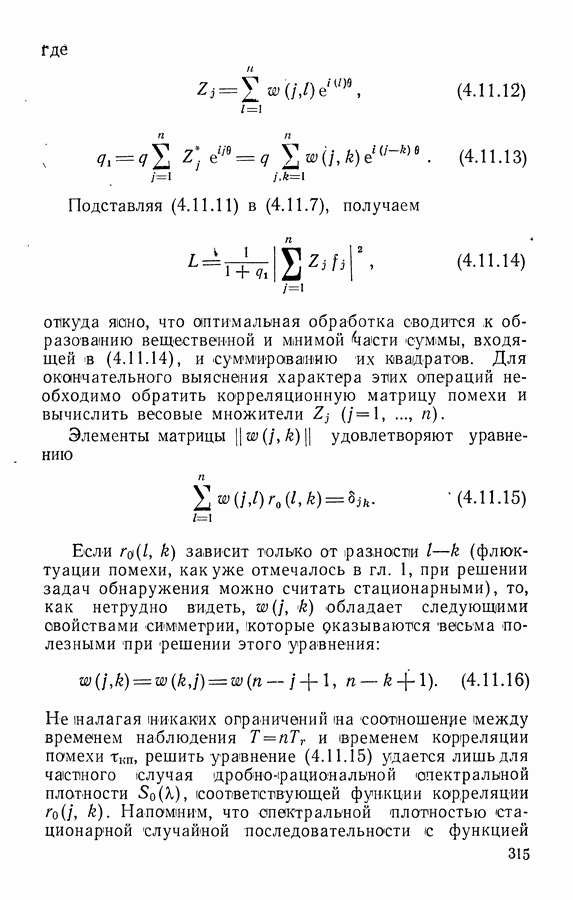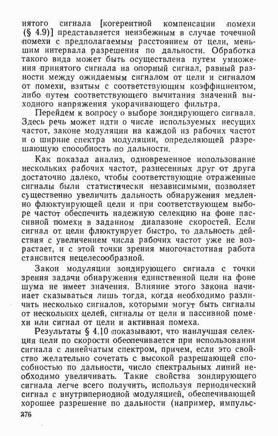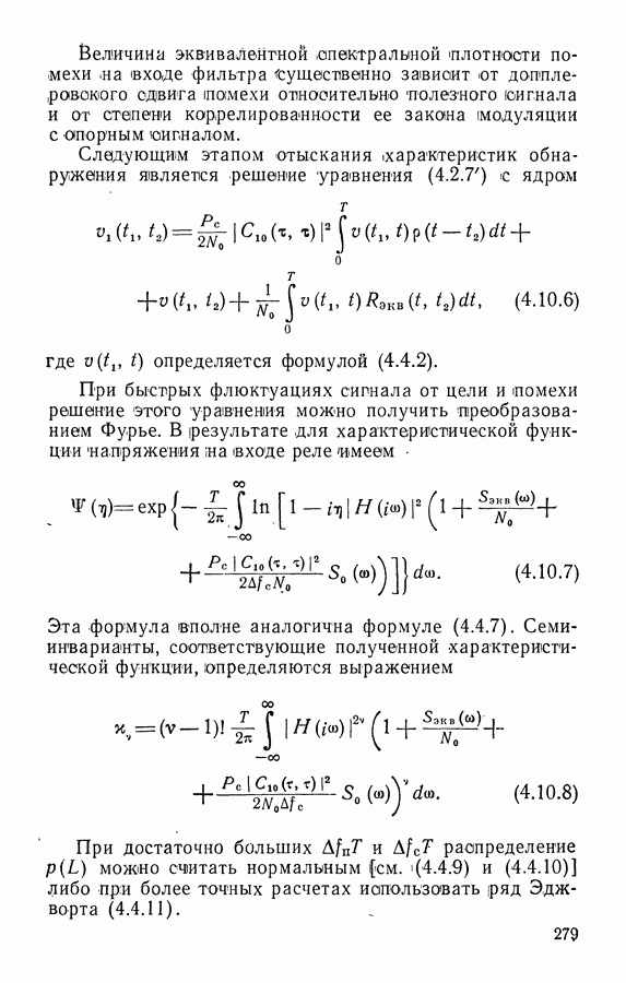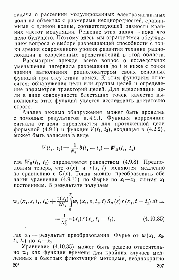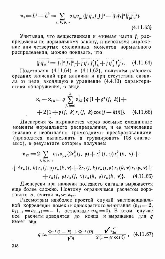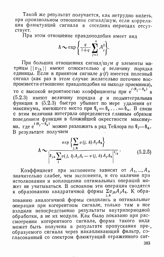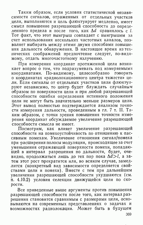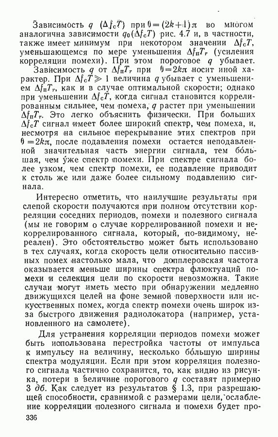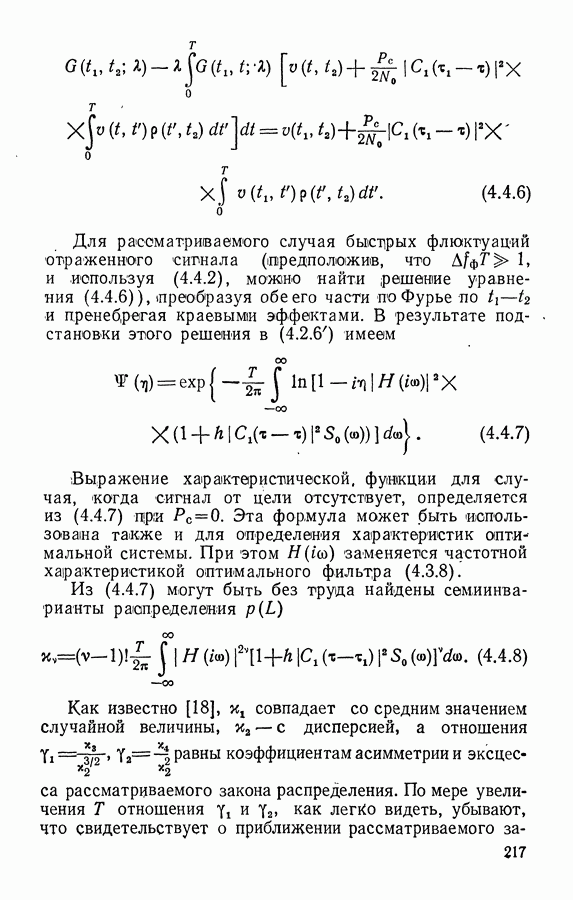 Аналогичным образом преобразуется формула (4.9.19). Таким образом, в случае медленных и быстрых флкжтуаций оптимальный опорный сигнал представляет собой линейную комбинацию ожидаемых сигналов от всех целей. Если отношение сигнал/шум велико для всех целей