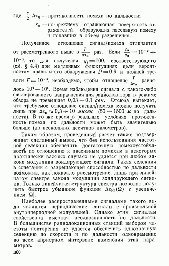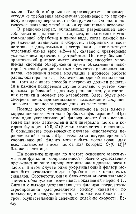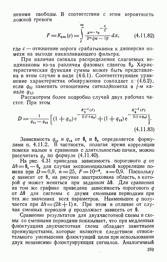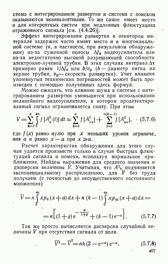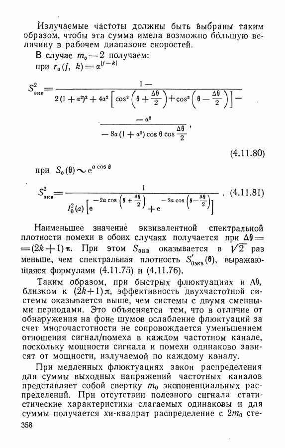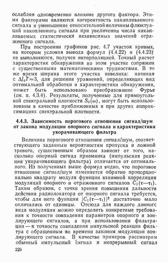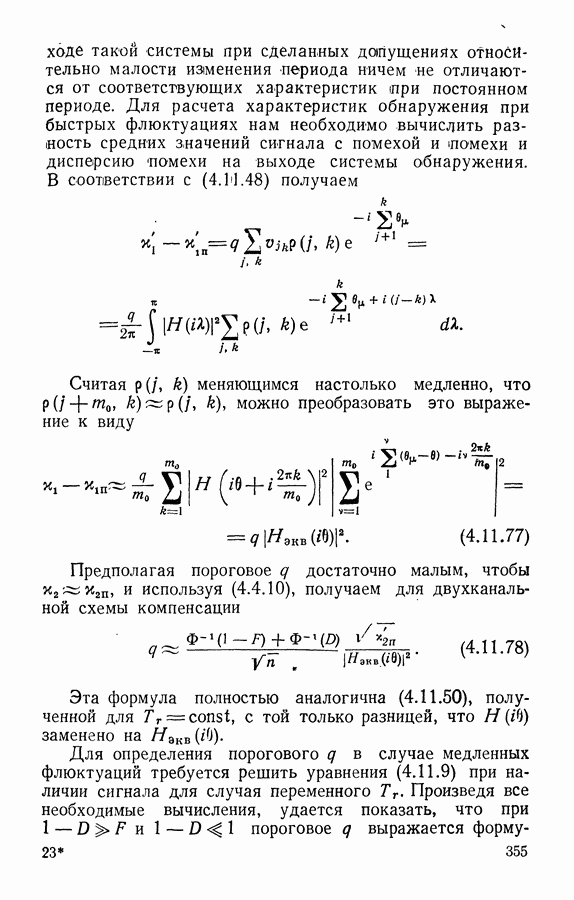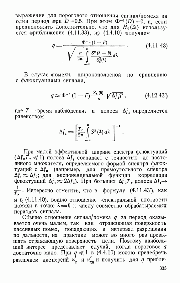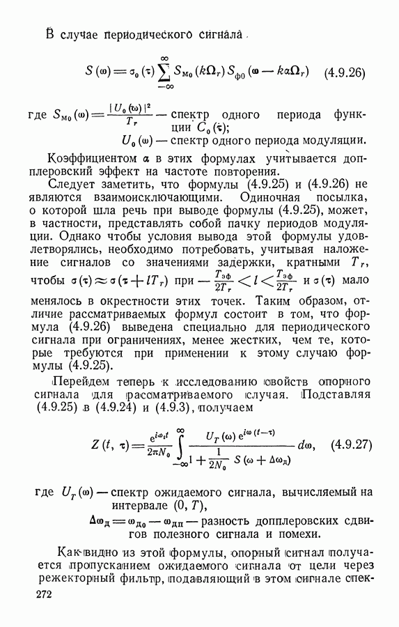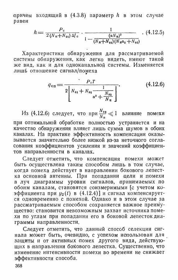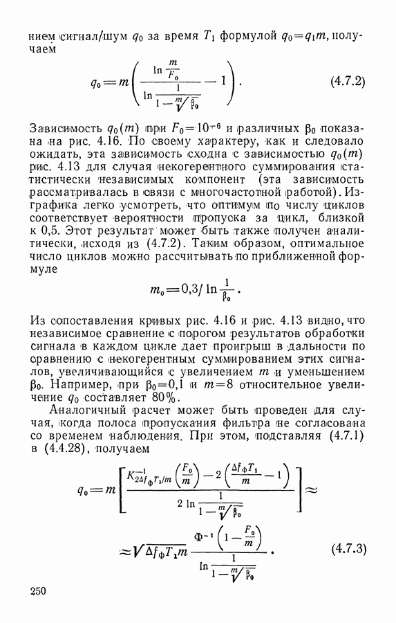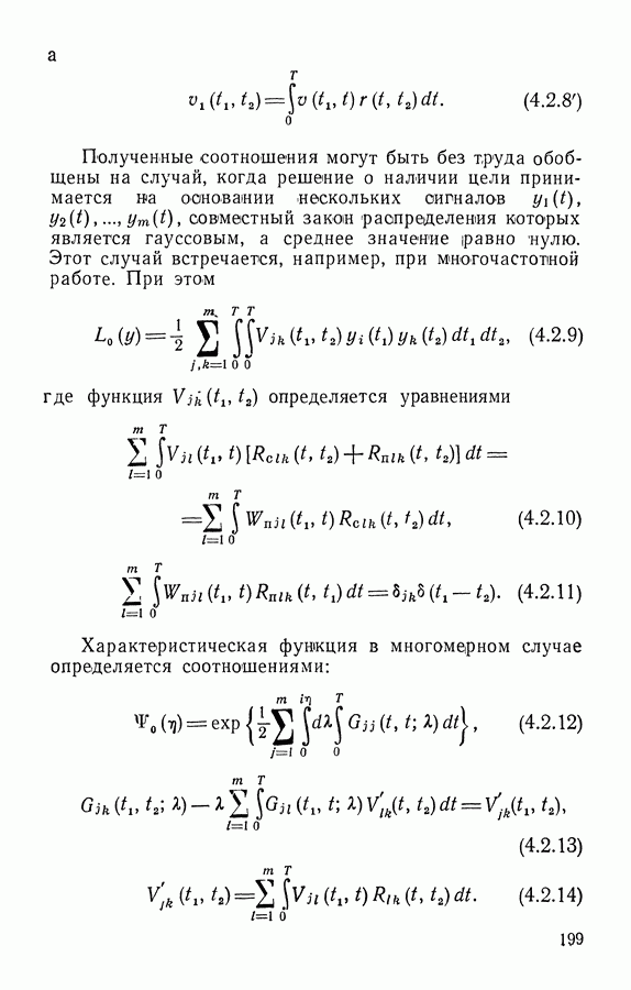 Аналогичным образом преобразуется формула (4.9.19). Таким образом, в случае медленных и быстрых флкжтуаций оптимальный опорный сигнал представляет собой линейную комбинацию ожидаемых сигналов от всех целей. Если отношение сигнал/шум велико для всех целей