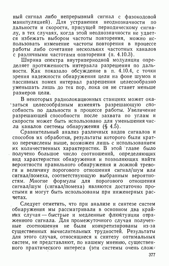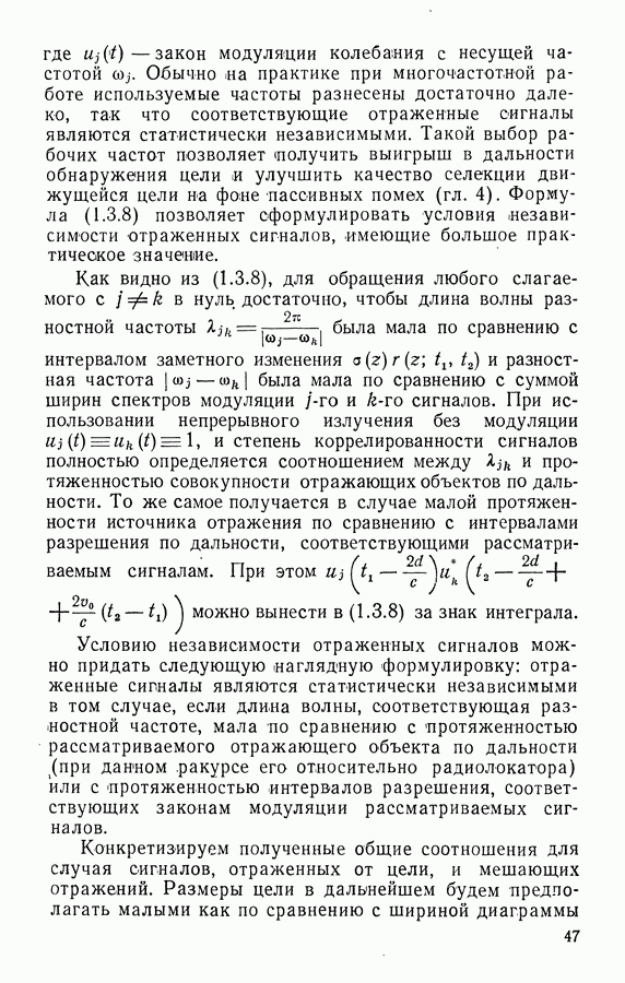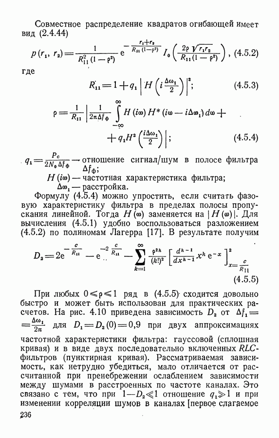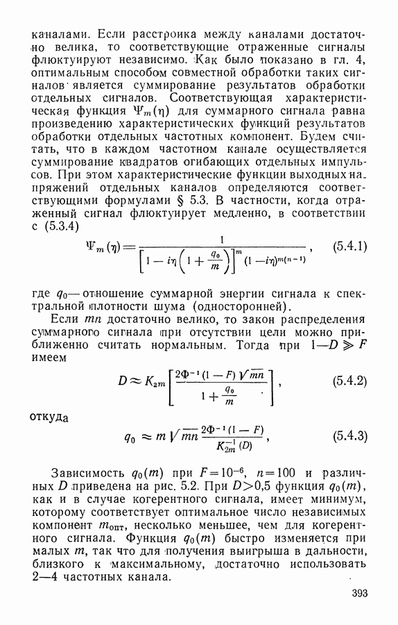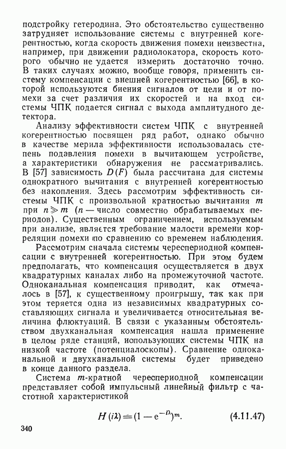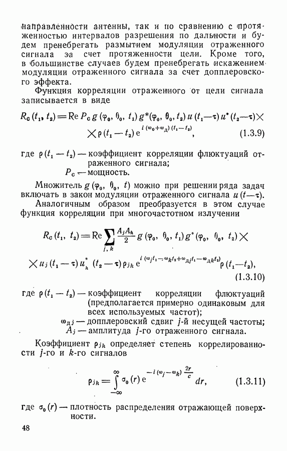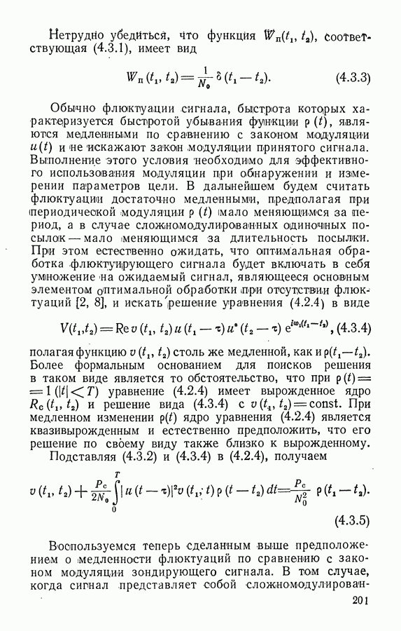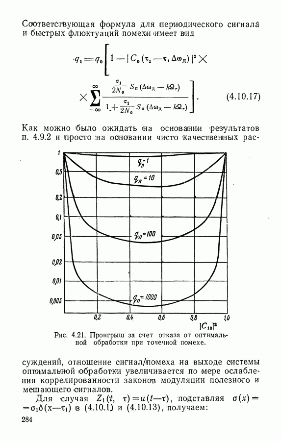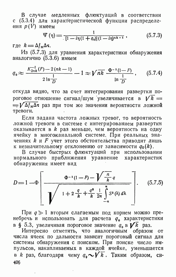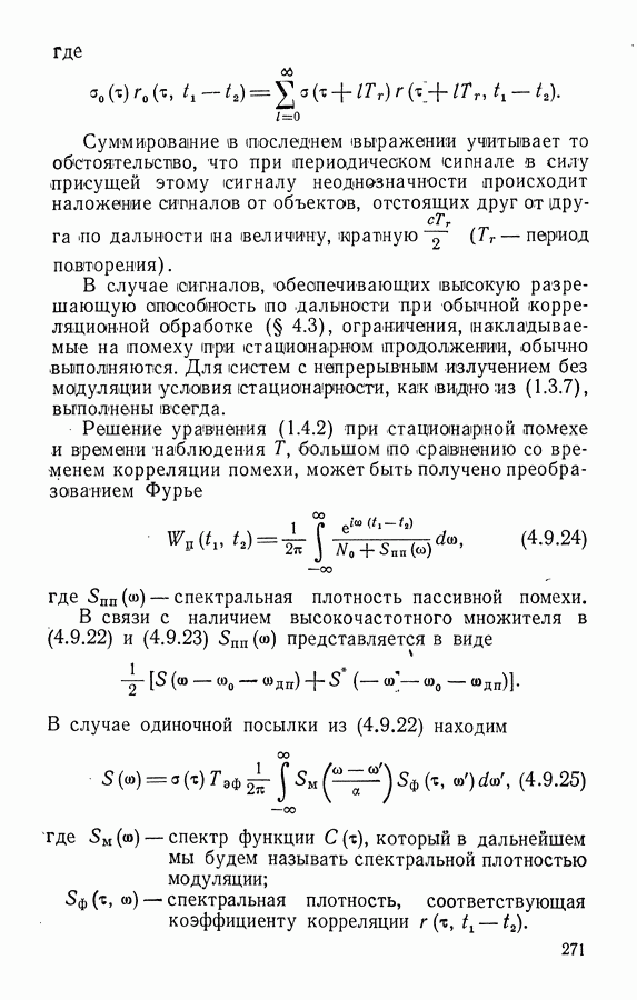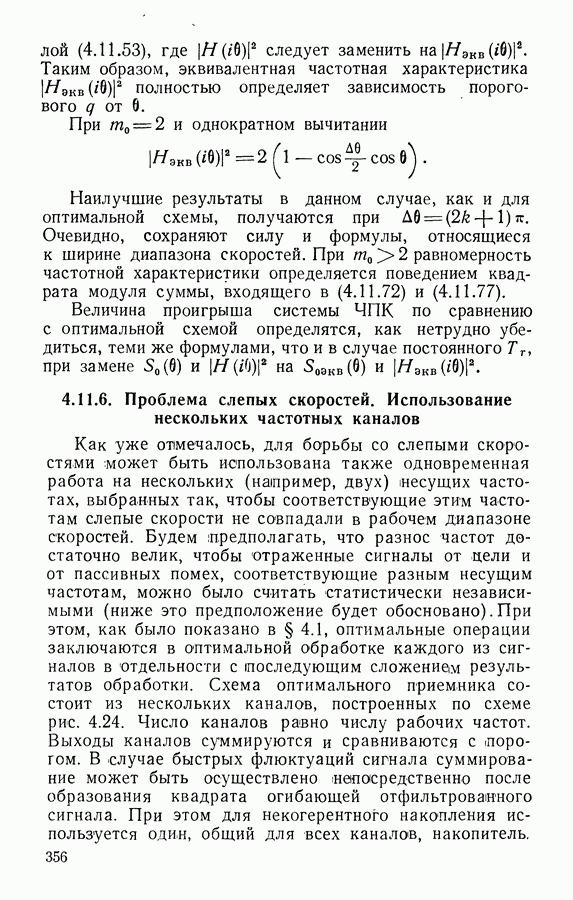 Аналогичным образом преобразуется формула (4.9.19). Таким образом, в случае медленных и быстрых флкжтуаций оптимальный опорный сигнал представляет собой линейную комбинацию ожидаемых сигналов от всех целей. Если отношение сигнал/шум велико для всех целей