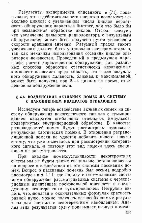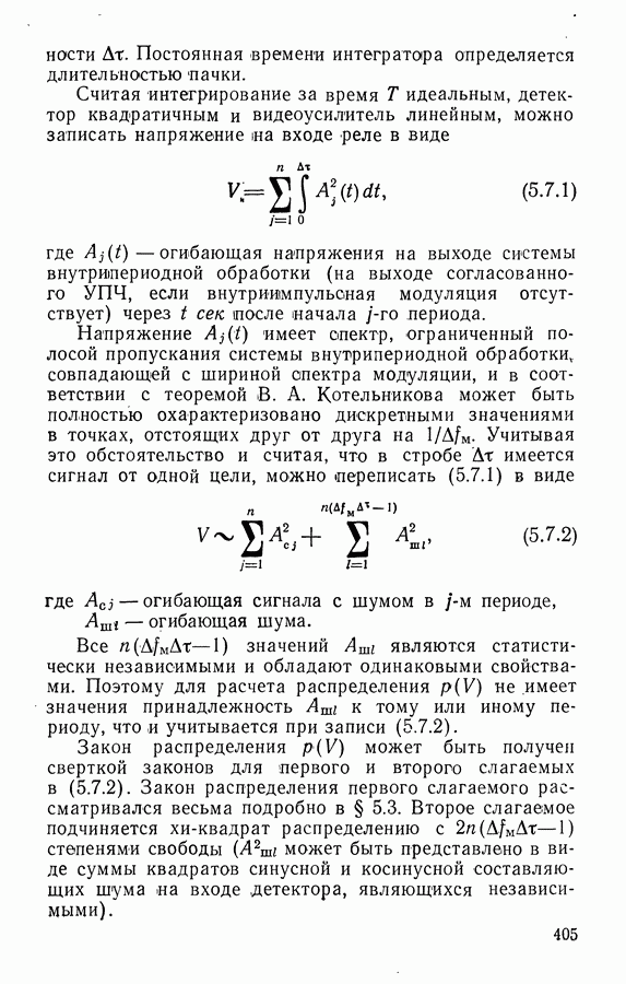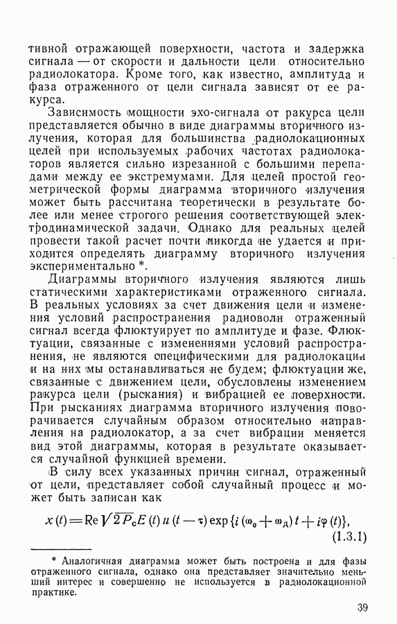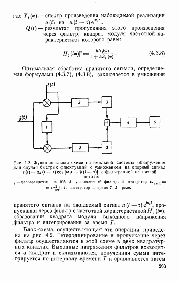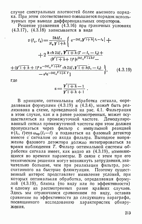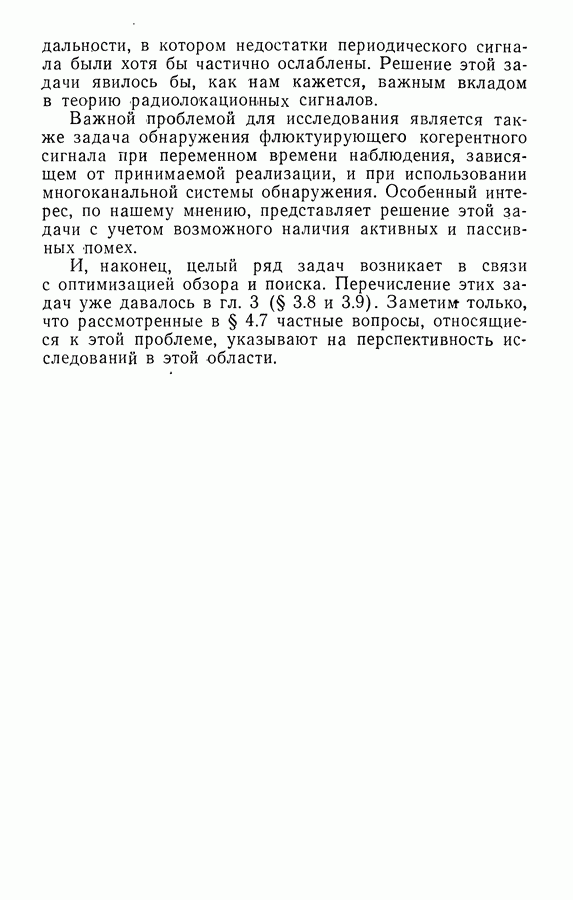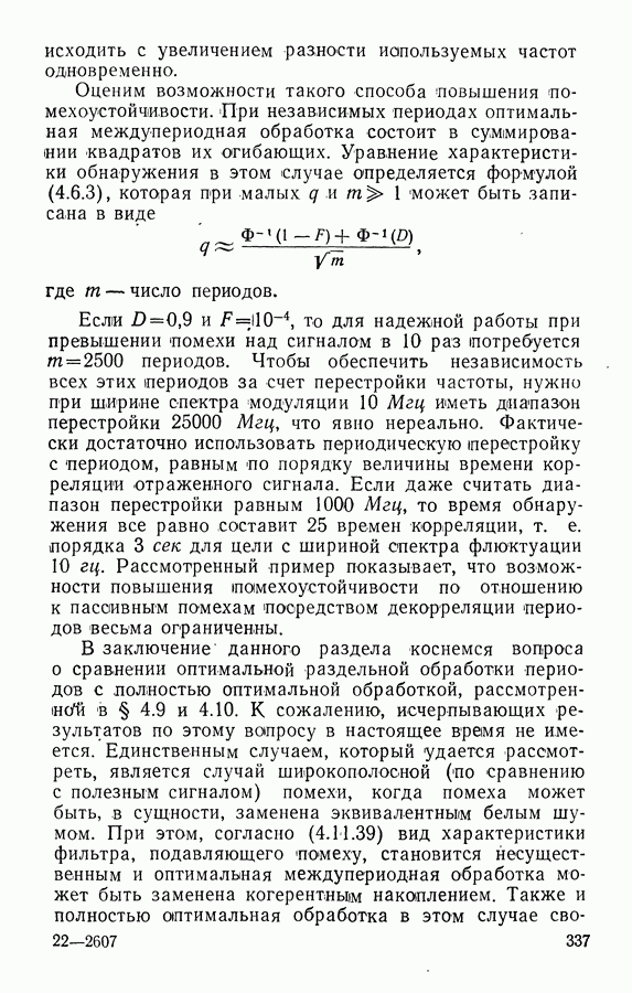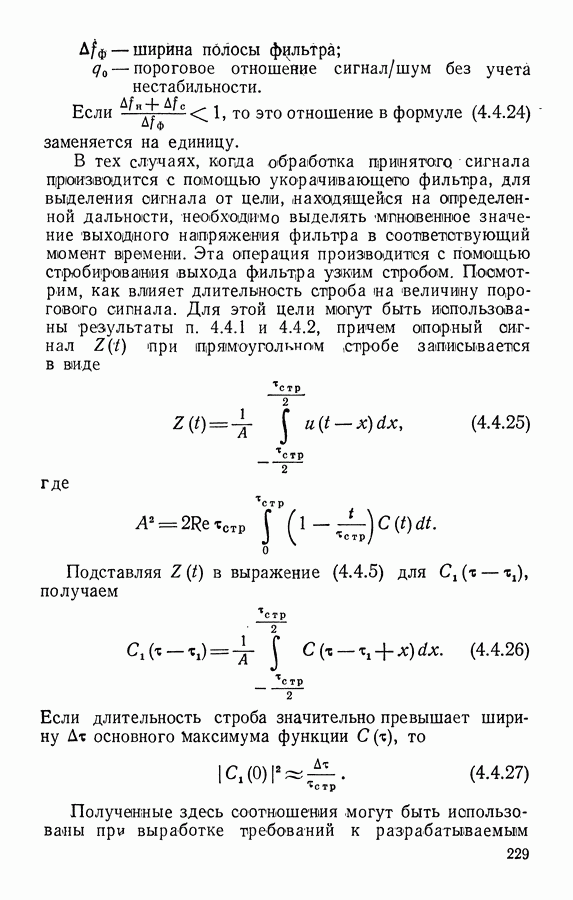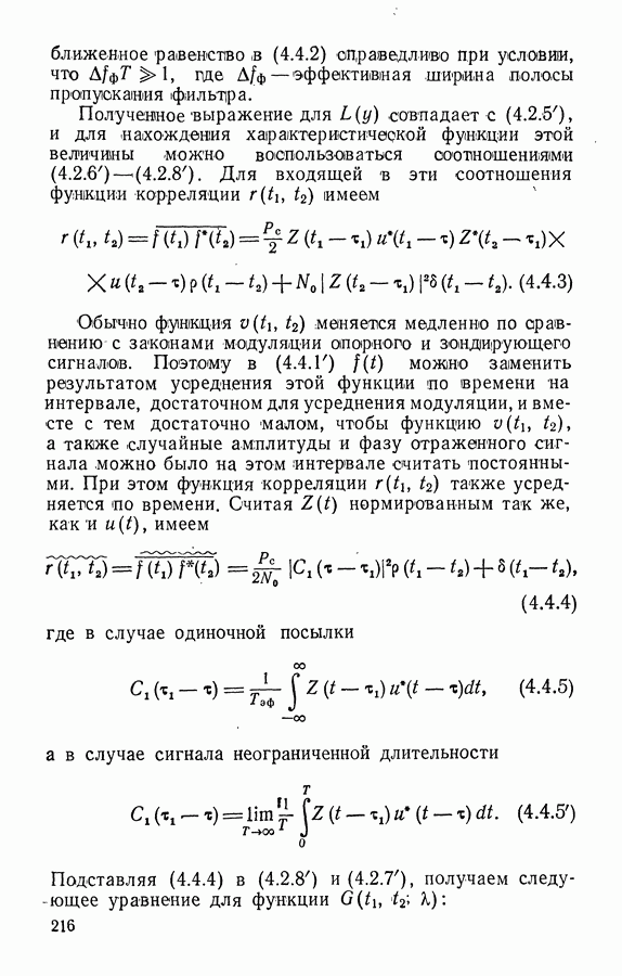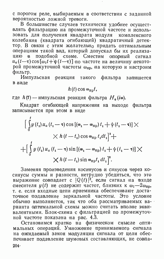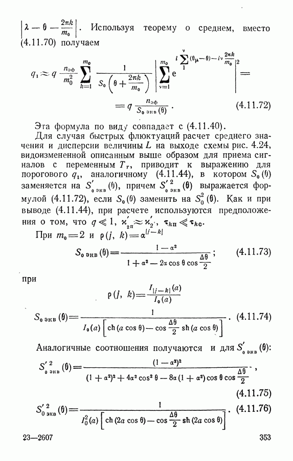 Аналогичным образом преобразуется формула (4.9.19). Таким образом, в случае медленных и быстрых флкжтуаций оптимальный опорный сигнал представляет собой линейную комбинацию ожидаемых сигналов от всех целей. Если отношение сигнал/шум велико для всех целей