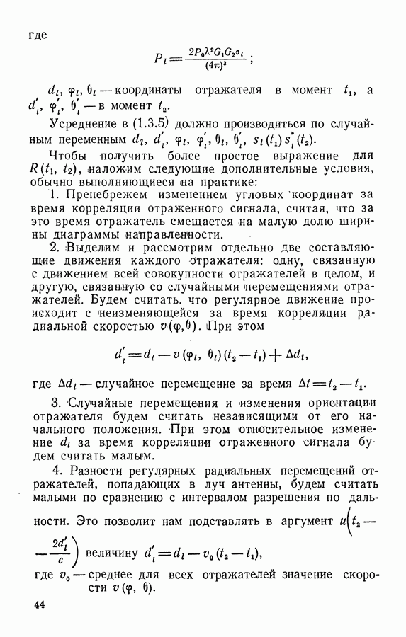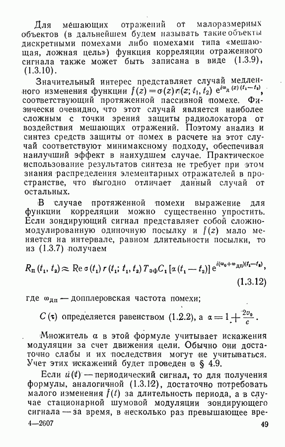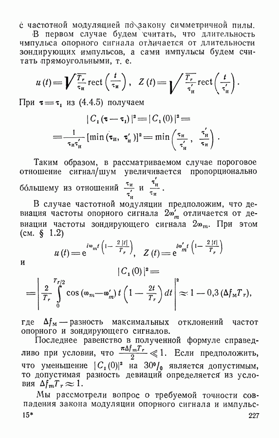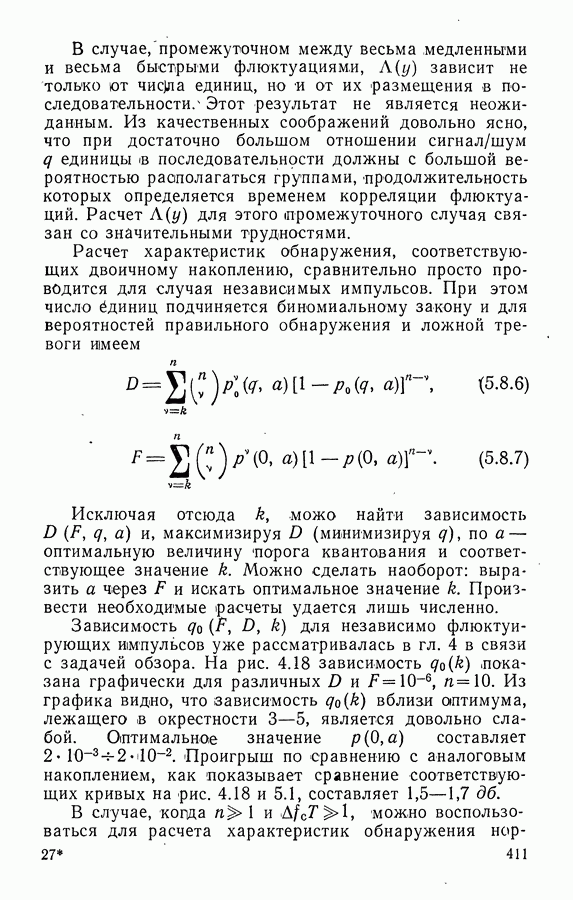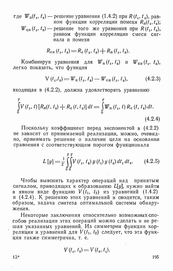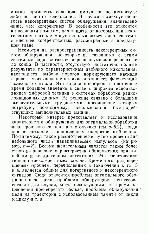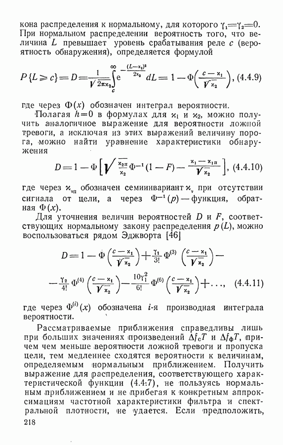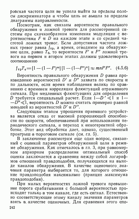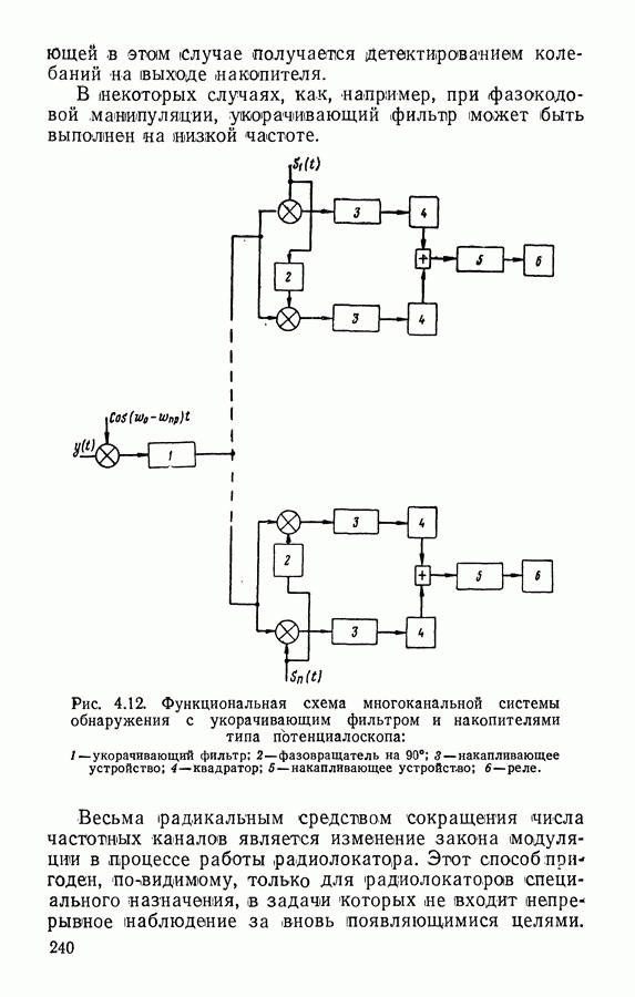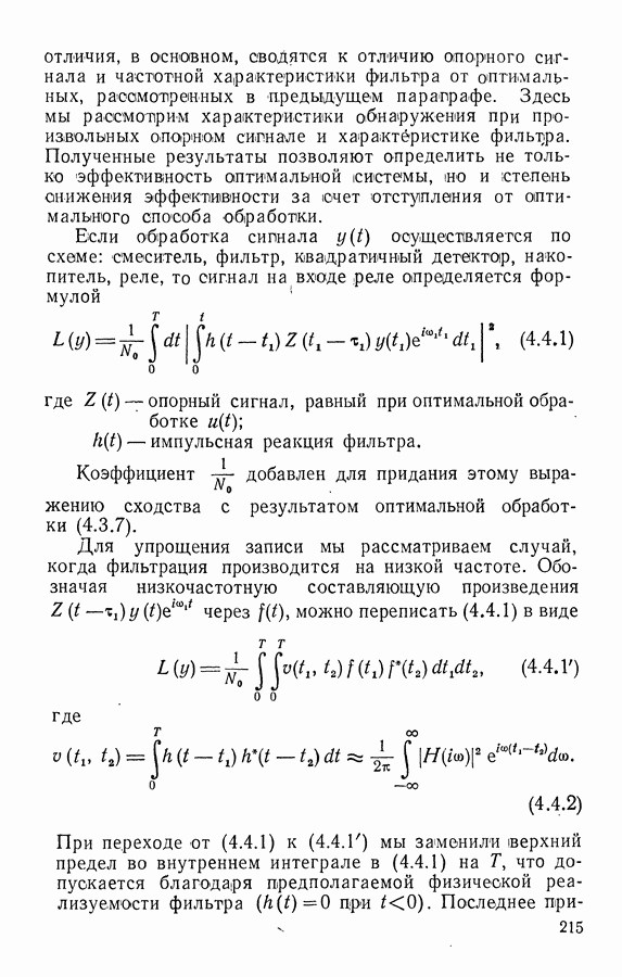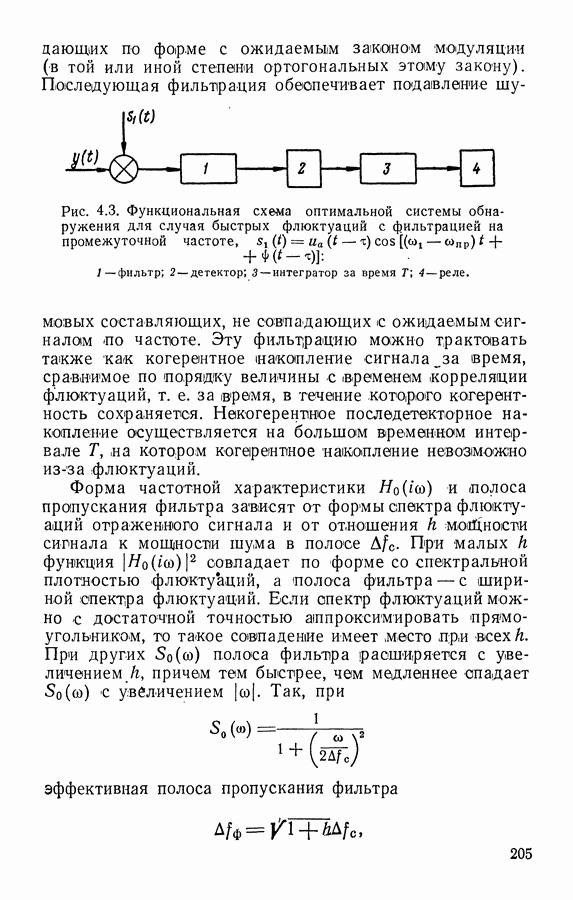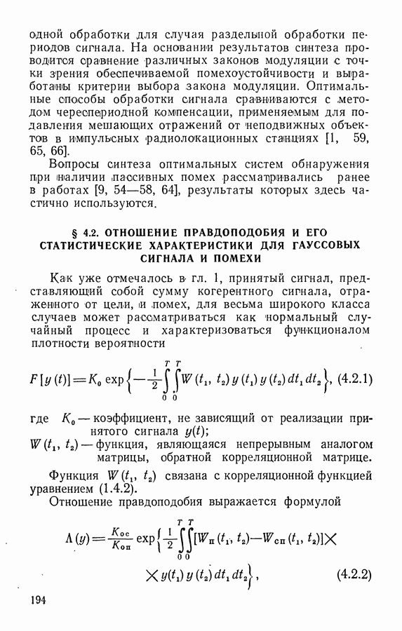 Аналогичным образом преобразуется формула (4.9.19). Таким образом, в случае медленных и быстрых флкжтуаций оптимальный опорный сигнал представляет собой линейную комбинацию ожидаемых сигналов от всех целей. Если отношение сигнал/шум велико для всех целей