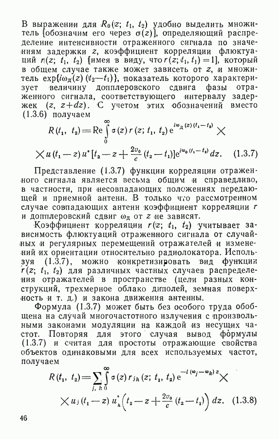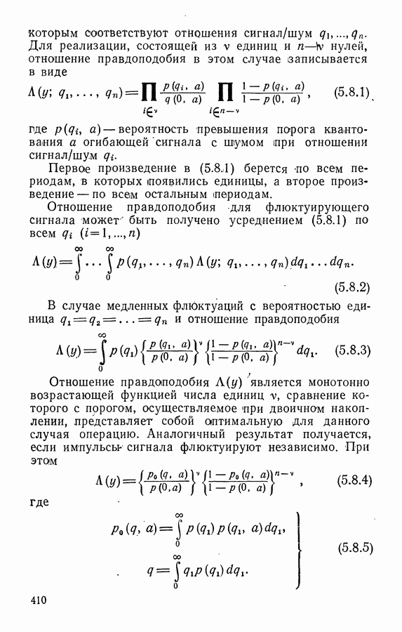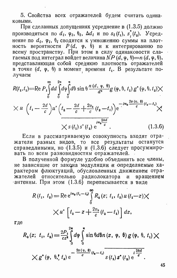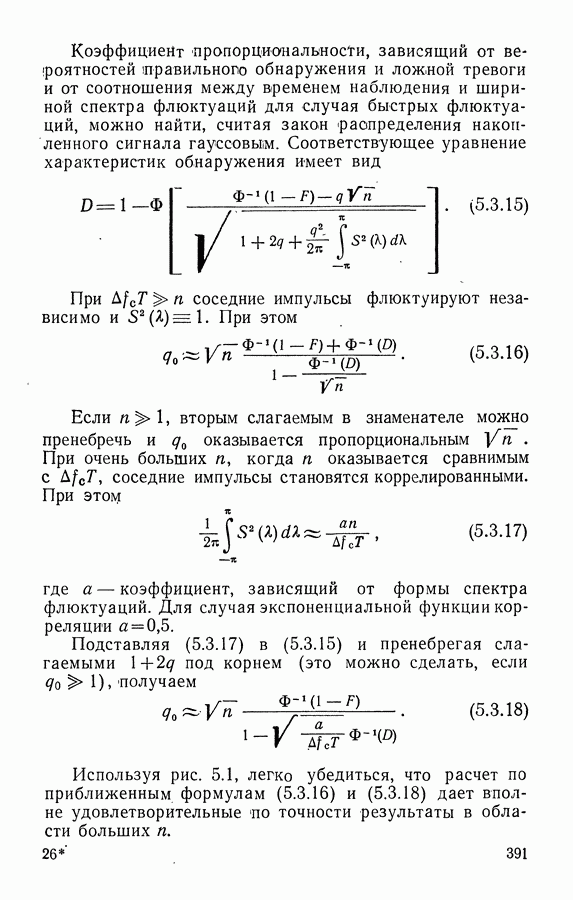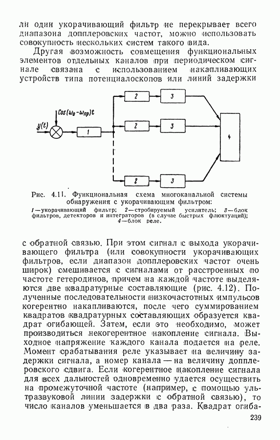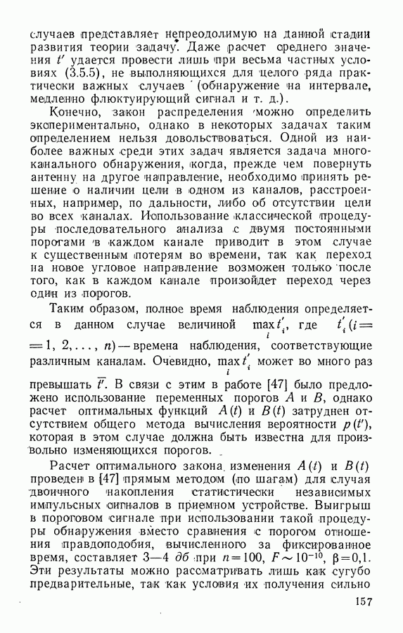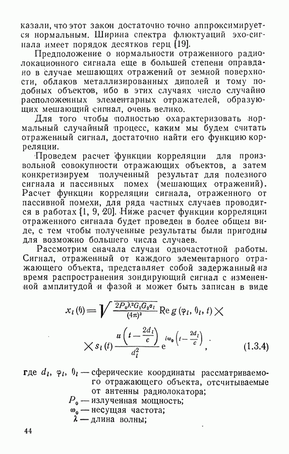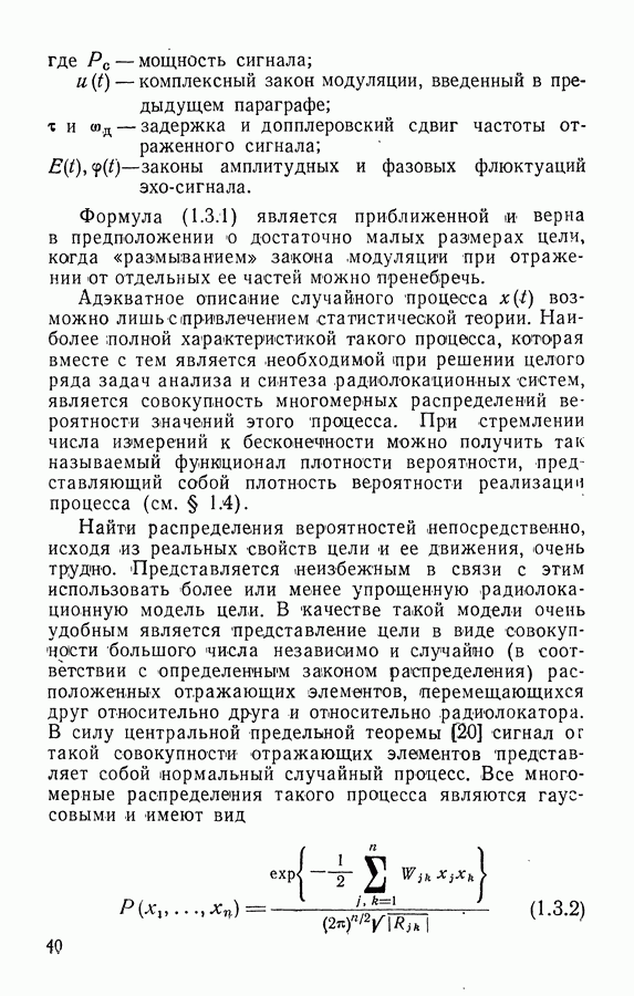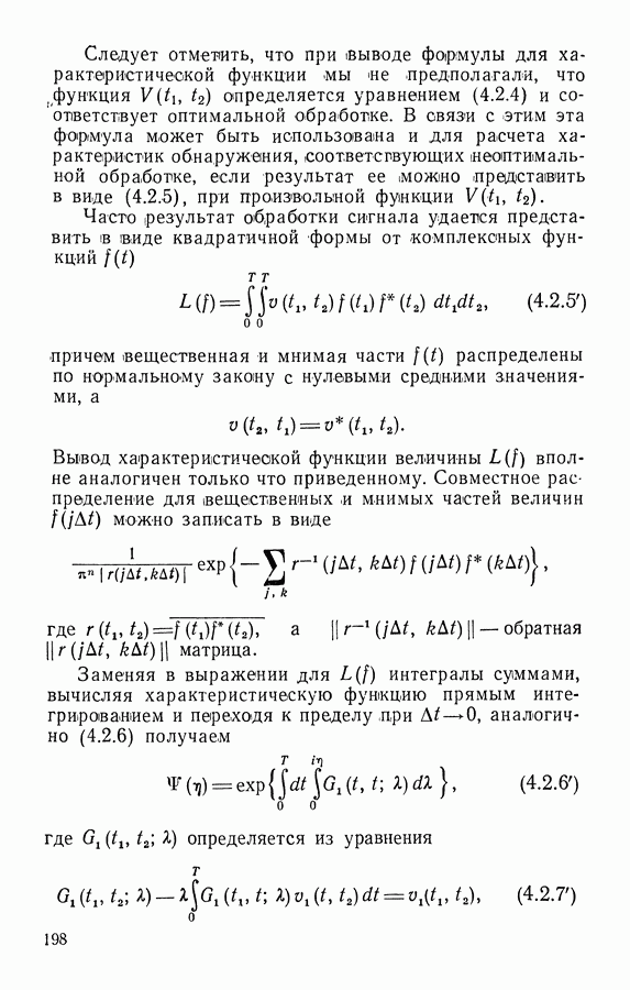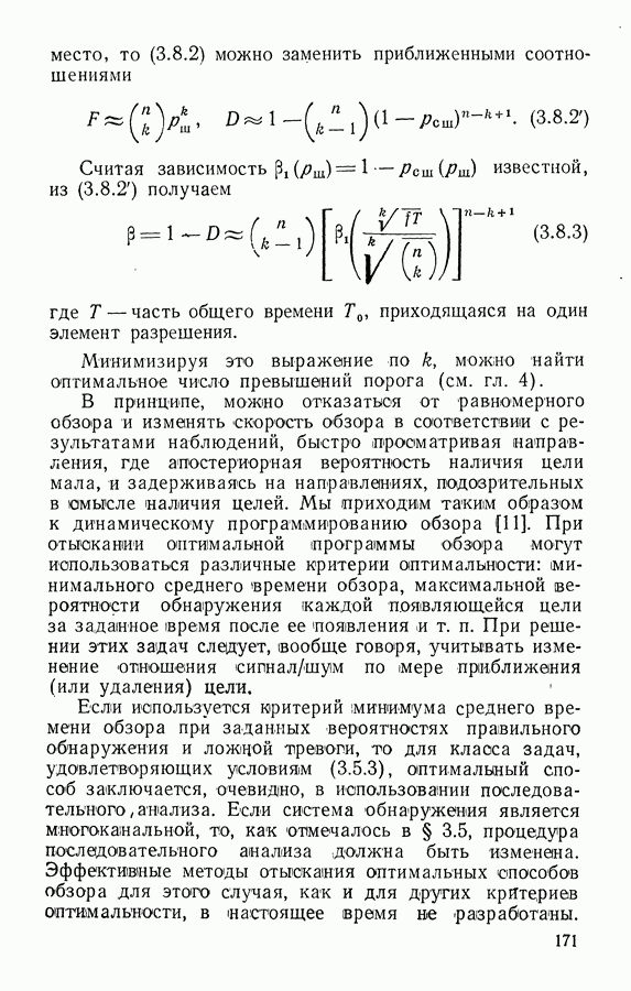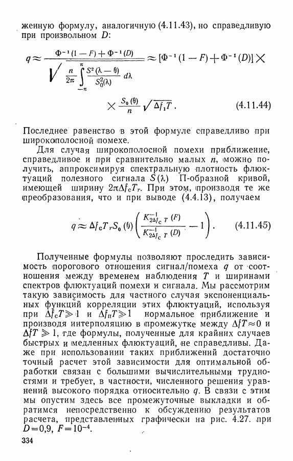 Аналогичным образом преобразуется формула (4.9.19). Таким образом, в случае медленных и быстрых флкжтуаций оптимальный опорный сигнал представляет собой линейную комбинацию ожидаемых сигналов от всех целей. Если отношение сигнал/шум велико для всех целей