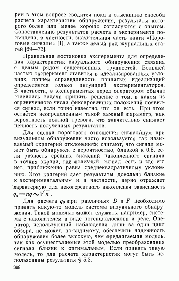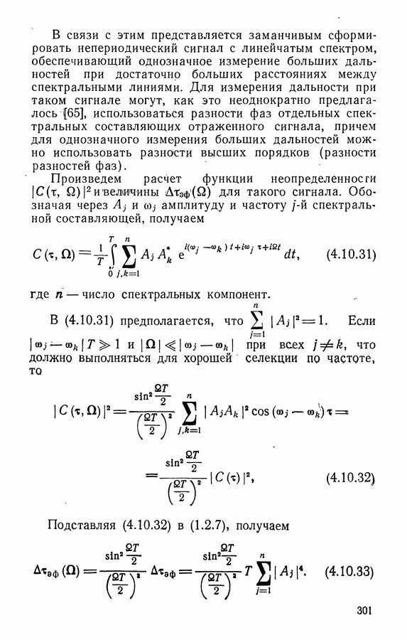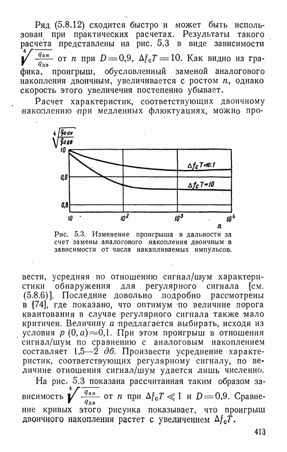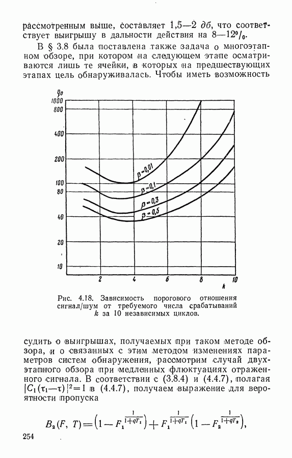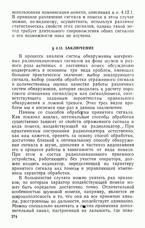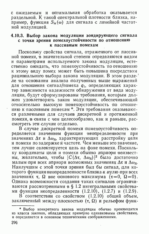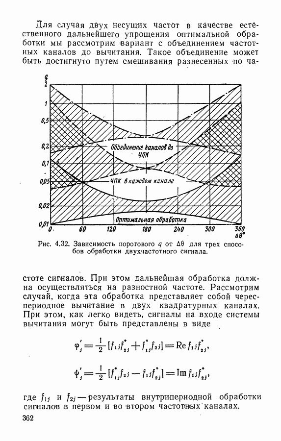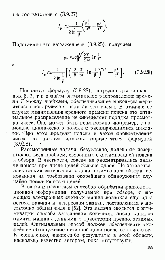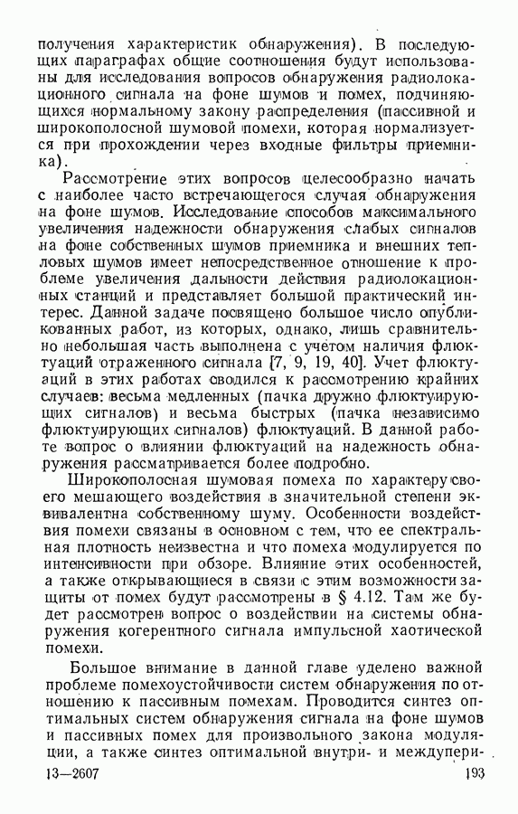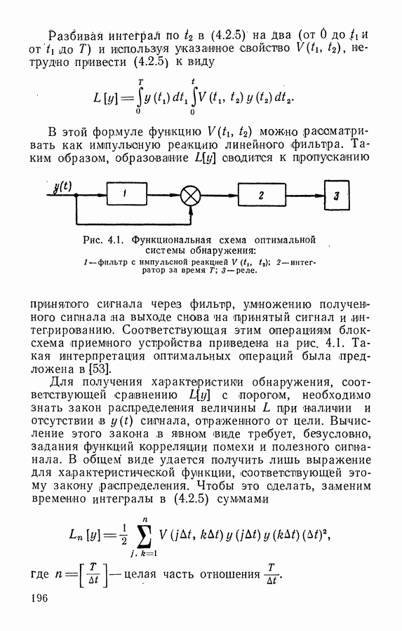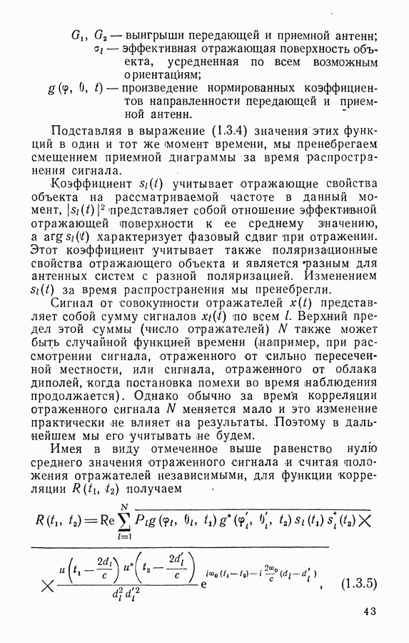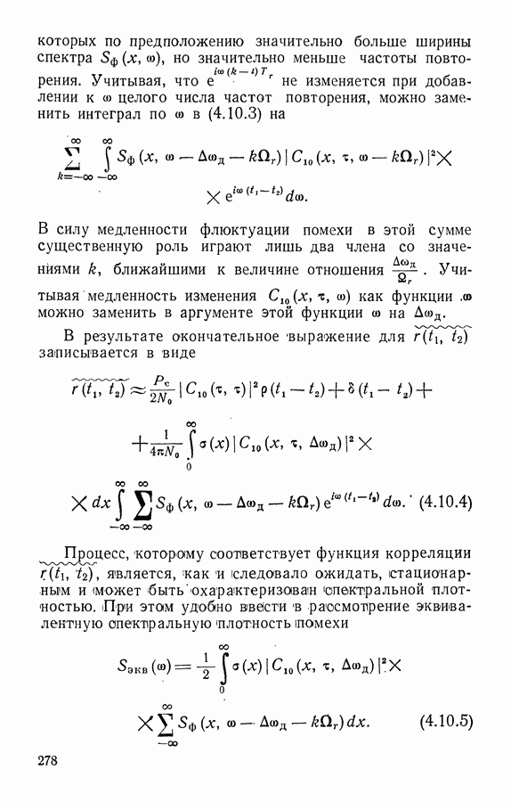 Аналогичным образом преобразуется формула (4.9.19). Таким образом, в случае медленных и быстрых флкжтуаций оптимальный опорный сигнал представляет собой линейную комбинацию ожидаемых сигналов от всех целей. Если отношение сигнал/шум велико для всех целей