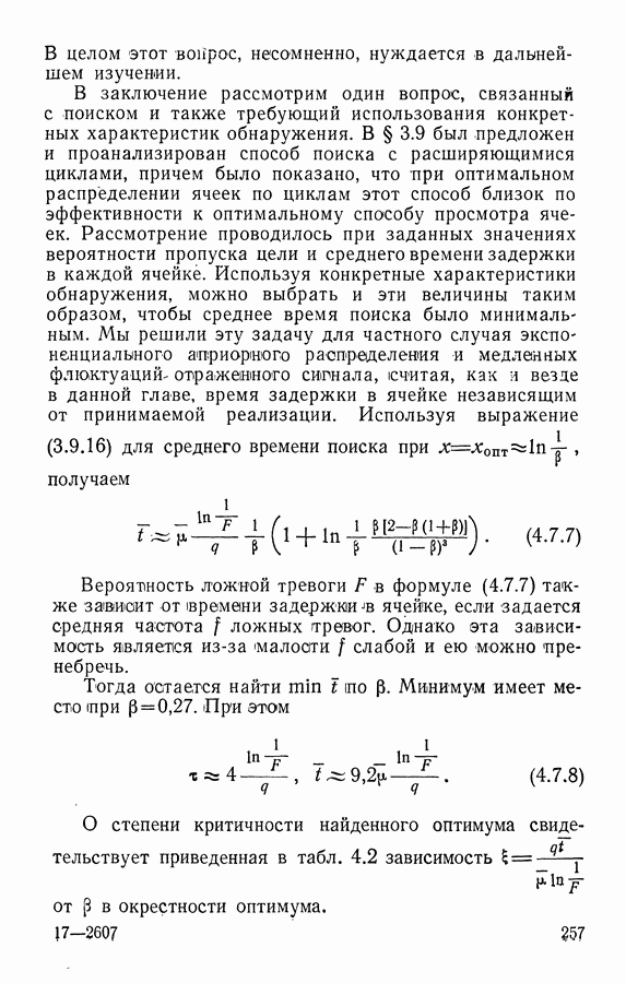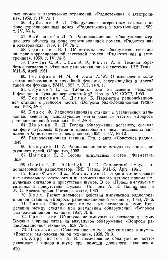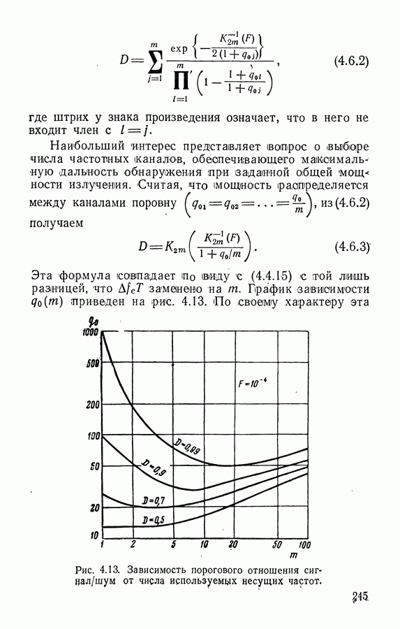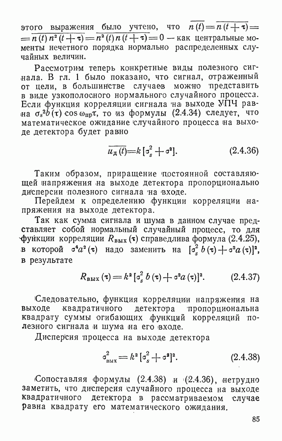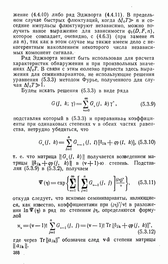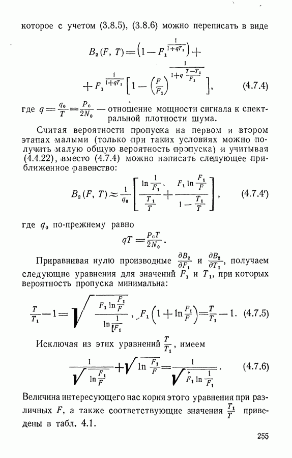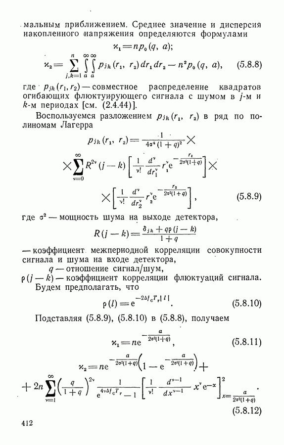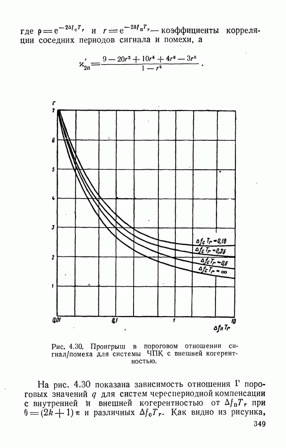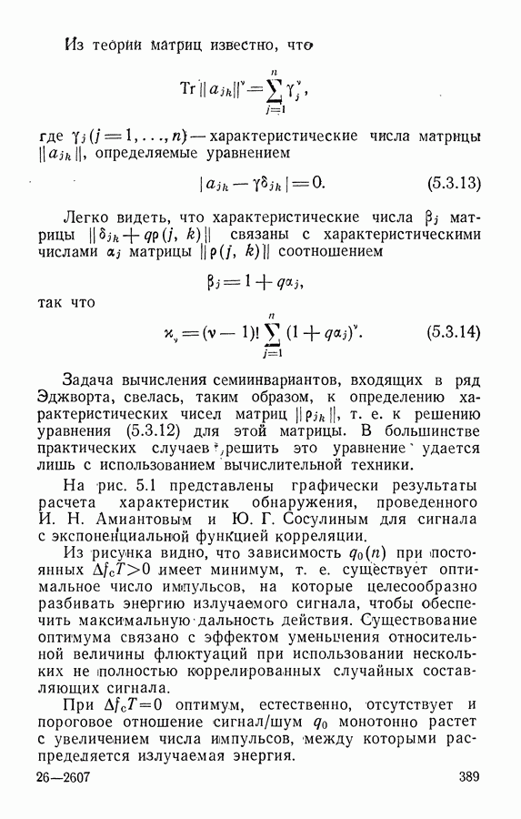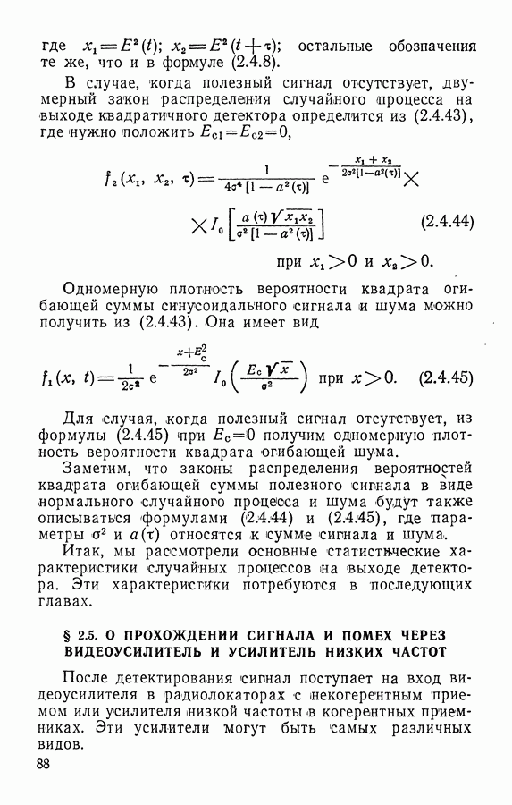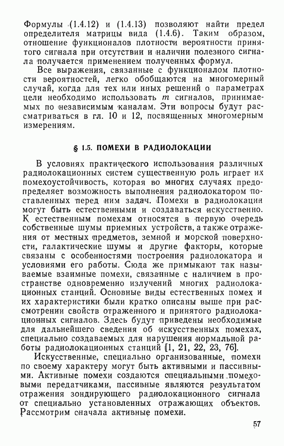 Аналогичным образом преобразуется формула (4.9.19). Таким образом, в случае медленных и быстрых флкжтуаций оптимальный опорный сигнал представляет собой линейную комбинацию ожидаемых сигналов от всех целей. Если отношение сигнал/шум велико для всех целей