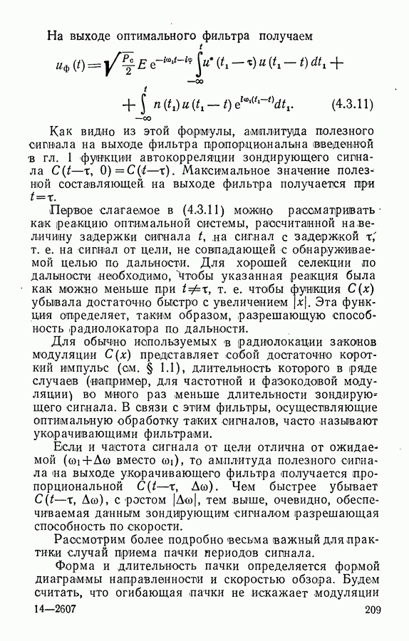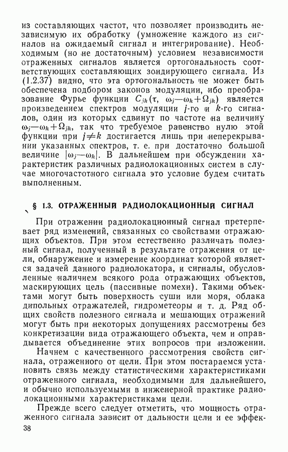 При этом умножение на опорный сигнал и интегрирование приобретают наиболее простой смысл: эта операция обеспечивает полное подавление сигналов от мешающих целей. Действительно, опорный сигнал в этом случае оказывается полностью ортогональным сигналам от мешающих целей: