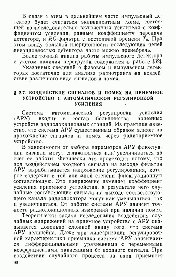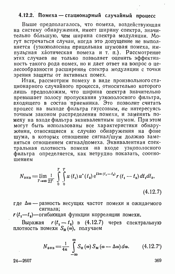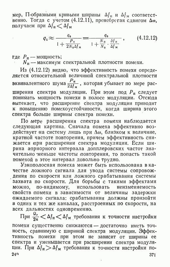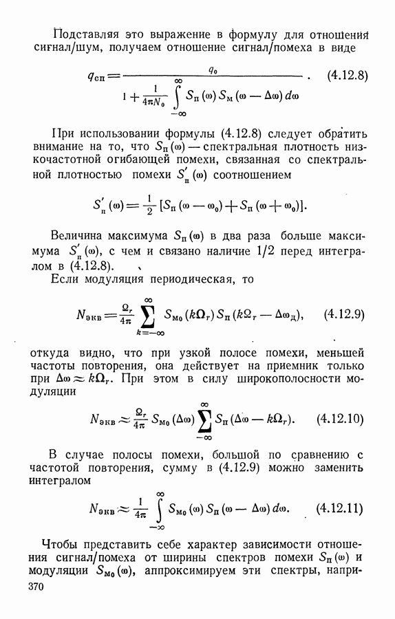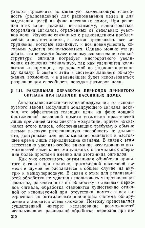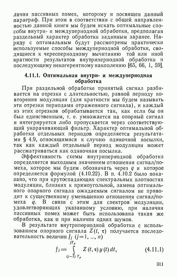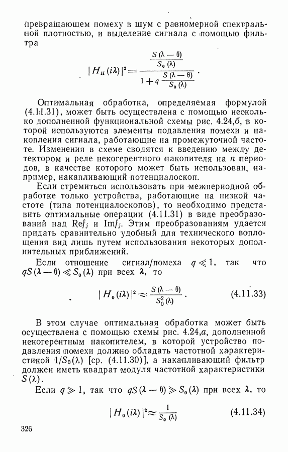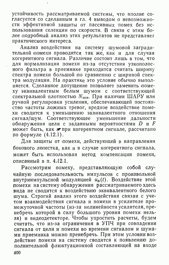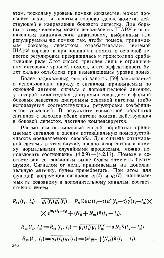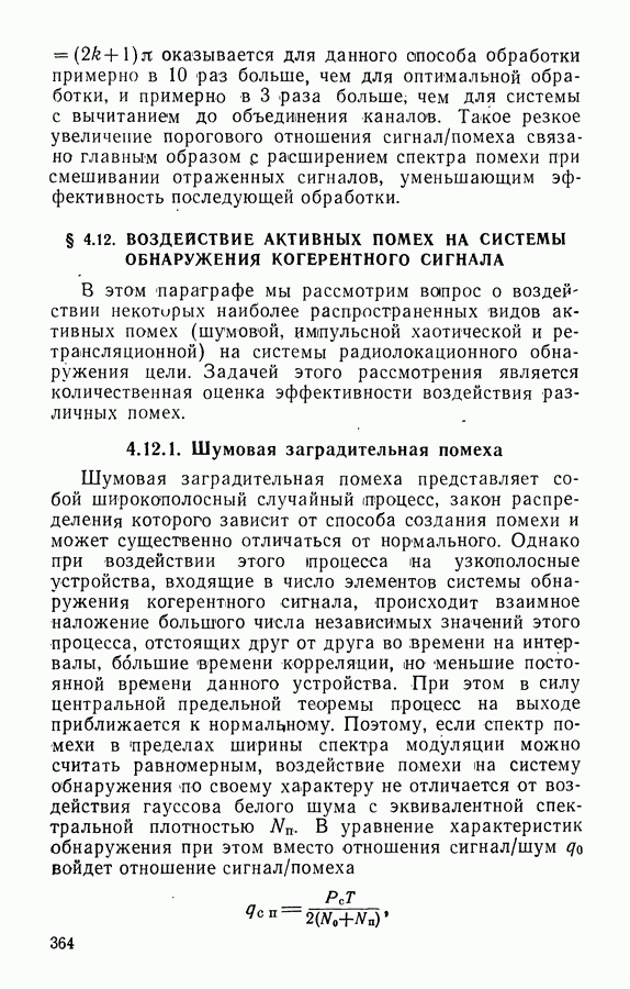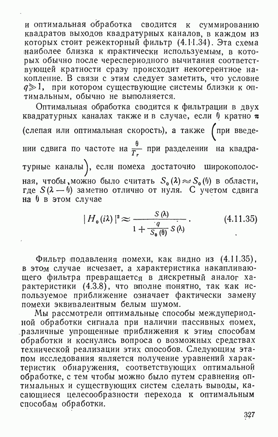 В тех случаях, когда пренебречь шумом нельзя, обработка рассматриваемого вида обеспечивает неполное подавление мешающих сигналов, уменьпшя их примерно до уровня шума (ом. § 4.10). Одновременно (подавляется полезный сигнал и уменьшается отношение сигнал/шум.