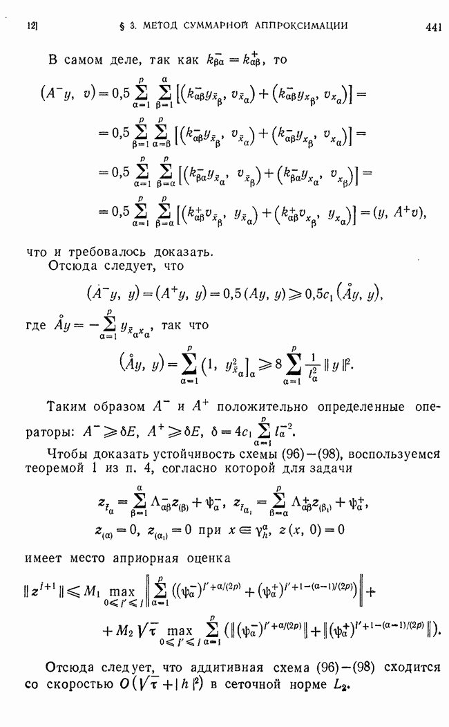 то каждое из уравнений номера а не аппроксимирует многомерное уравнение (33). Однако, в силу (40) — (42), аддитивная схема (37), (38) аппроксимирует уравнение в суммарном смысле, так как