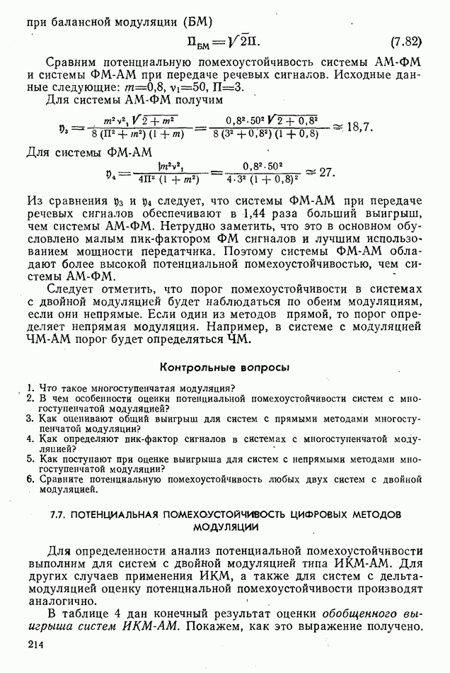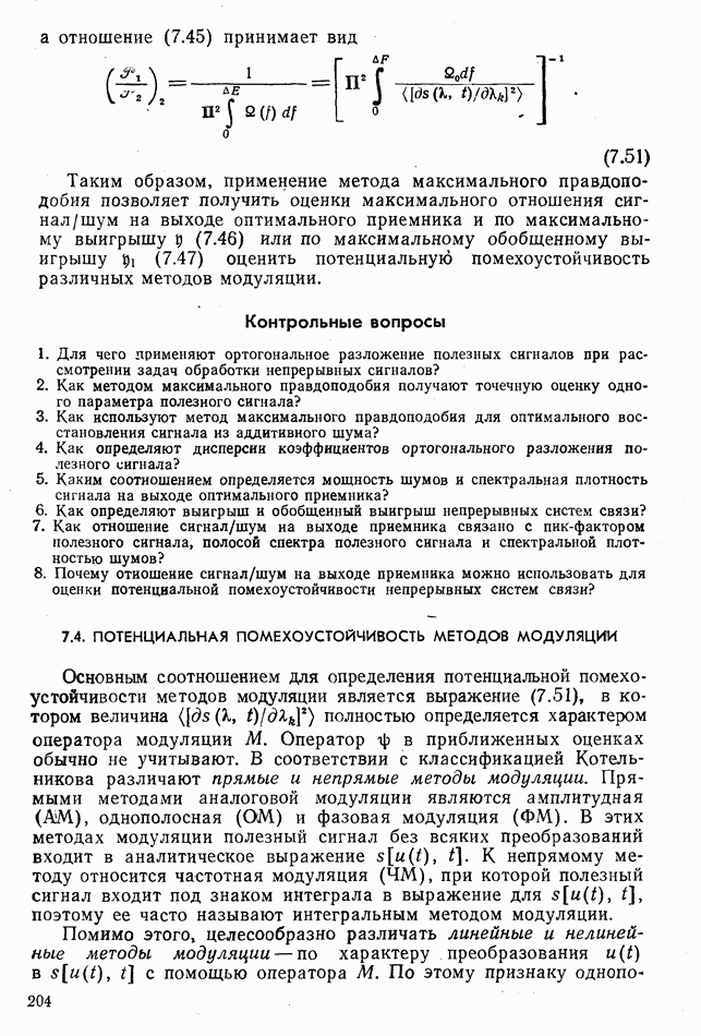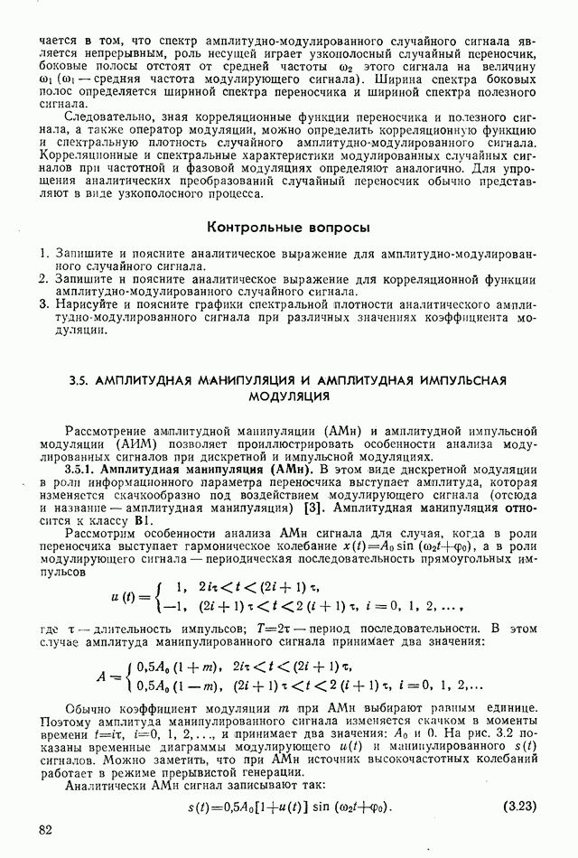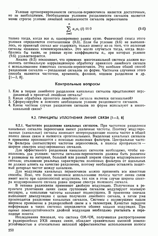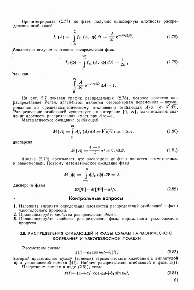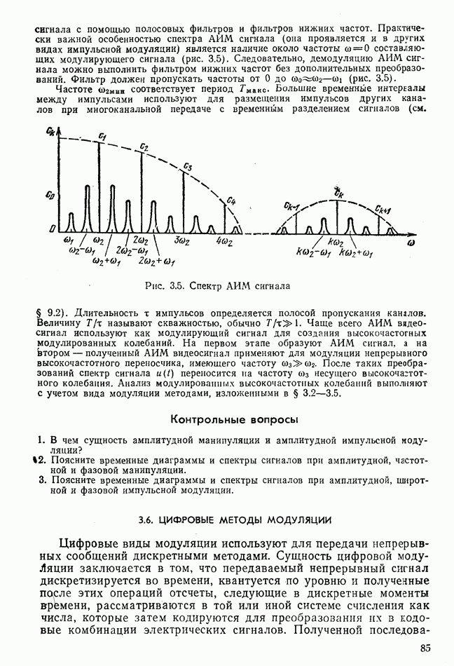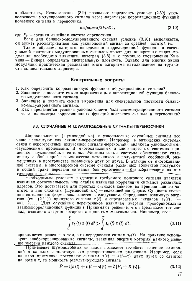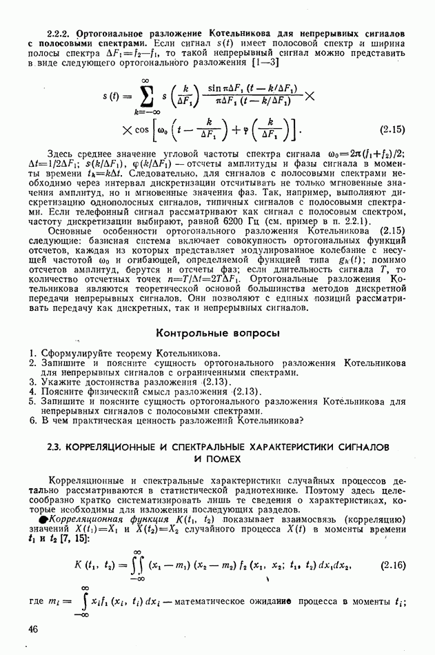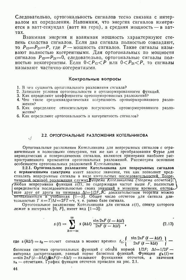 Здесь среднее значение угловой частоты спектра сигнала Основные особенности ортогонального разложения Котельникова (2.15) следующие: базисная система включает совокупность ортогональных функций отсчетов, каждая из которых представляет модулированное колебание с несущей частотой Контрольные вопросы(см. скан)