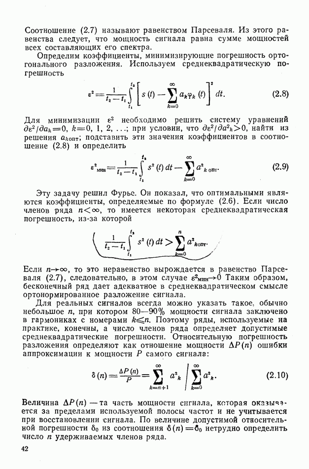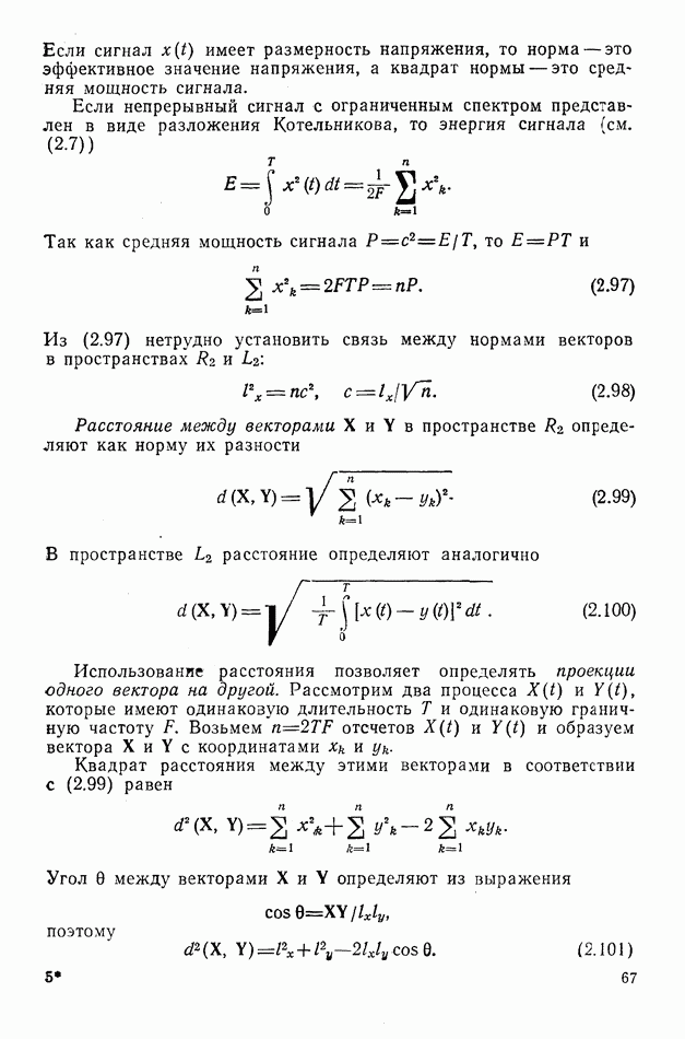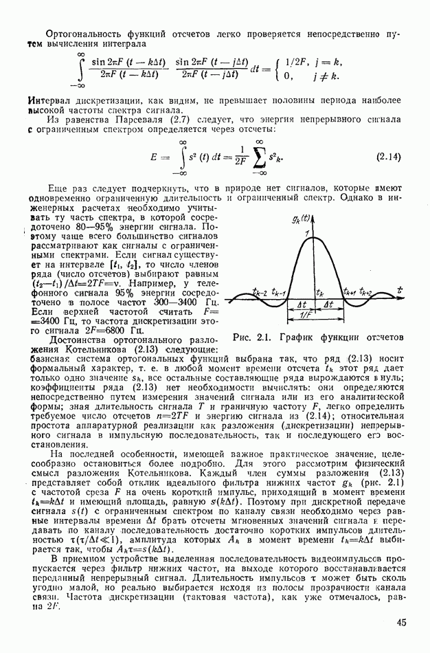 Интервал дискретизации, как видим, не превышает половины периода наиболее высокой частоты спектра сигнала. Из равенства Парсеваля (2.7) следует, что энергия непрерывного сигнала С ограниченным спектром определяется через отсчеты: