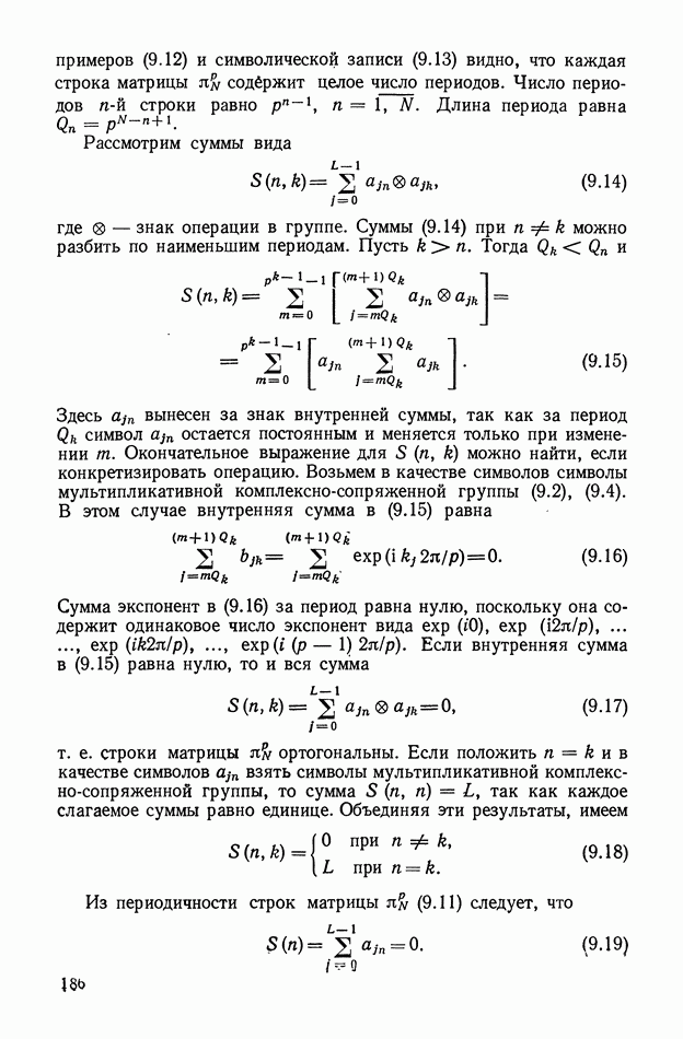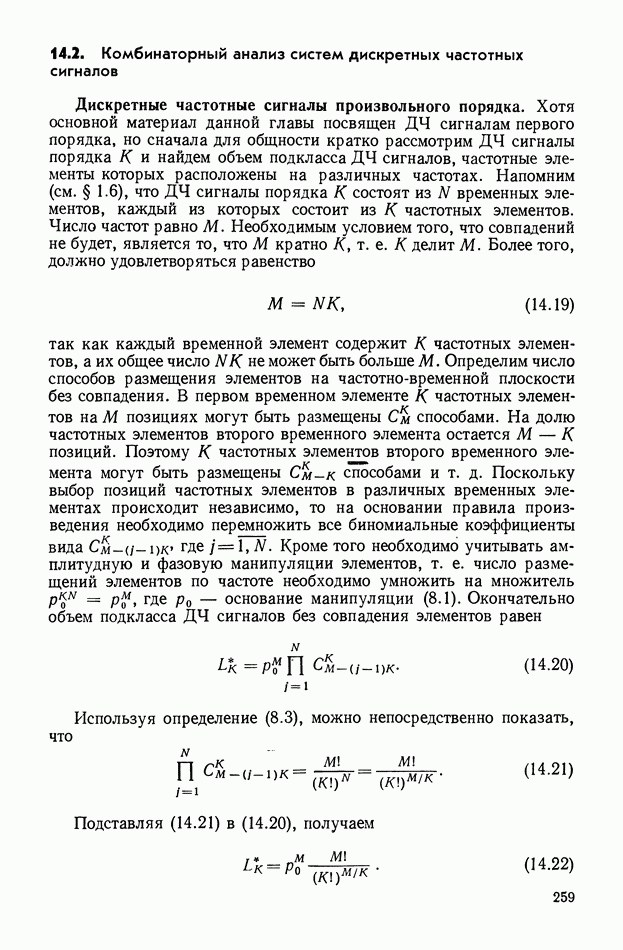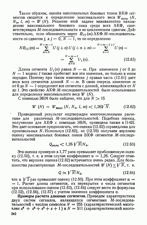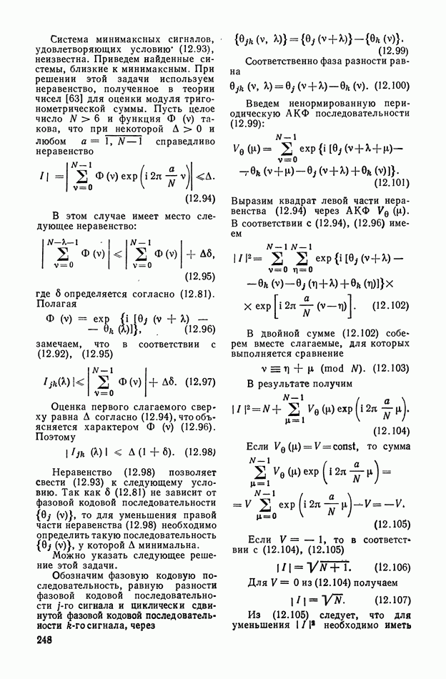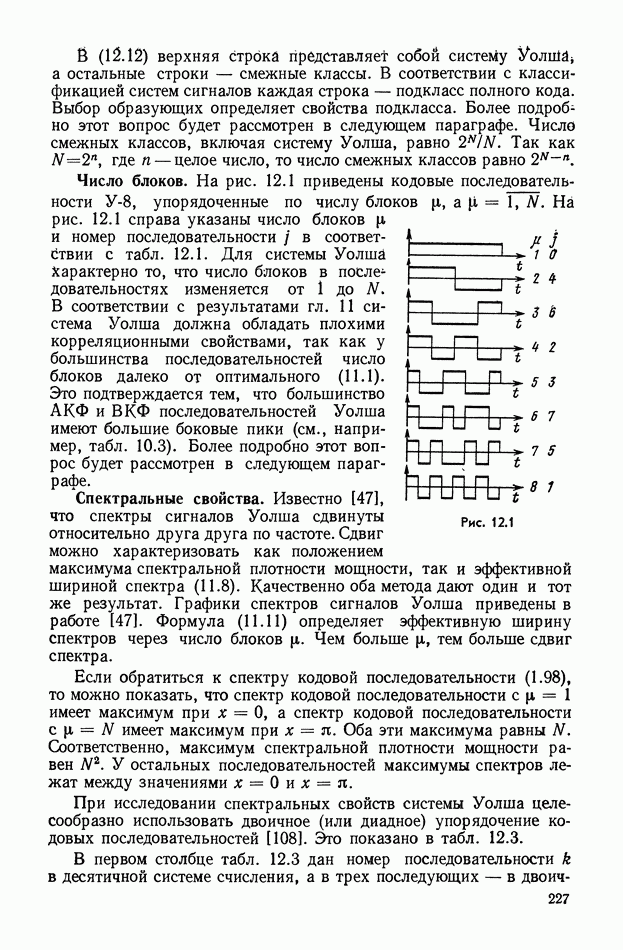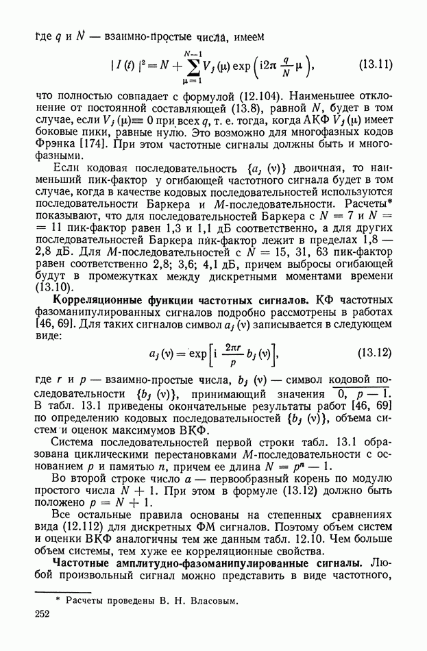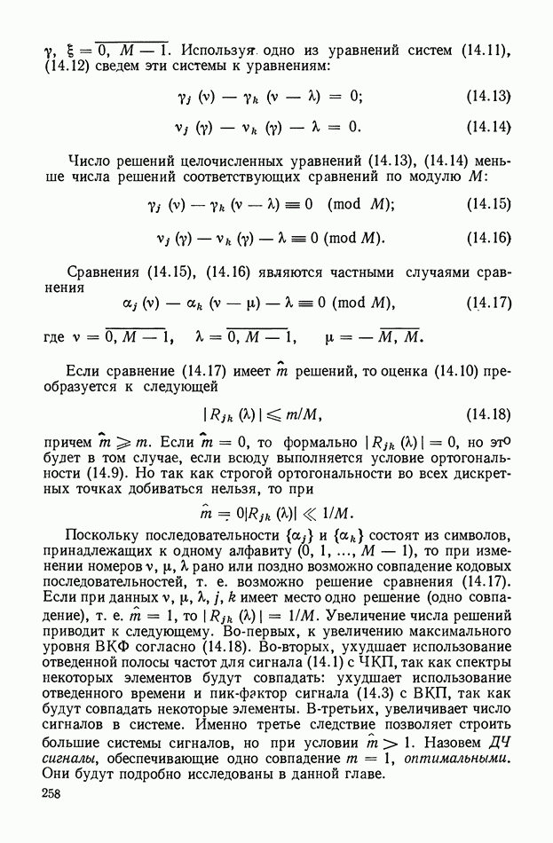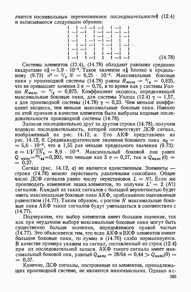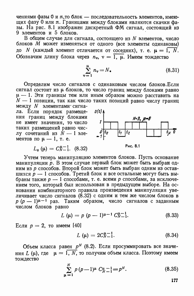 число элементов ФМ сигнала, а блок — последовательность одинаковых элементов (см. § 8.5). Это свойство подтверждается большим числом примеров как одиночных оптимальных ФМ сигналов, так и систем ФМ сигналов, рассматриваемых в данном параграфе. Такое свойство позволяет высказать гипотезу: оптимальные ФМ сигналы следует искать среди множества ФМ сигналов, которые удовлетворяют условию