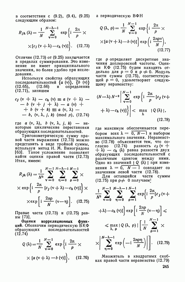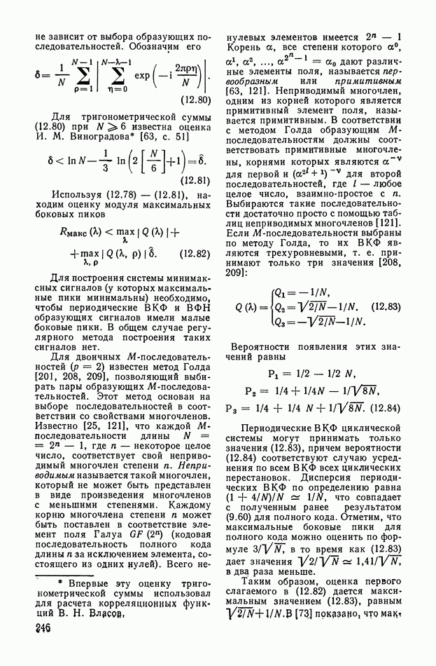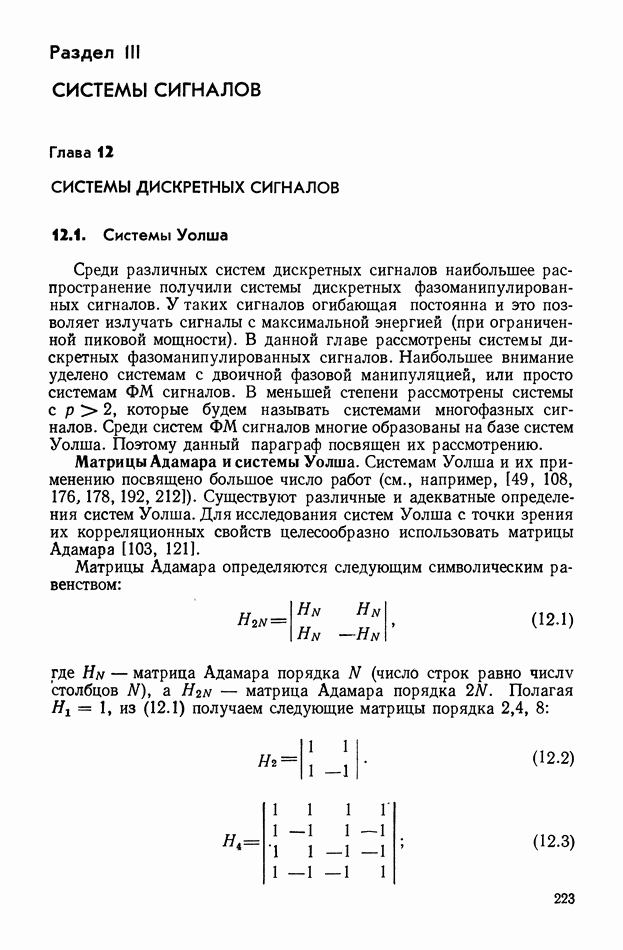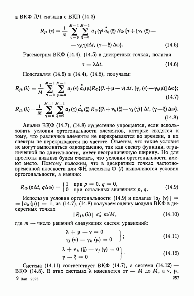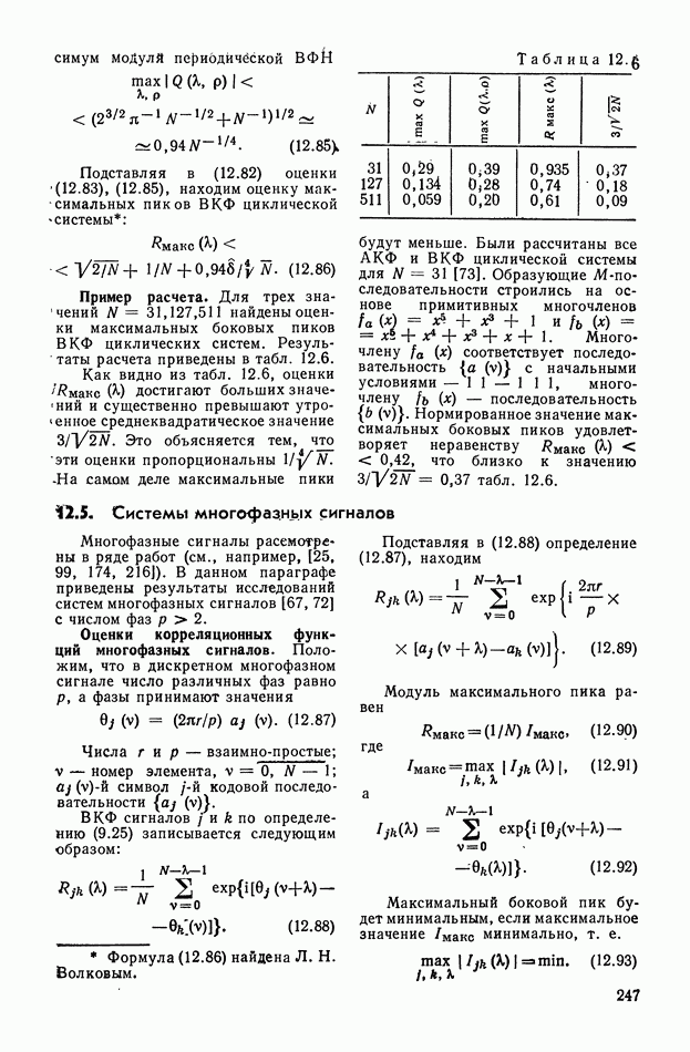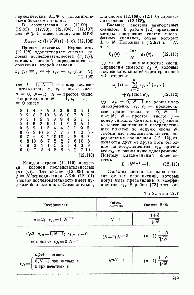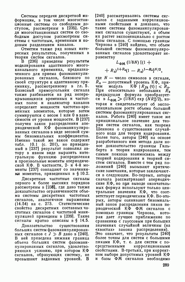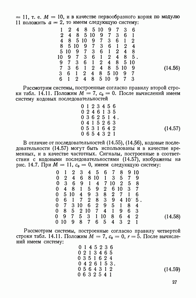 число элементов ФМ сигнала, а блок — последовательность одинаковых элементов (см. § 8.5). Это свойство подтверждается большим числом примеров как одиночных оптимальных ФМ сигналов, так и систем ФМ сигналов, рассматриваемых в данном параграфе. Такое свойство позволяет высказать гипотезу: оптимальные ФМ сигналы следует искать среди множества ФМ сигналов, которые удовлетворяют условию