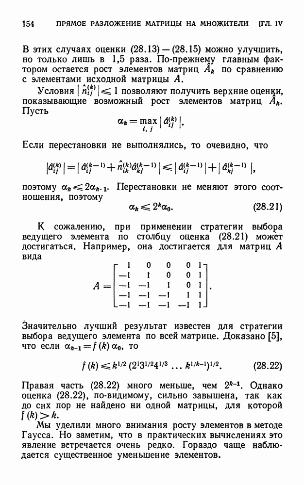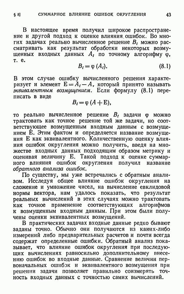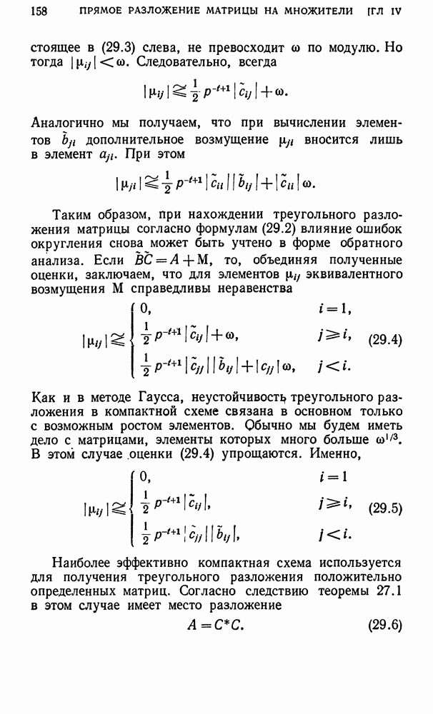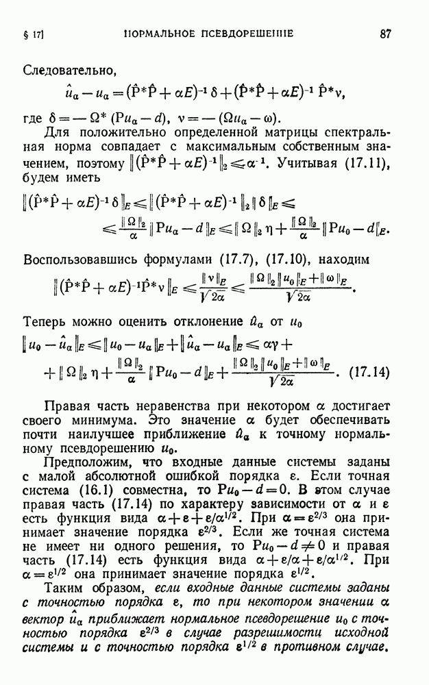 Полученные формулы (10.6), (10.10) дают количественные оценки возмущения обратной матрицы и решения системы линейных алгебраических уравнений при изменении матрицы и правой части системы. Из них вытекает, что в окрестности любой невырожденной матрицы обратная матрица и решение системы являются непрерывными функциями входных данных. При этом соотношение (10.2) определяет окрестность, в которой гарантируется непрерывность по матрице. Непрерывность решения по правой части имеет место всюду. В заключение остановимся на одном следствии из разложения (10.1). Пусть матрица