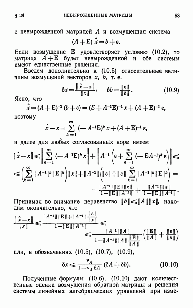 Распознанный текст, спецсимволы и формулы могут содержать ошибки, поэтому с корректным вариантом рекомендуем ознакомиться на отсканированных изображениях учебника выше Также, советуем воспользоваться поиском по сайту, мы уверены, что вы сможете найти больше информации по нужной Вам тематике ДЛЯ СТУДЕНТОВ И ШКОЛЬНИКОВ ЕСТЬZADANIA.TO § 10. Невырожденные матрицыИсследование возмущения невырожденной матрицы тесно связано с матрицами вида