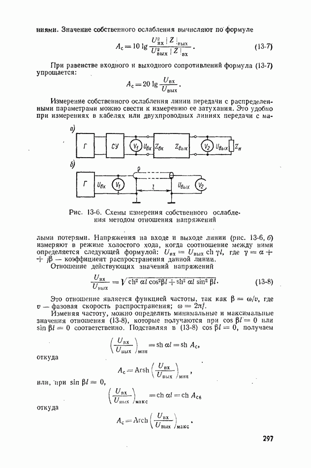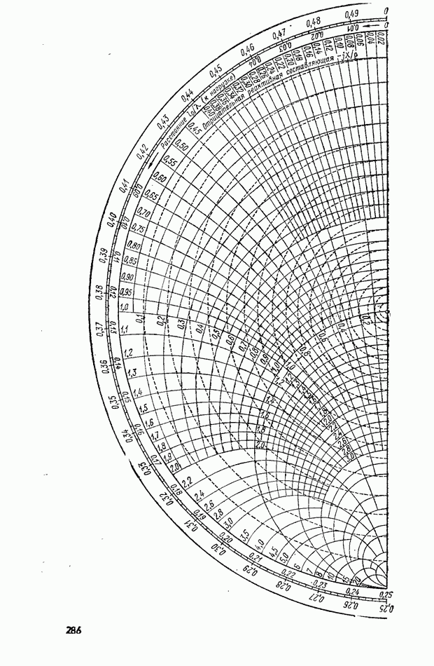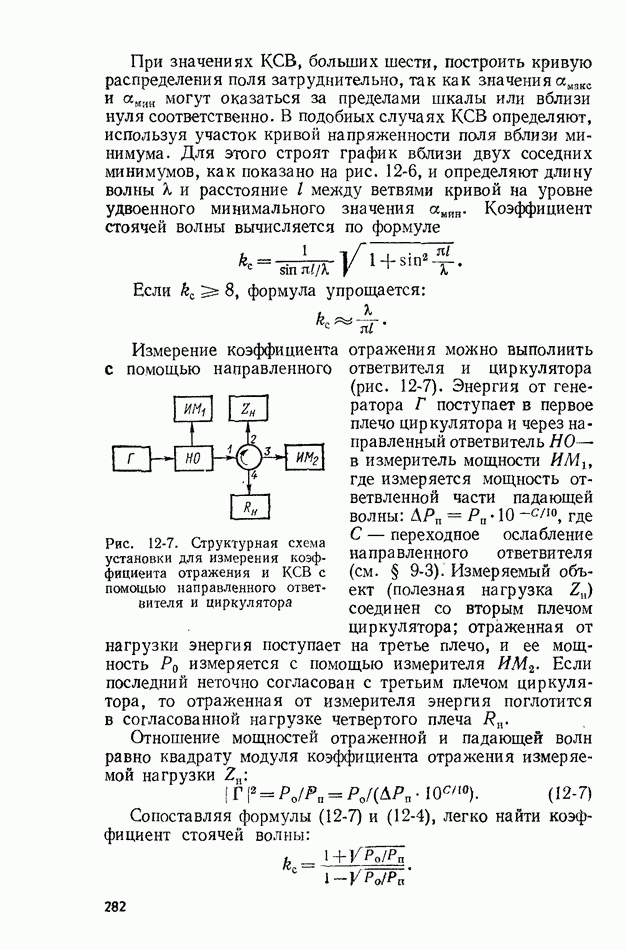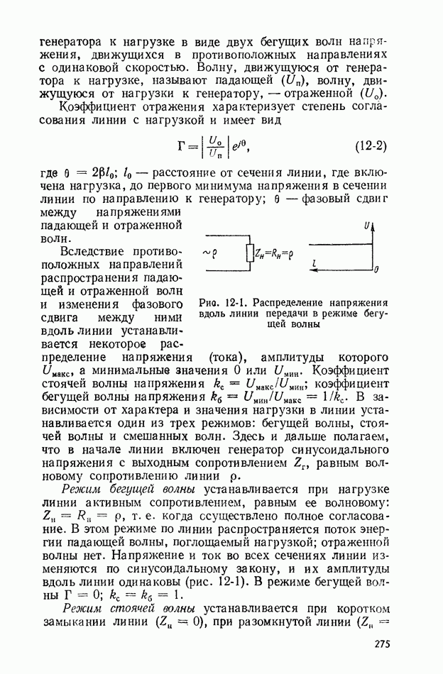 Рис. 12-3. Распределение напряжения вдоль линии передачи в режиме смешанных волн Расстояние Коэффициент отражения удобно выразить через волновое сопротивление линии и сопротивление нагрузки: