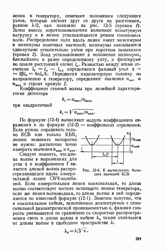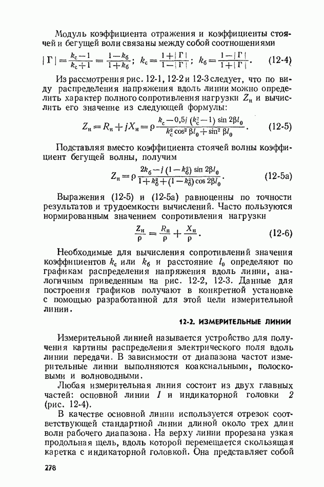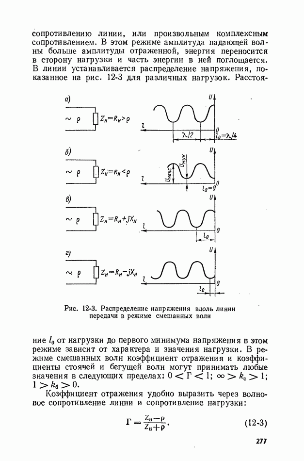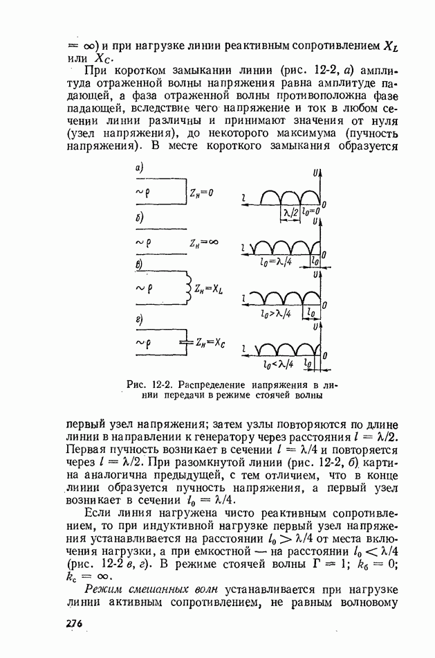 Из рассмотрения рис. 12-1, 12-2 и 12-3 следует, что по виду распределения напряжения вдоль линии можно определить характер полного сопротивления нагрузки