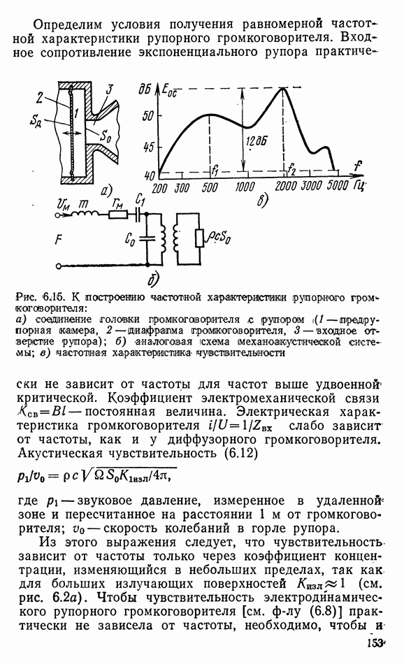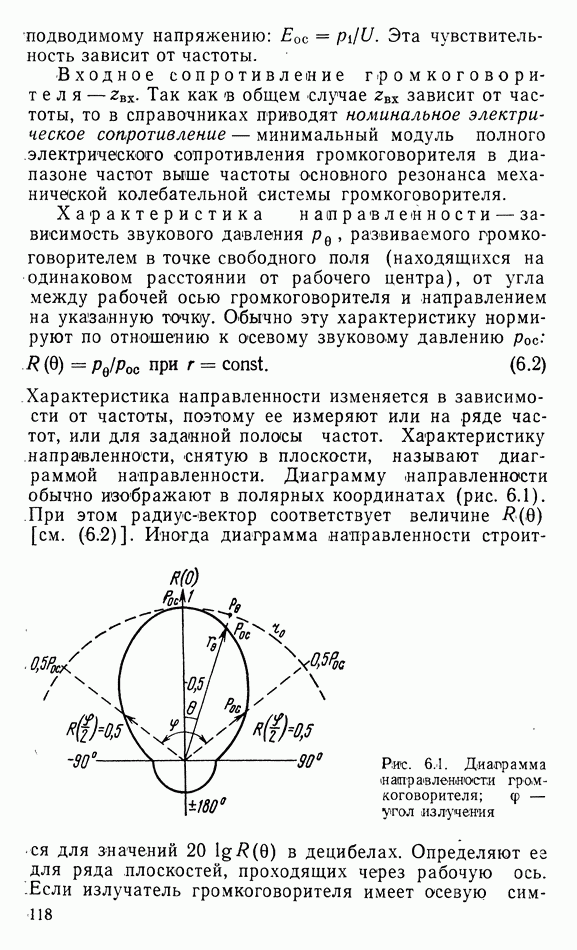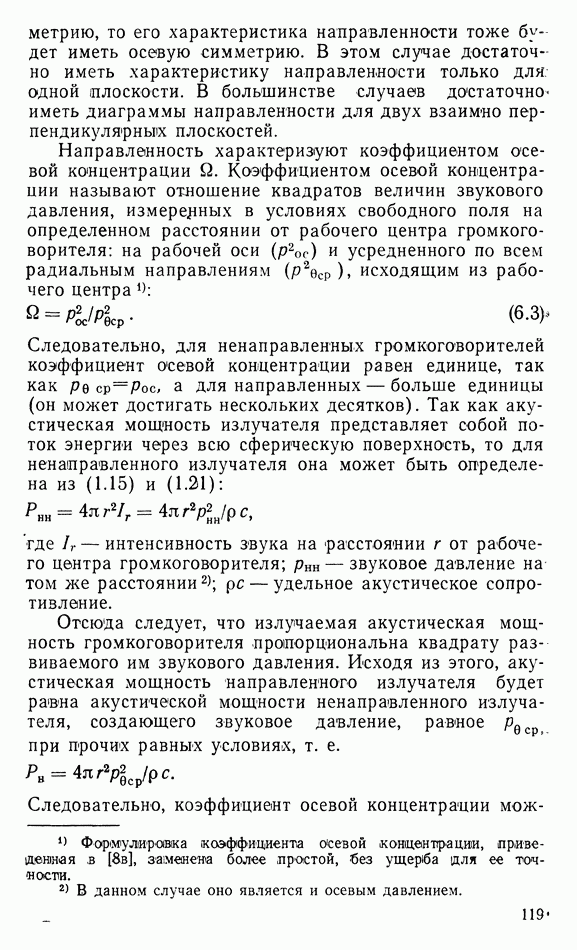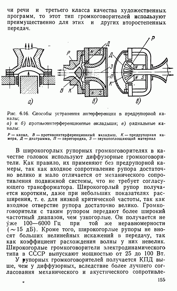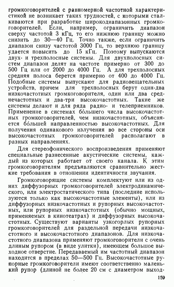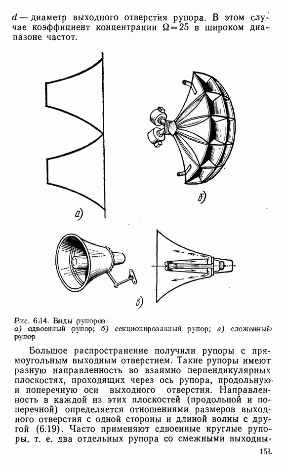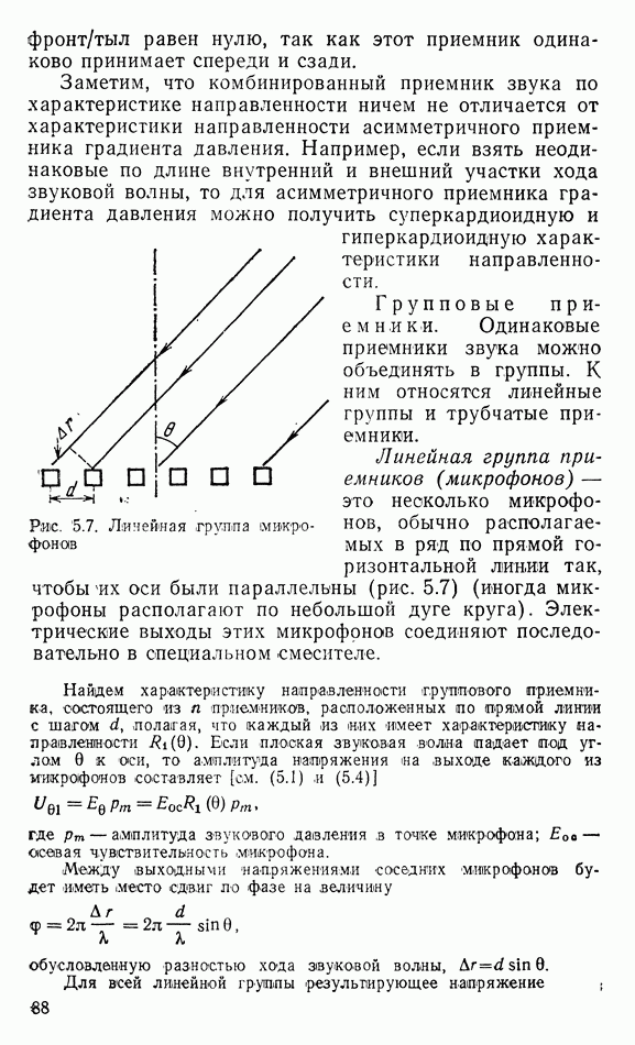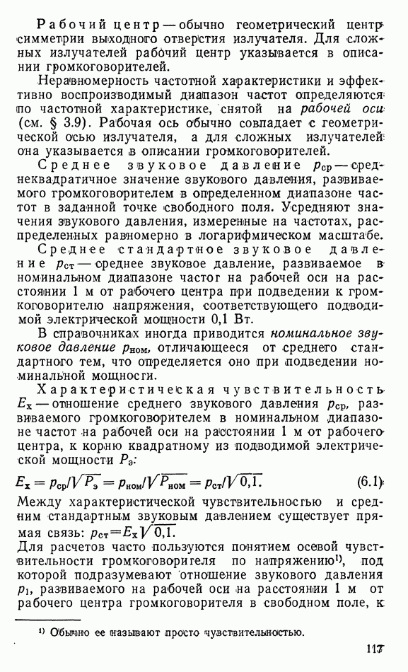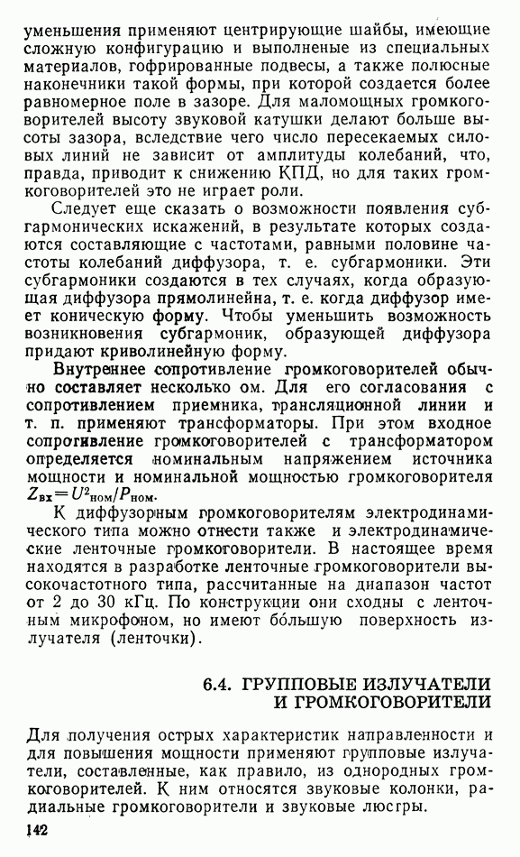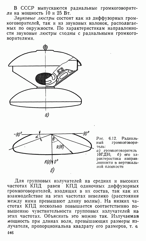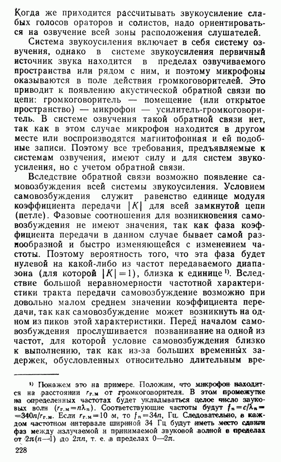 (кликните для просмотра скана) высотой подвеса Определим эту зависимость. Хотя каждый из громкоговорителей бесконечной цепочки излучает во все стороны, правомерно считать, что излучение каждого из них распространяется только в зоне, ограниченной плоскостями, перпендикулярными оси цепочки и находящимися по обе стороны каждого источника звука на расстоянии Так как Неравномерность озвучения в пределах озвучиваемой плоскости по ее ширине определится из соотношения между высотой подвеса цепочки Для двух цепочек, расположенных параллельно друг другу на расстоянии В этом случае максимальный уровень на озвучиваемой плоскости (в зависимости от высоты подвеса) может быть под цепочками или смещен к средней линии между ними. Для получения неравномерности меньше При использовании двух цепочек, расположенных на противоположных стенах, уровень прямого звука из-за отражений повышается почти на Для цепочки из звуковых колонок звуковое давление определяется аналогично случаю ненаправленных громкоговорителей, но с введением поправки на эксцентриситеты характеристики направленности в продольной и поперечной плоскостях