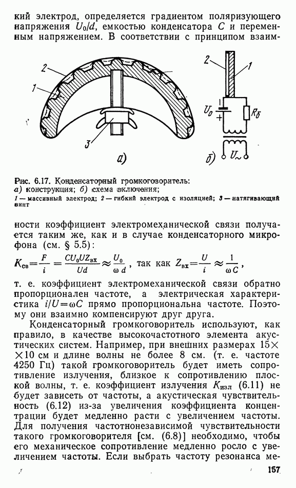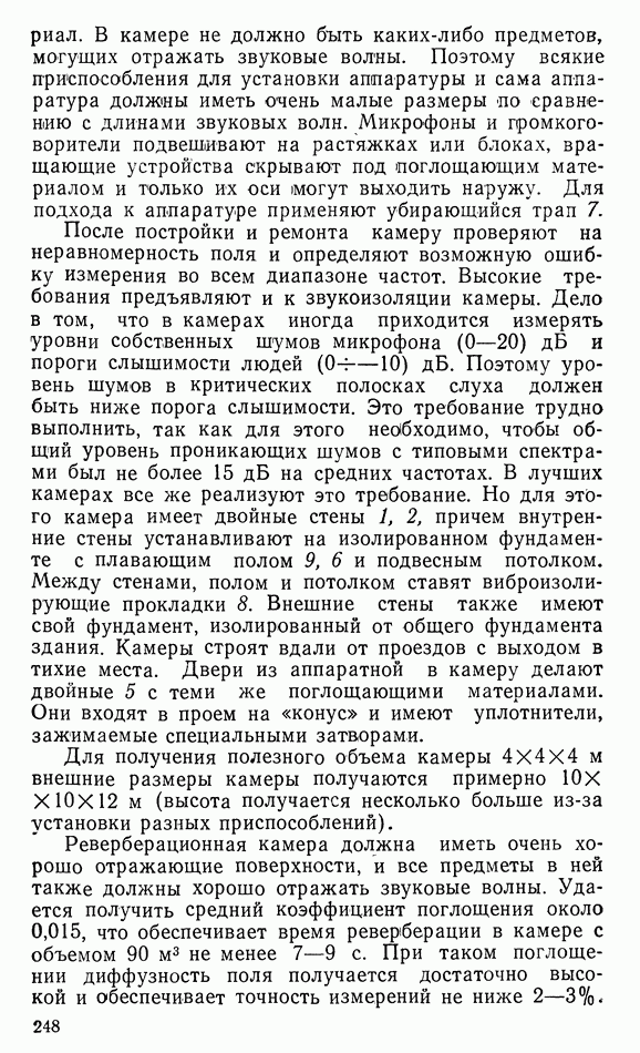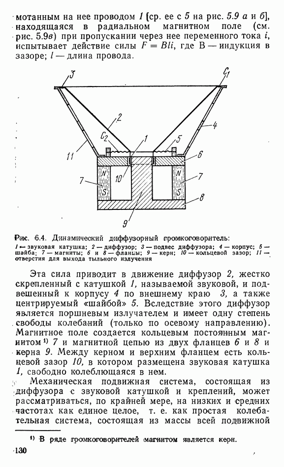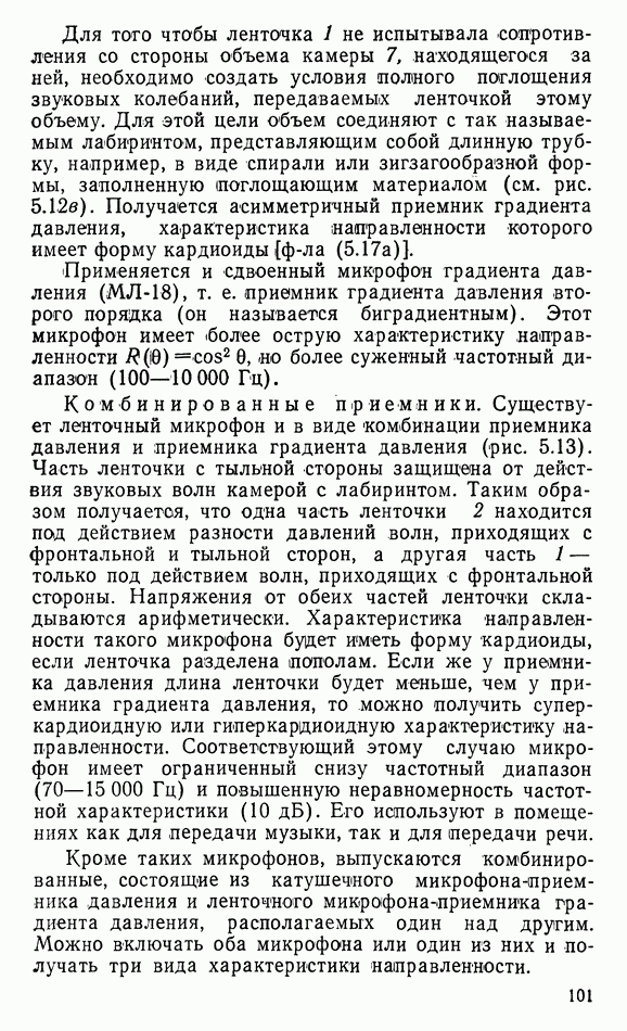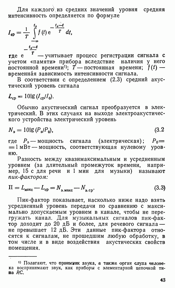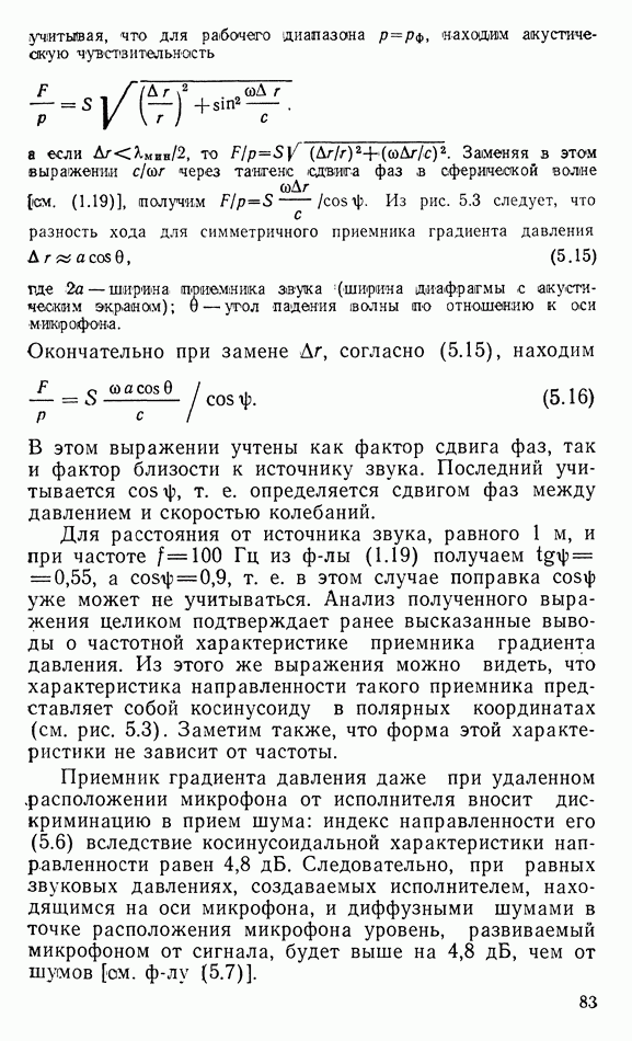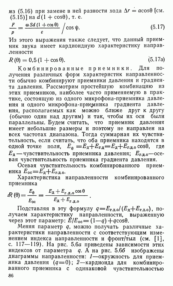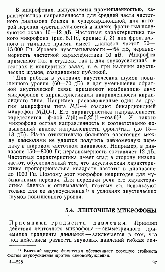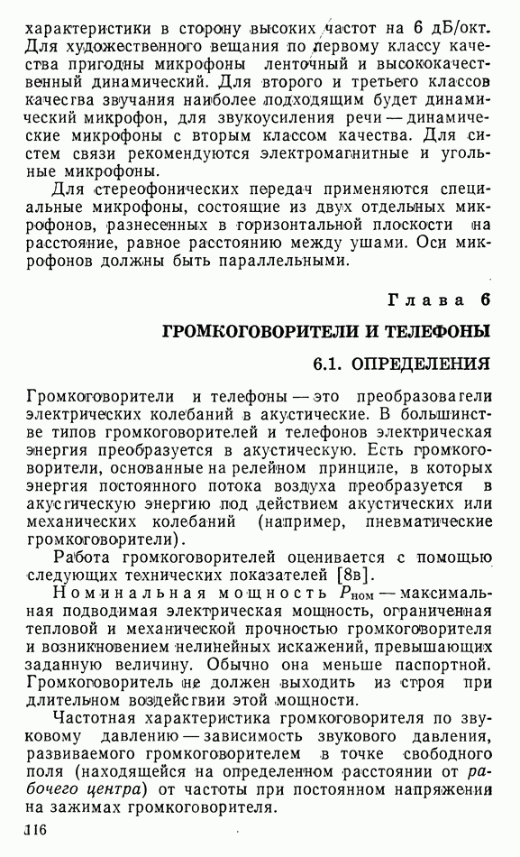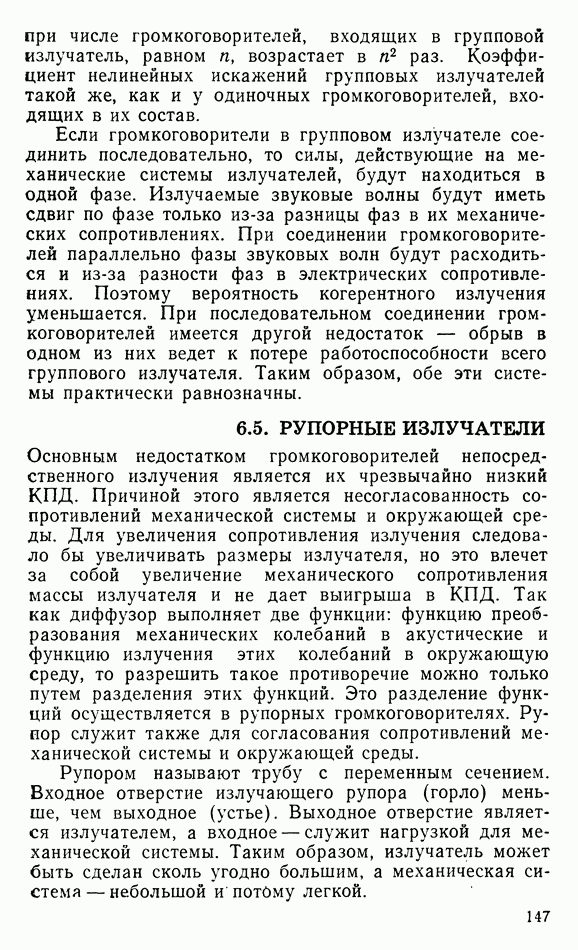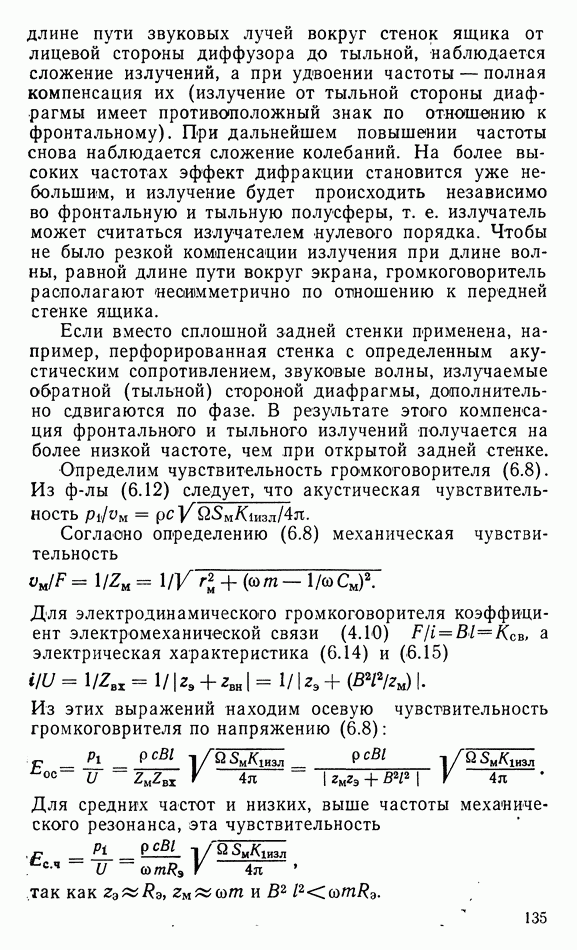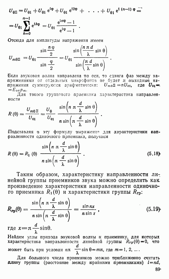 (кликните для просмотра скана) высотой подвеса Определим эту зависимость. Хотя каждый из громкоговорителей бесконечной цепочки излучает во все стороны, правомерно считать, что излучение каждого из них распространяется только в зоне, ограниченной плоскостями, перпендикулярными оси цепочки и находящимися по обе стороны каждого источника звука на расстоянии Так как Неравномерность озвучения в пределах озвучиваемой плоскости по ее ширине определится из соотношения между высотой подвеса цепочки Для двух цепочек, расположенных параллельно друг другу на расстоянии В этом случае максимальный уровень на озвучиваемой плоскости (в зависимости от высоты подвеса) может быть под цепочками или смещен к средней линии между ними. Для получения неравномерности меньше При использовании двух цепочек, расположенных на противоположных стенах, уровень прямого звука из-за отражений повышается почти на Для цепочки из звуковых колонок звуковое давление определяется аналогично случаю ненаправленных громкоговорителей, но с введением поправки на эксцентриситеты характеристики направленности в продольной и поперечной плоскостях