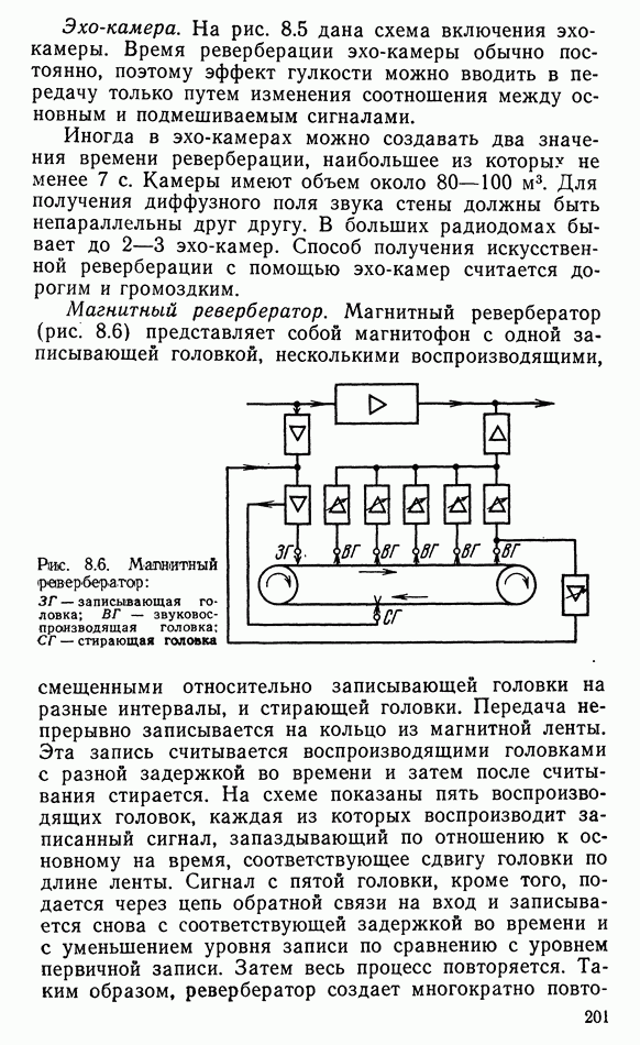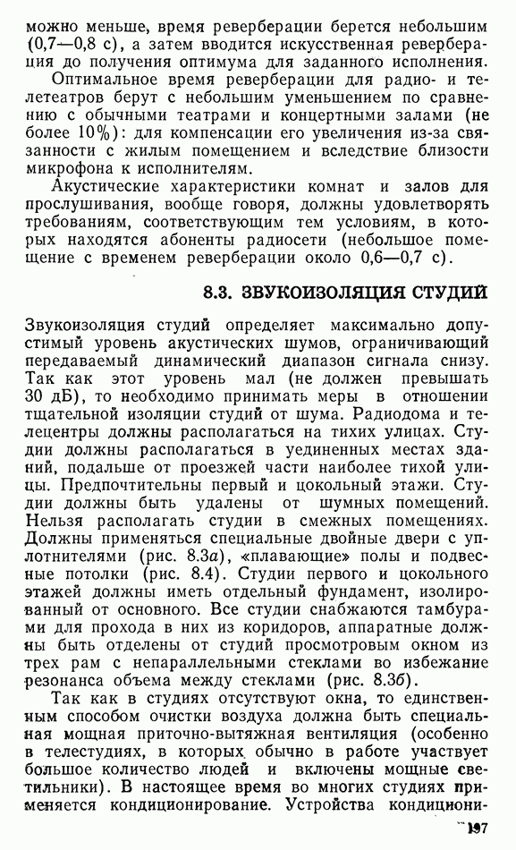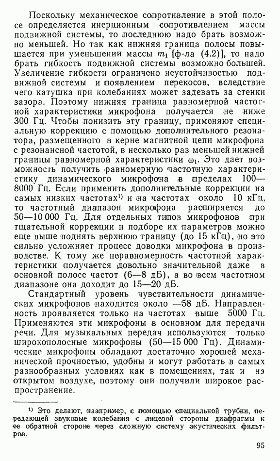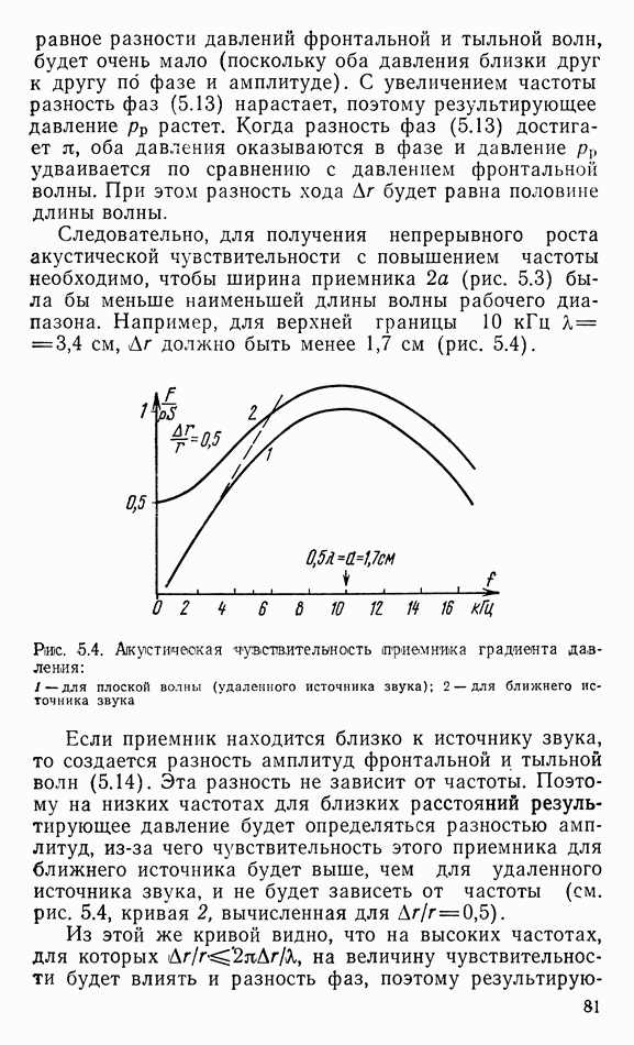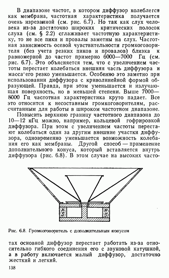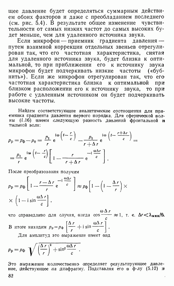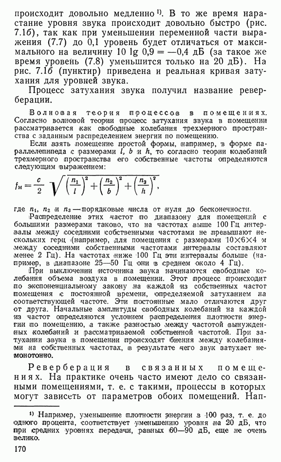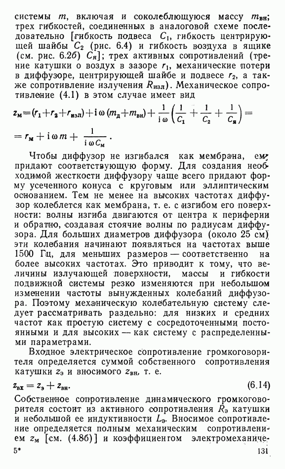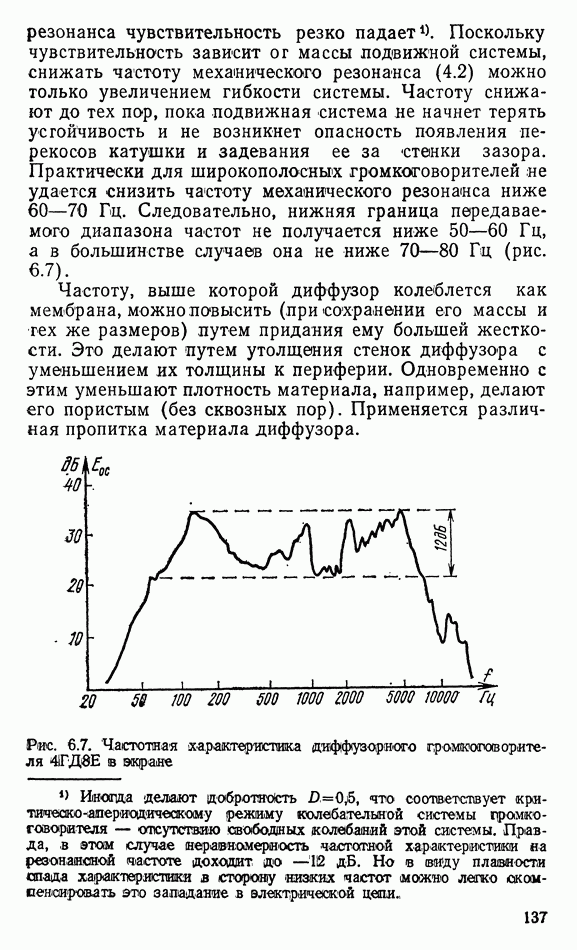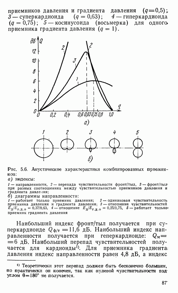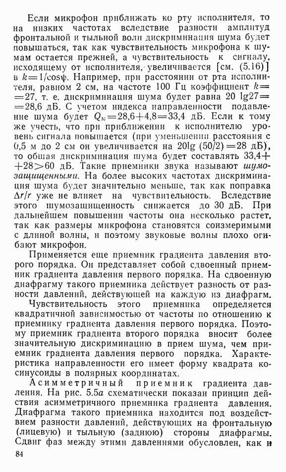(кликните для просмотра скана) высотой подвеса Определим эту зависимость. Хотя каждый из громкоговорителей бесконечной цепочки излучает во все стороны, правомерно считать, что излучение каждого из них распространяется только в зоне, ограниченной плоскостями, перпендикулярными оси цепочки и находящимися по обе стороны каждого источника звука на расстоянии Так как Неравномерность озвучения в пределах озвучиваемой плоскости по ее ширине определится из соотношения между высотой подвеса цепочки Для двух цепочек, расположенных параллельно друг другу на расстоянии В этом случае максимальный уровень на озвучиваемой плоскости (в зависимости от высоты подвеса) может быть под цепочками или смещен к средней линии между ними. Для получения неравномерности меньше При использовании двух цепочек, расположенных на противоположных стенах, уровень прямого звука из-за отражений повышается почти на Для цепочки из звуковых колонок звуковое давление определяется аналогично случаю ненаправленных громкоговорителей, но с введением поправки на эксцентриситеты характеристики направленности в продольной и поперечной плоскостях