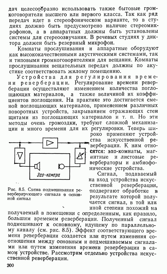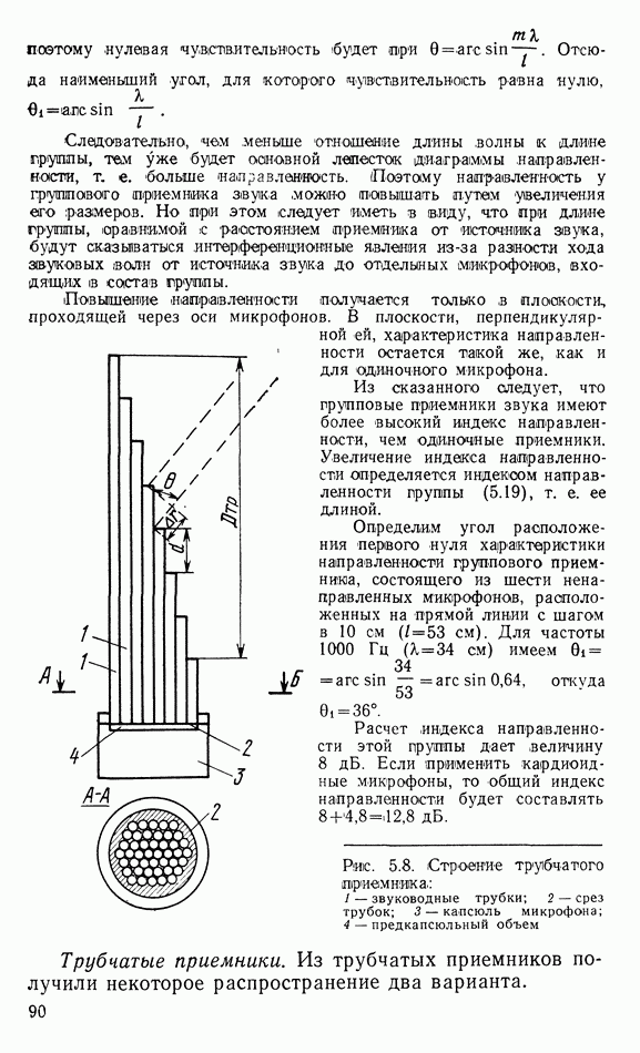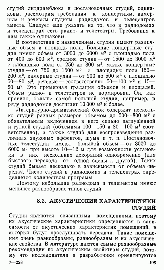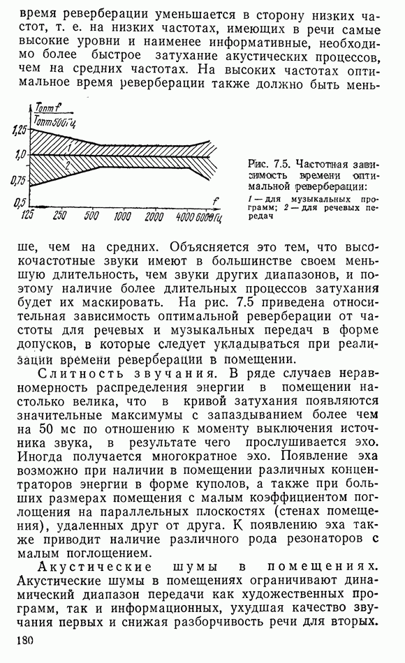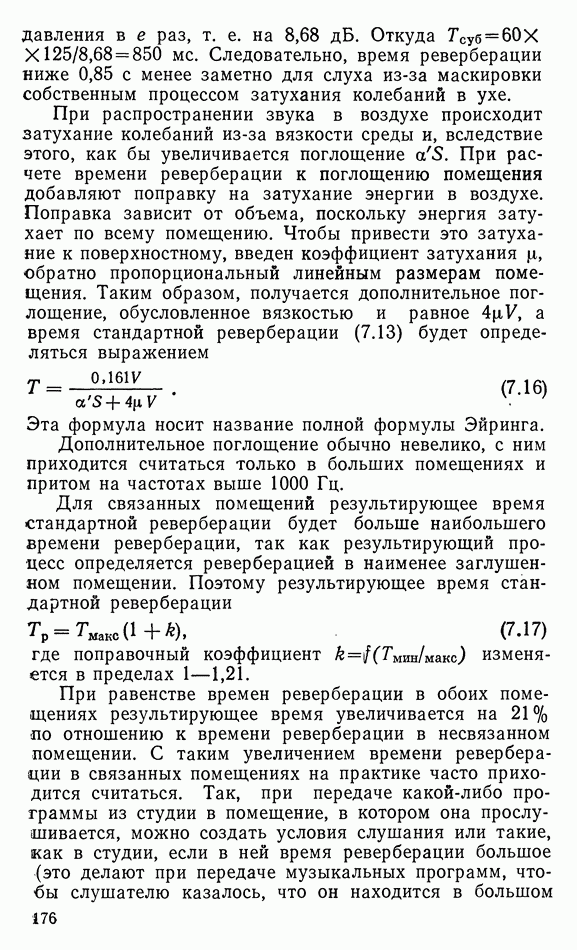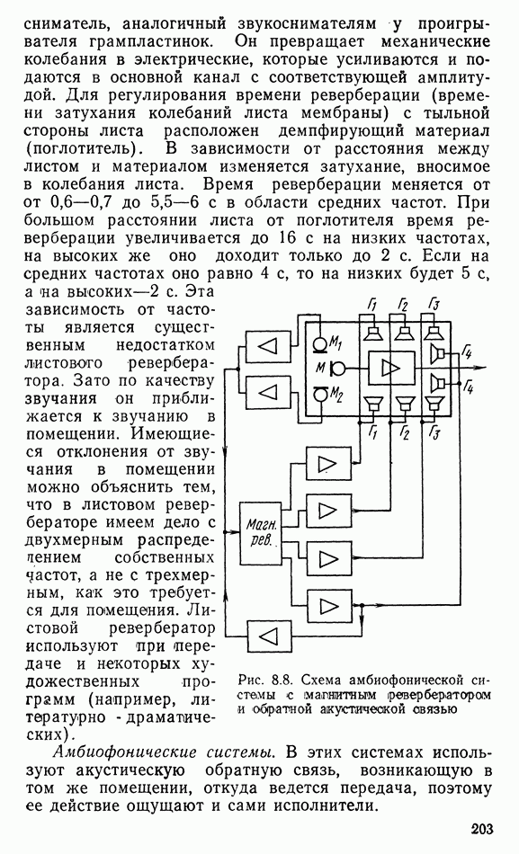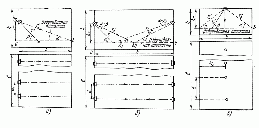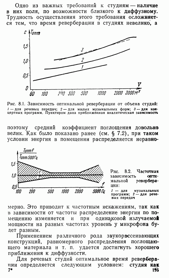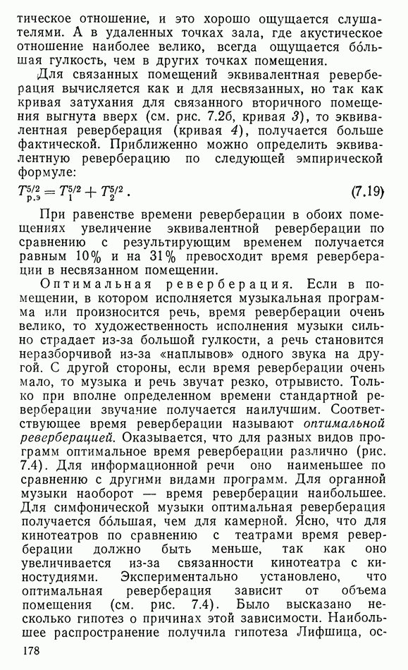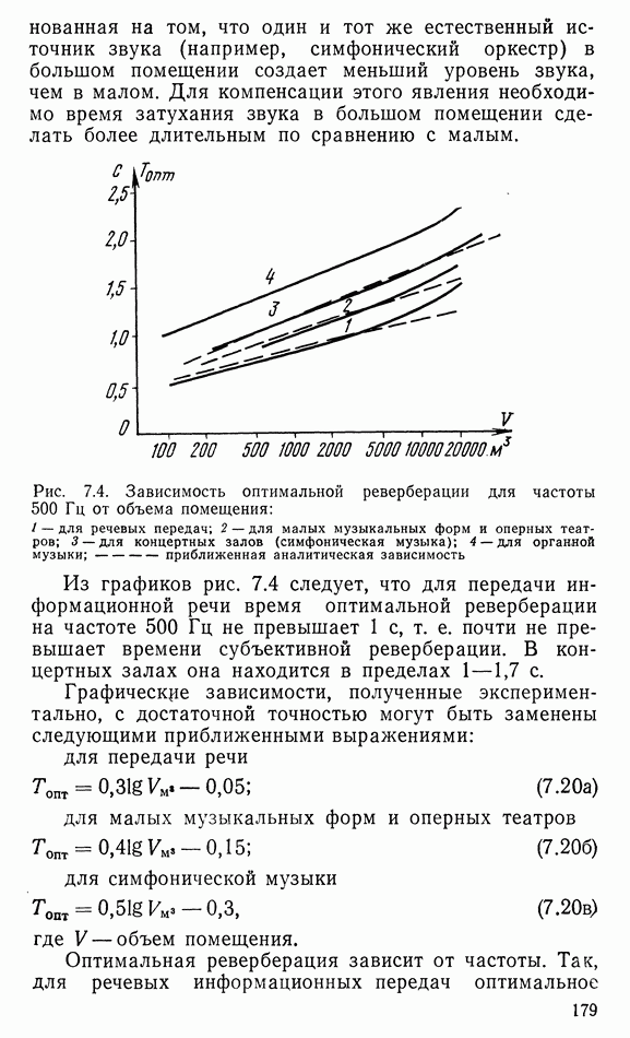 здесь Для двух цепочек из звуковых колонок звуковое давление определяется методом координат, т. е. суммированием интенсивностей, получаемых от каждой из цепочек, аналогично случаю ненаправленных громкоговорителей. Потолочные решетки создают плоскую волну, поэтому звуковое давление, создаваемое ими на озвучиваемой поверхности, определяют как для независимого излучения каждого громкоговорителя только в свою зону, ограниченную размерами Одну настенную цепочку диффузорных громкоговорителей применяют, если ширина помещения не превосходит цепочку из звуковых колонок применяют в помещениях с шириной При выборе распределенной системы громкоговорителей для помещения исходят из возможно меньшего акустического отношения с возможно меньшей неравномерностью озвучения, а также с точки зрения архитектуры. Так, например, в широких помещениях (шириной от 20 до 30 м) для получения небольшого акустического отношения целесообразно применять звуковые колонки, расположенные вдоль сцены. Из предыдущего анализа следует, что распределенные системы применительно к открытому пространству дают наилучшую локализацию звукового поля, но у них совершенно отсутствует локализация первичного источника звука, так как звук к слушателю приходит с разных направлений.