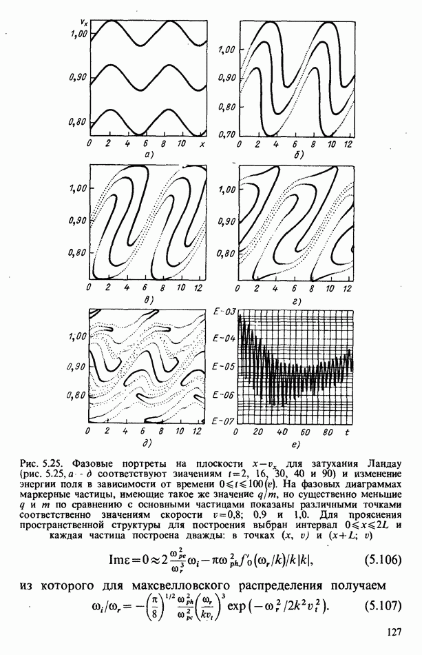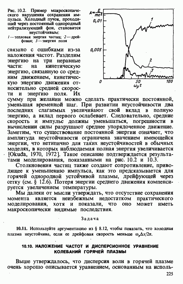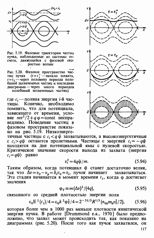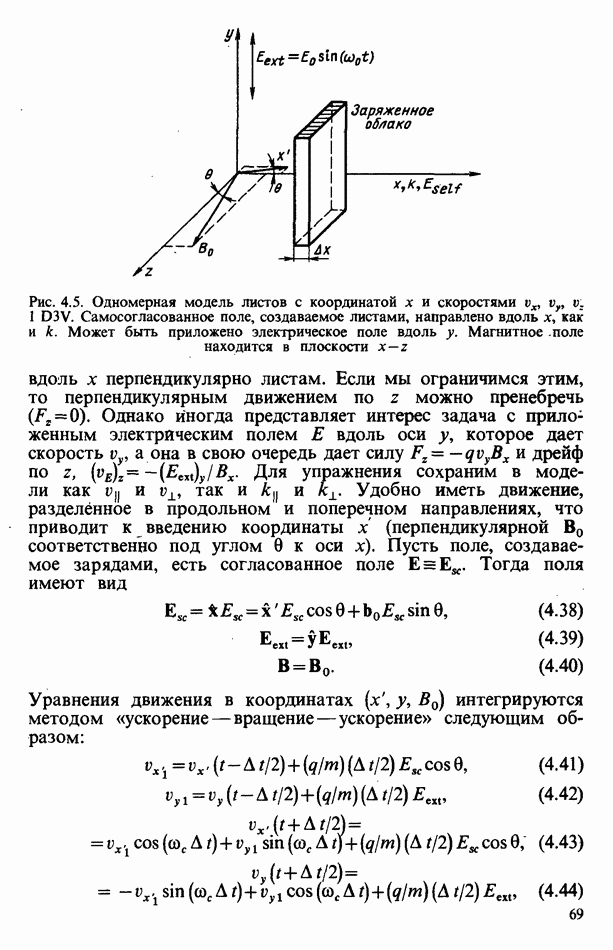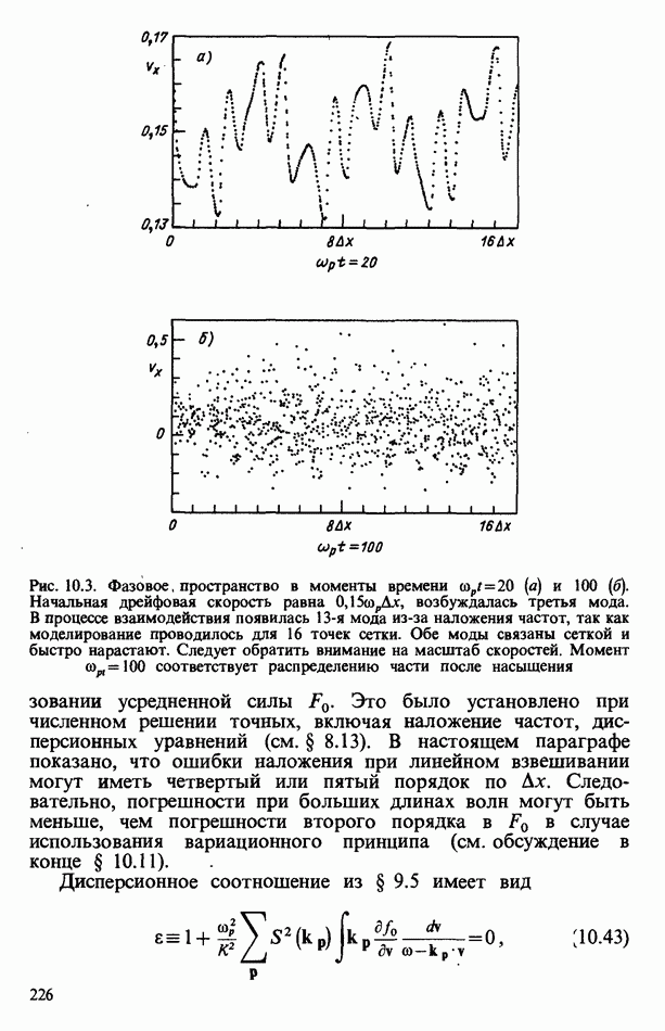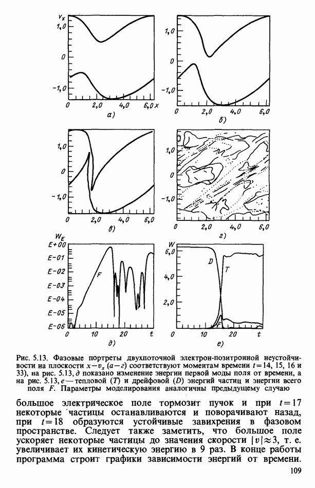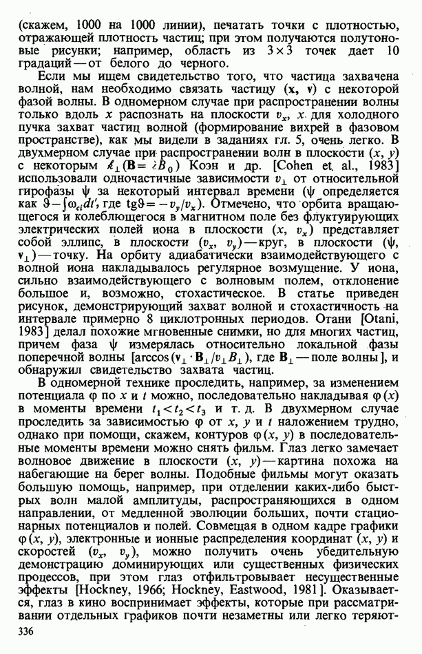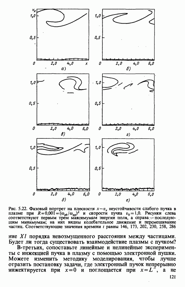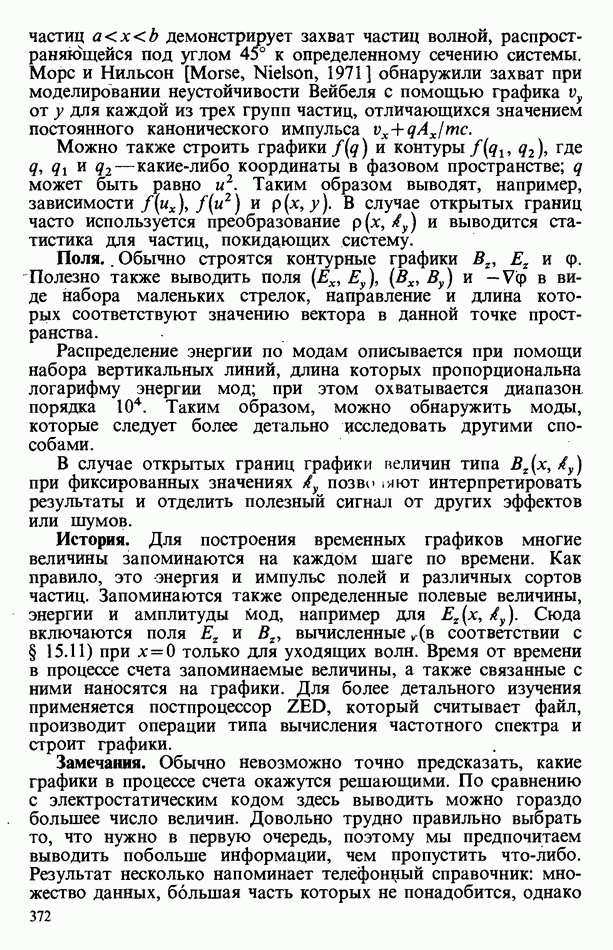 демонстрирует захват частиц волной, распространяющейся под углом 45° к определенному сечению системы. Морс и Нильсон [Morse, Nielson, 1971] обнаружили захват при моделировании неустойчивости Вейбеля с помощью графика
