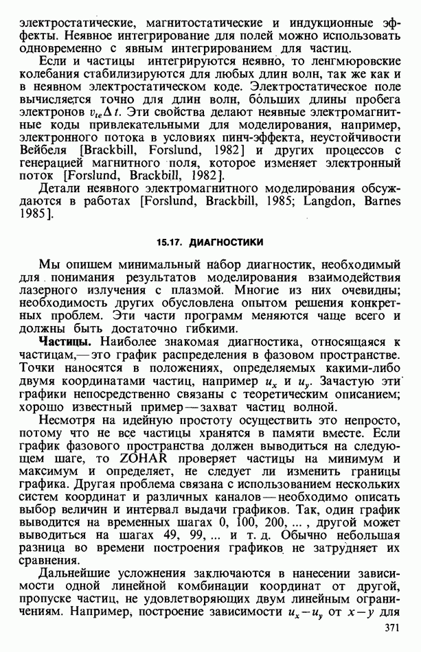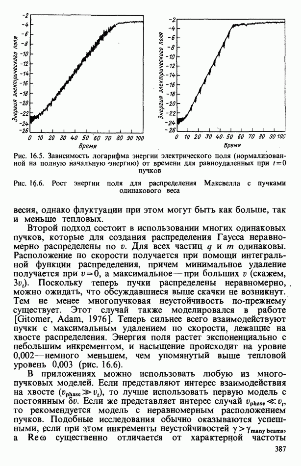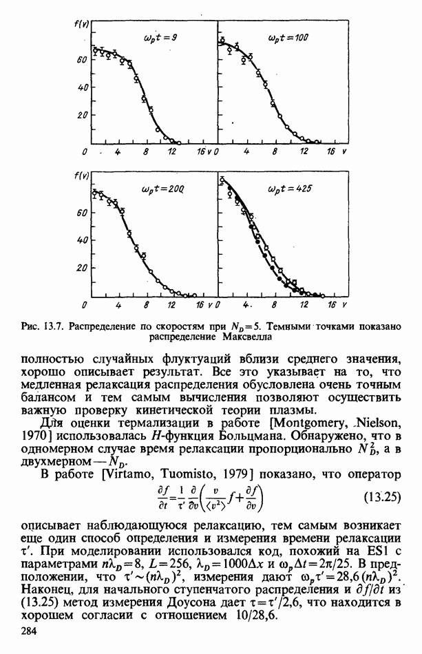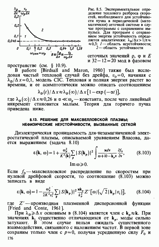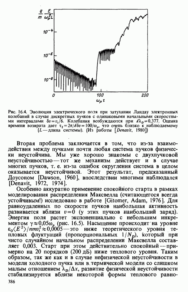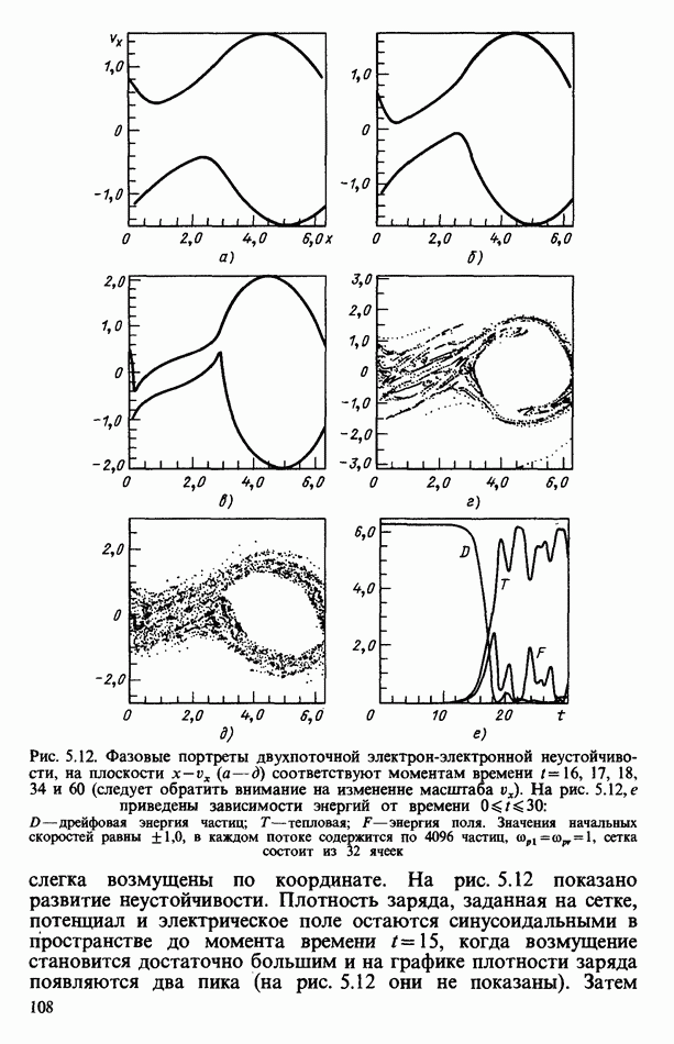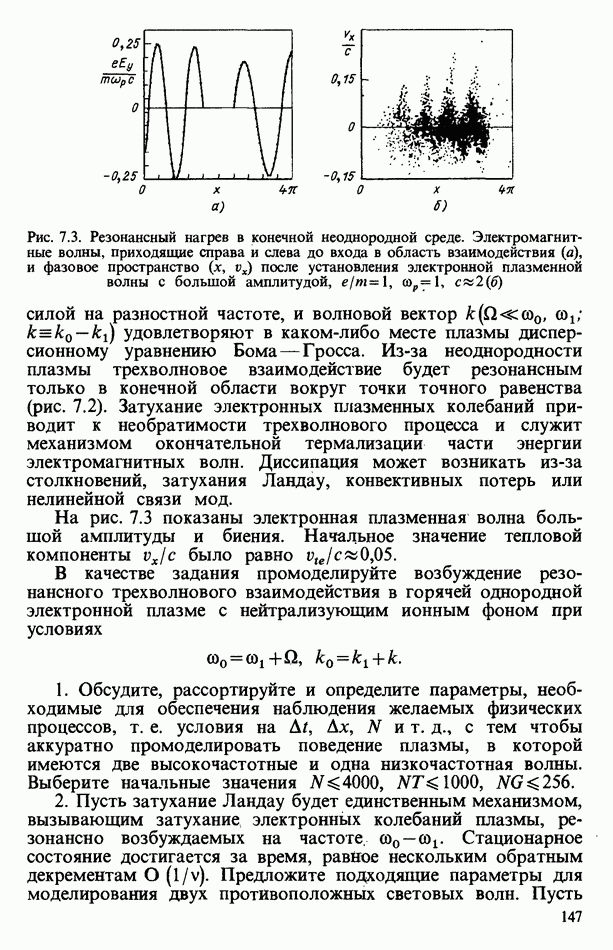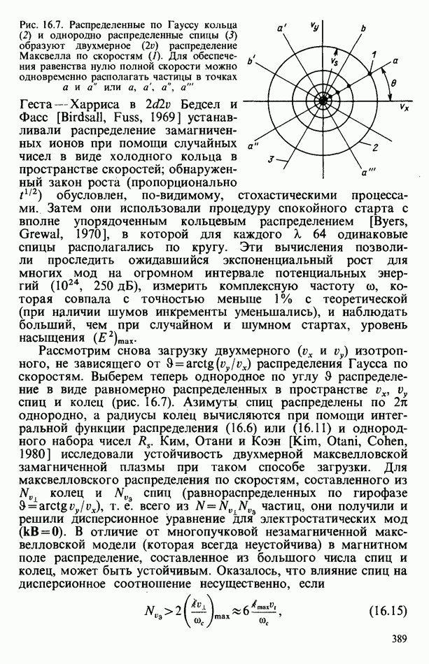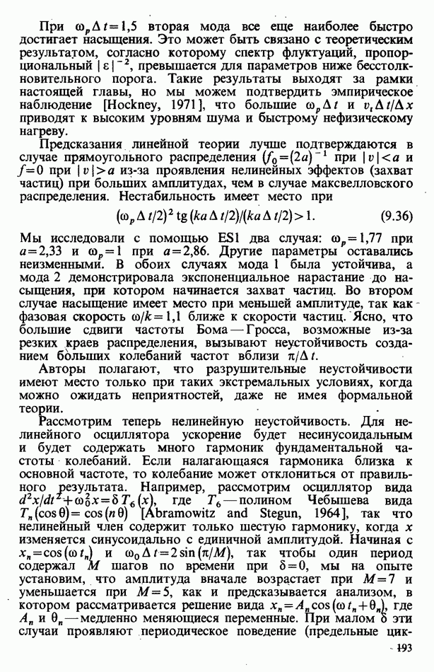 демонстрирует захват частиц волной, распространяющейся под углом 45° к определенному сечению системы. Морс и Нильсон [Morse, Nielson, 1971] обнаружили захват при моделировании неустойчивости Вейбеля с помощью графика