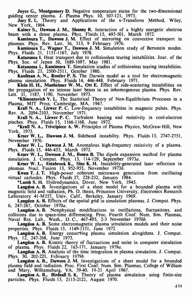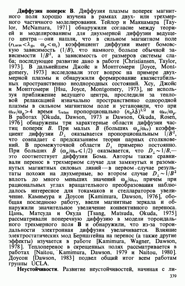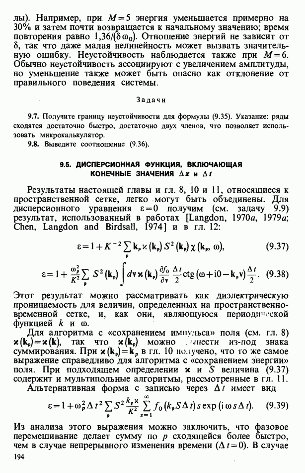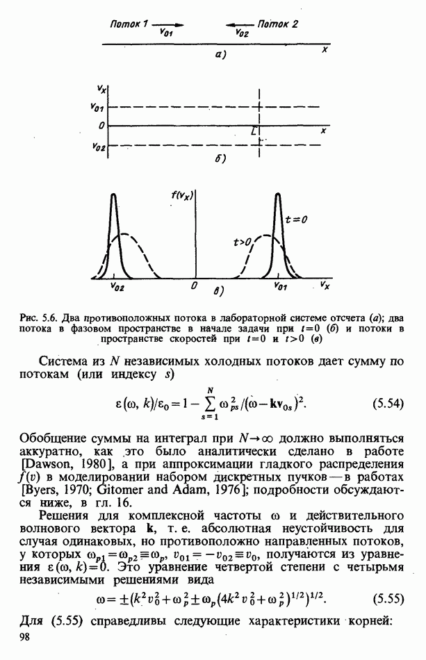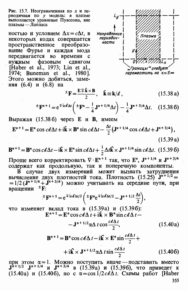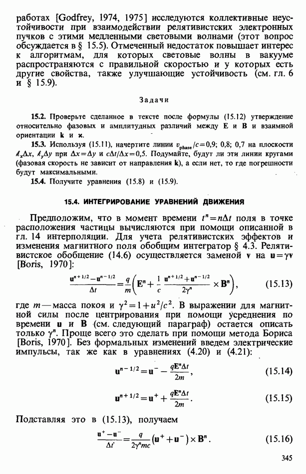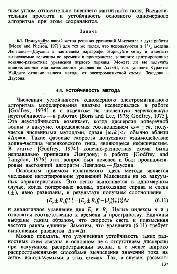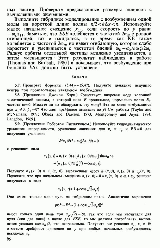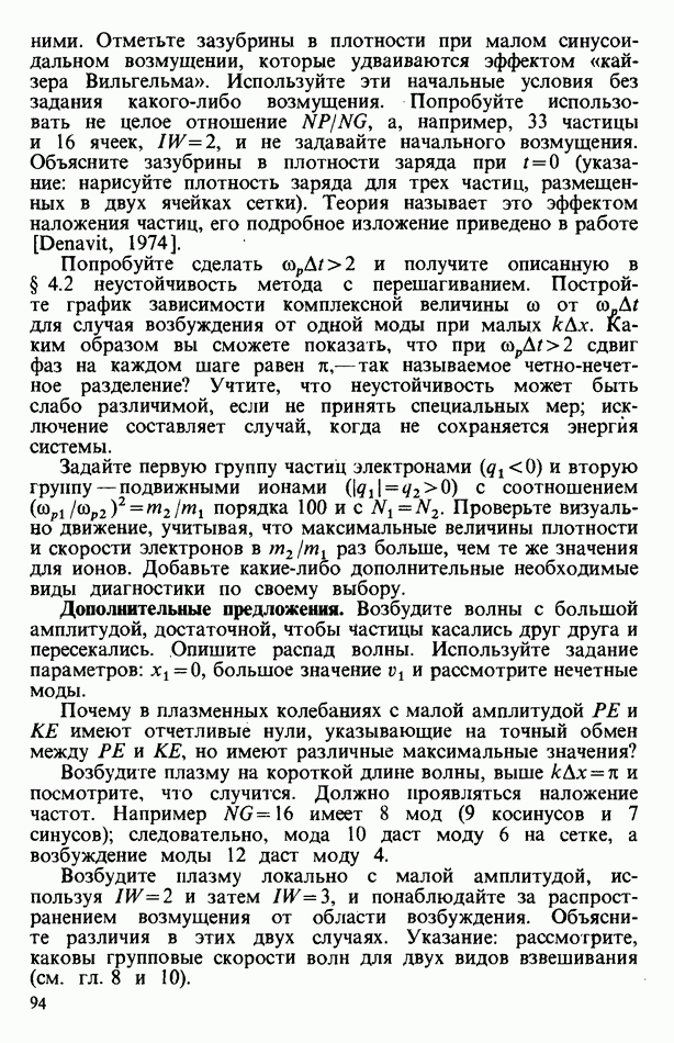демонстрирует захват частиц волной, распространяющейся под углом 45° к определенному сечению системы. Морс и Нильсон [Morse, Nielson, 1971] обнаружили захват при моделировании неустойчивости Вейбеля с помощью графика