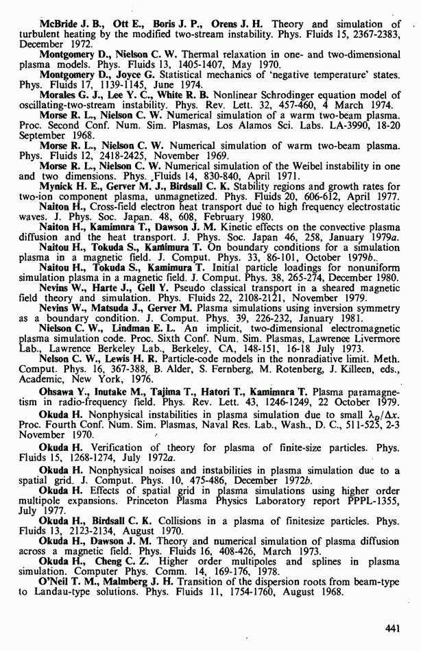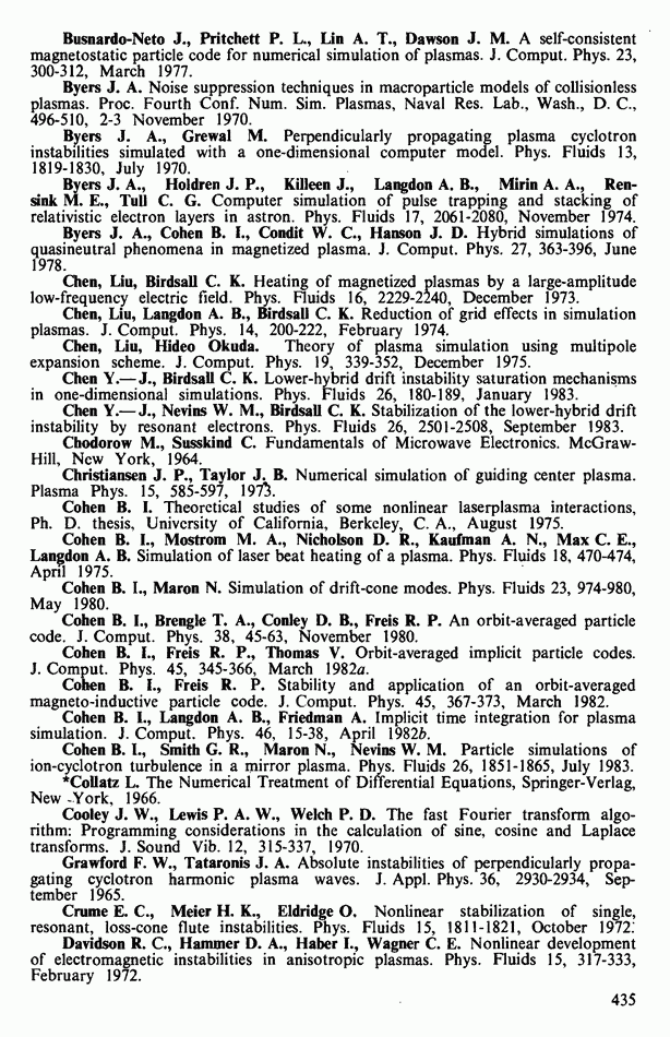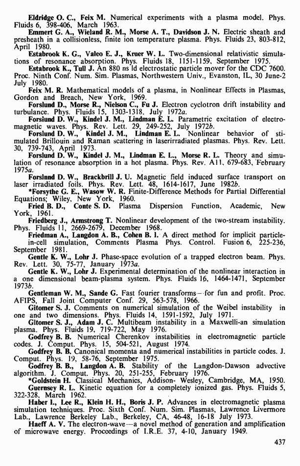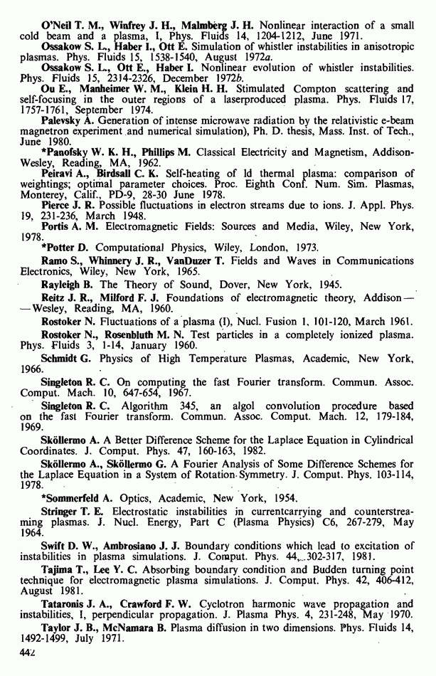 Замечания. Обычно невозможно точно предсказать, какие графики в процессе счета окажутся решающими. По сравнению с электростатическим кодом здесь выводить можно гораздо большее число величин. Довольно трудно правильно выбрать то, что нужно в первую очередь, поэтому мы предпочитаем выводить побольше информации, чем пропустить что-либо. Результат несколько напоминает телефонный справочник: множество данных, большая часть которых не понадобится, однако