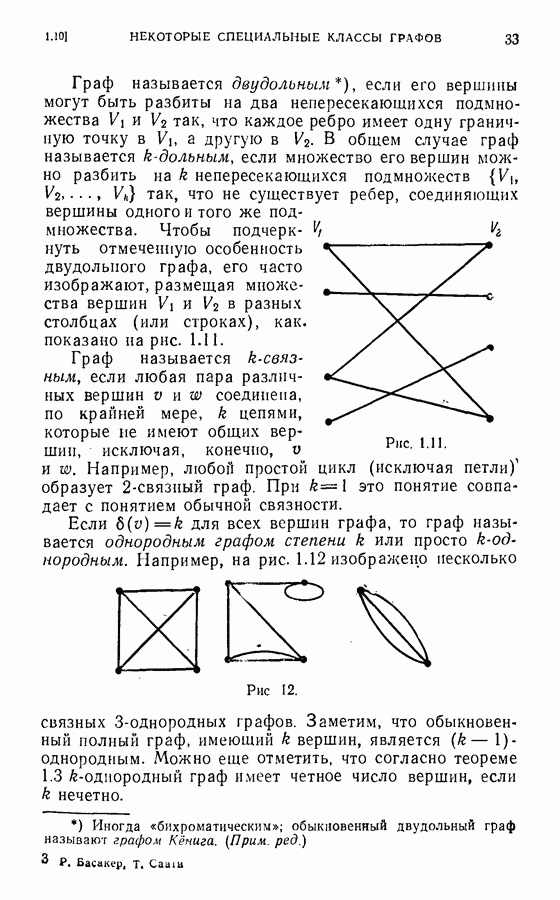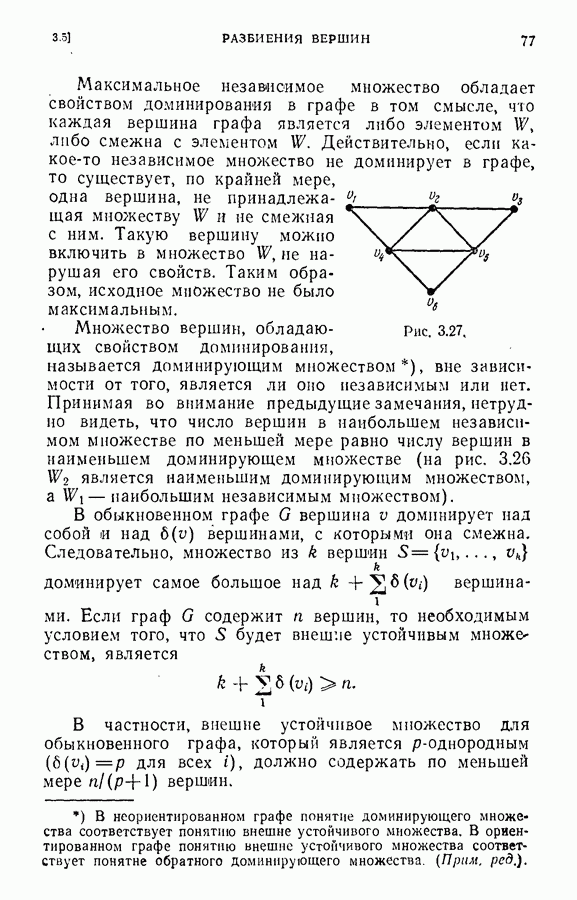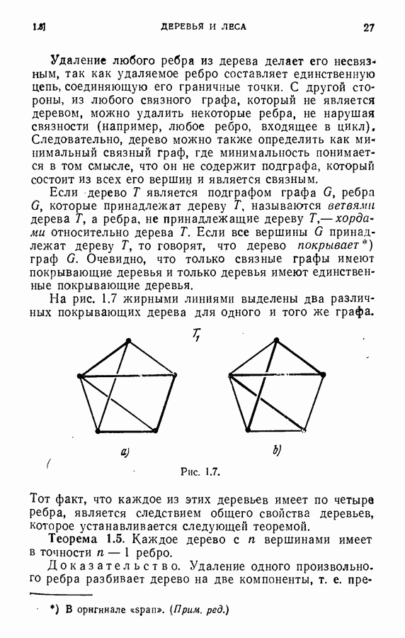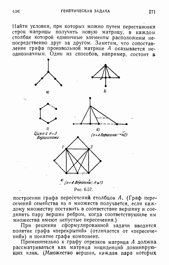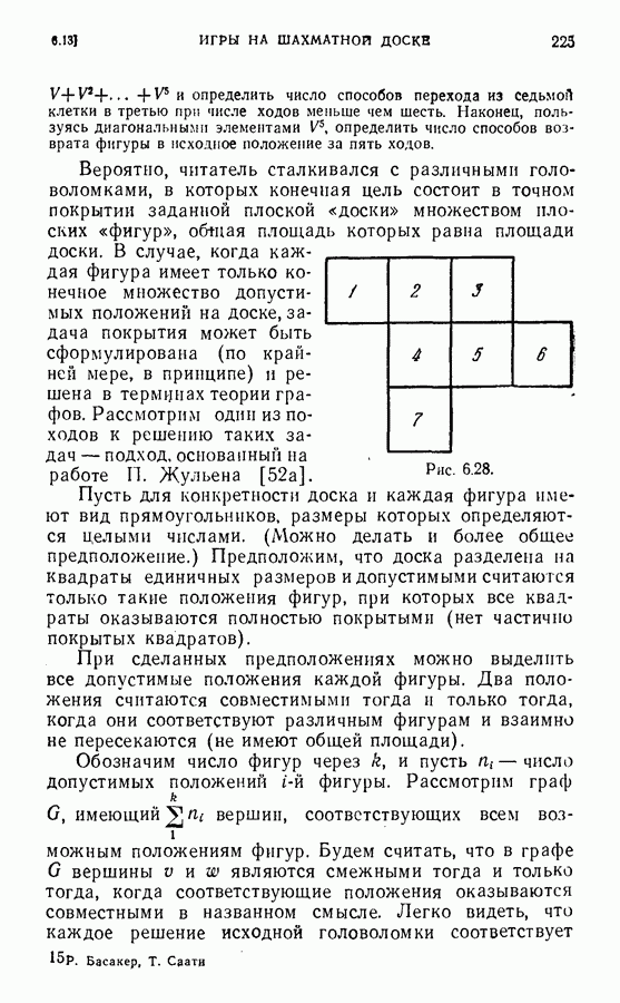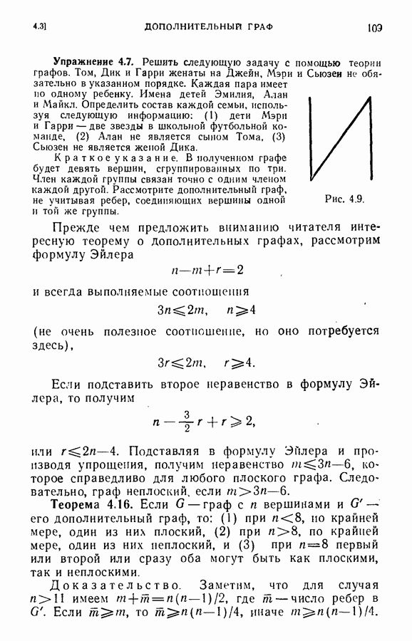 Рис. 6.26. Эта игра является, пожалуй, простейшим видом игры, в которой участвует более одного игрока. Заметим, что множество 1. Ни одна пара вершин, принадлежащих 2. Любая вершина, не принадлежащая 3. Все выигрывающие состояния принадлежат вершин подобное Таким образом, если структура игры полностью определена и выделено ядро Замечание. Читателям, знакомым с игрой «Ним» и с выигрышными стратегиями этой игры, рассмотренные действия помогают определить принадлежность текущего состояния, т. е. оставшегося числа палочек в каждой кучке, к множеству Игра типа «переключение»Рассматриваемая ниже игра была впервые сформулирована Шенноном, а ее решение предложено Леманом [58]. Игра проводится на графе двумя игроками. Оба игрока по договоренности выделяют две вершины, называемые конечными. Затем они поочередно делают ходы. В соответствии с правилами ходов один из игроков на каждом ходе удаляет из графа одно из ребер и стремится в конечном итоге разорвать все цепи, связывающие конечные вершины. Другой игрок на каждом ходе помечает одно из ребер. При этом помеченное ребро не может быть удалено из графа. Цель его состоит в сохранении хотя бы одной цепи между конечными вершинами. Игра, в которой может выиграть первый игрок, независимо от того, кто делает первый ход, называется игрой 1-го типа. Игра, в которой может выиграть второй игрок, — игрой 2-го типа. Игра, в которой может выиграть любой из игроков, сделавший первый ход, называется нейтральной. Далее мы остановимся кратко только на условиях, определяющих игру 2-го типа. Теорема 6.8. Игра принадлежит ко Условие теоремы является достаточным. Действительно, если второй игрок может выиграть, делая второй ход, то, очевидно, он может выиграть и пойдя первым. Его ход должен всегда сохранять ребро, которое связывает две компоненты одного дерева, получающиеся в результате удаления некоторого ребра первым игроком. Так как оба дерева имеют одинаковое число ребер, второй игрок всегда сможет соединить две образовавшиеся компоненты одного дерева ребром, принадлежащим другому дереву. Необходимость доказывается гораздо сложнее. Это доказательство здесь не рассматривается. Разновидностью рассмотренной игры является игра «Gale» или «Bridgeit» (перекидывание мостов), которая описана в работах [27], [58]. Граф этой игры аналогичен показанному жирными линиями на рис. 6.27. Для большего удобства выполнения ходов игра делается симметричной. При такой форме первый игрок делает ходы на графе, показанном тонкими линиями, а второй — на графе, показанном жирными линиями. Цель первого состоит в построении цепи, соединяющей рисунке, с небольшой погрешностью можно считать двойственными (чем вызвана погрешность?).