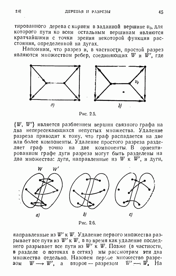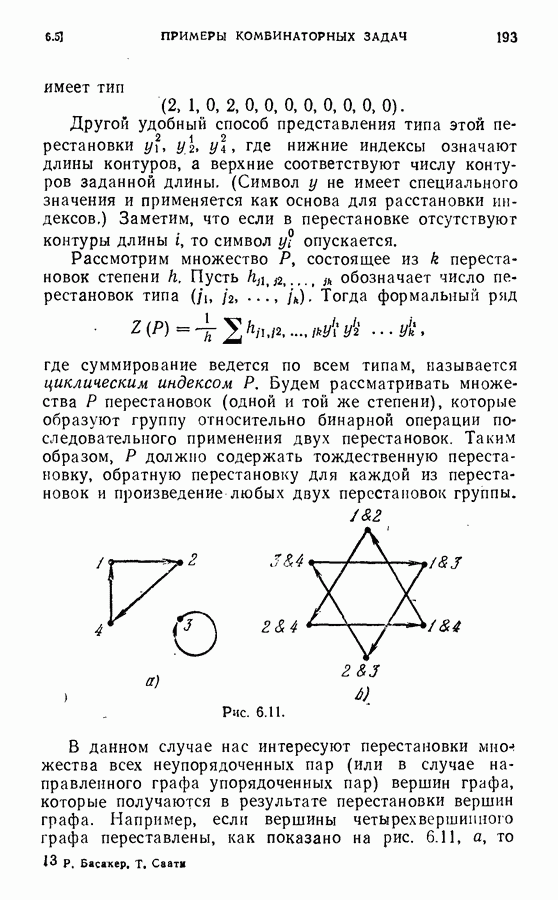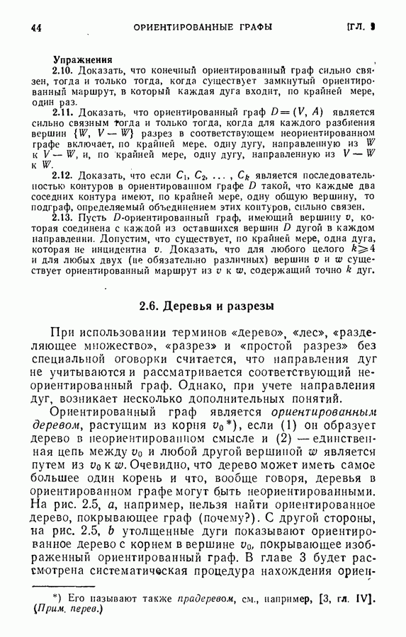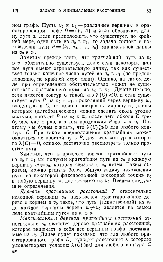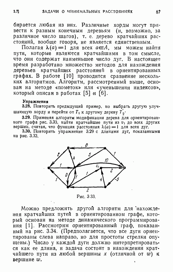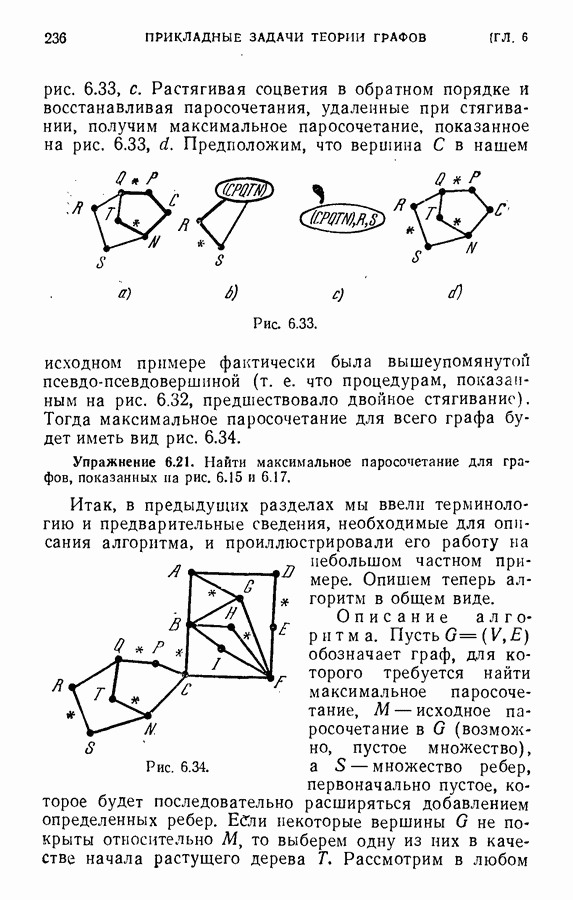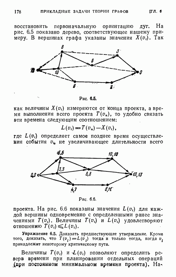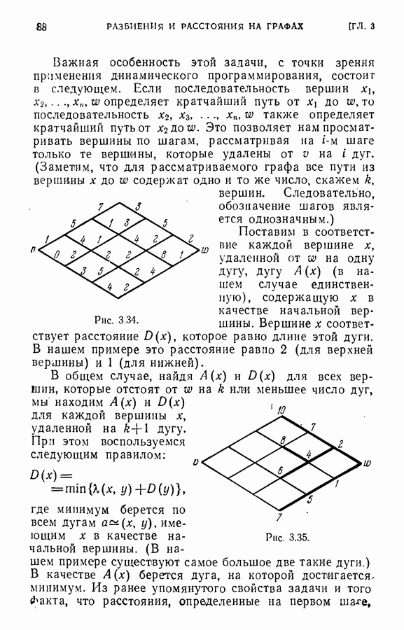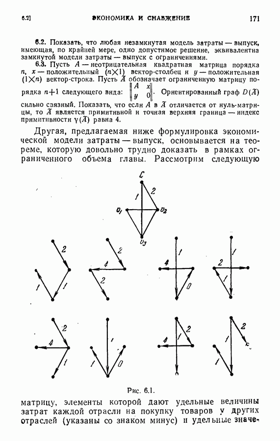 6.12. Игра двух лицОриентированный граф является удобной математической моделью для описания и анализа некоторых типов ситуаций, в которых проявляется соревнование (конкуренция) двух лиц или двух групп лиц, имеющих противоречивые (конфликтные) цели. Предлагаемое ниже краткое обсуждение такого аспекта использования графов не следует рассматривать как попытку формулирования наиболее общих понятий, в рамках которых теория графов применима к описанию таких «игр». Оно не является также попыткой установления соответствия между понятиями теории графов и понятиями формальной теории игр. Рассмотрим ситуацию, в которой два лица поочередно вносят частичные изменения в некоторую структуру. (Например, в систему размещения фигур на шахматной доске.) Пусть имеется некое стандартное начальное состояние (например, исходное положение фигур шахматистов) и «Книга правил», которая полностью определяет список допустимых ходов, т. е. допустимые изменения состояния каждого игрока за 1 шаг. Если существует конечное число различных состояний игры, то правила игры можно полностью характеризовать конечным направленным графом с двумя типами дуг. При этом каждое состояние рассматривается как вершина Предположим, что рассматриваемая игра такова, что ни одно из ее состояний не повторяется, т. е. соответствующий ей граф не имеет контуров. В этом случае число отдельных ходов в партии игры ограничено. Пусть далее «выигрыш» соответствует первому достижению определенного множества состояний, или вершин. Например, можно считать, что в графе без контуров рис. 6.26 у и z соответствуют выигрывающим состояниям, Замечание. Необходимо четко различать партию игры и полную игру. Например, в играх более общего вида некоторый игрок может находиться в «выигрывающем состоянии» и проиграть игру в конечном итоге. И, наоборот, он может находиться в «проигрывающем состоянии» и выиграть в конце игры. Рассматриваемый здесь частный вид игры можно назвать «игрой двух лиц с полной информацией, двумя исходами (проиграл — выиграл), заданной в полной форме».