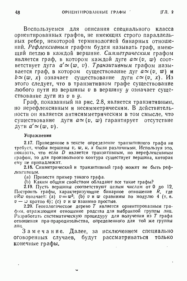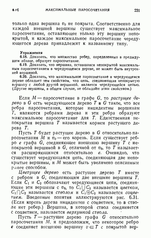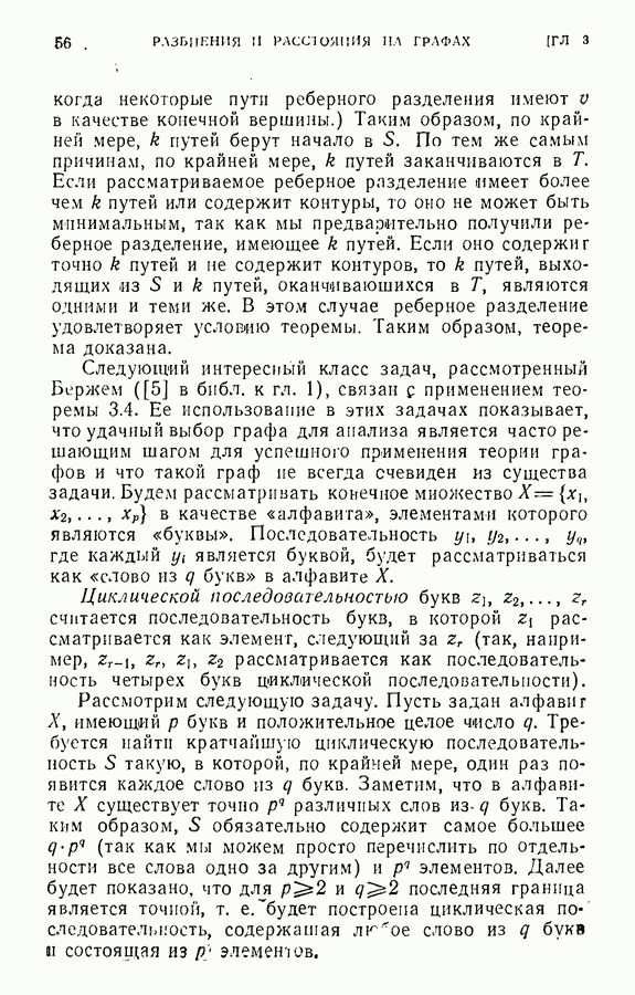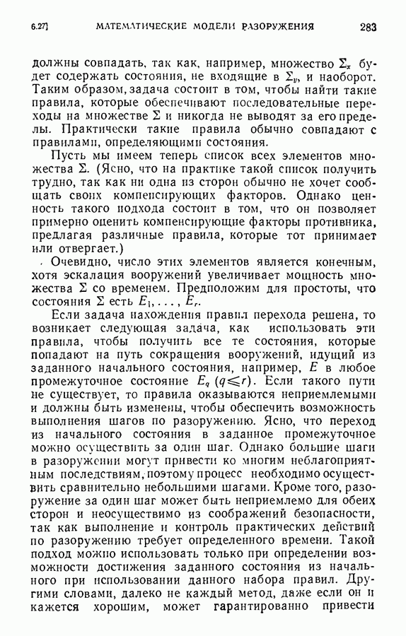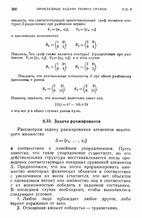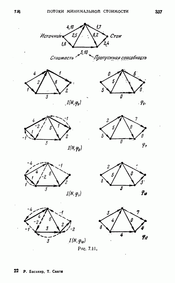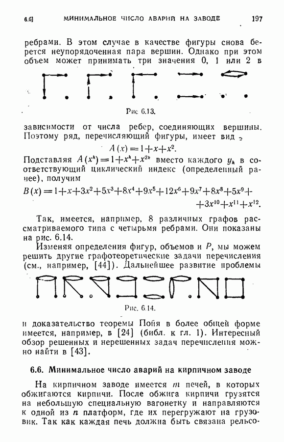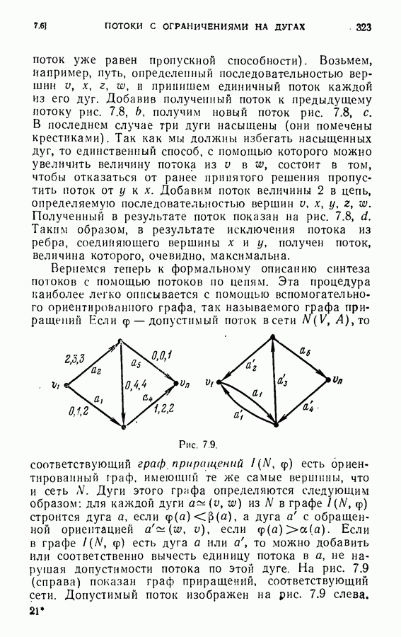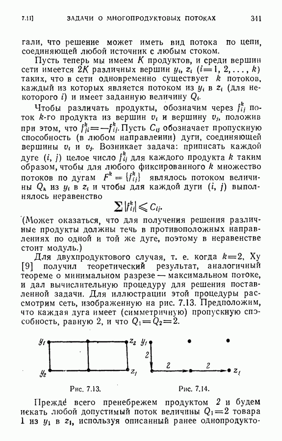 6.12. Игра двух лицОриентированный граф является удобной математической моделью для описания и анализа некоторых типов ситуаций, в которых проявляется соревнование (конкуренция) двух лиц или двух групп лиц, имеющих противоречивые (конфликтные) цели. Предлагаемое ниже краткое обсуждение такого аспекта использования графов не следует рассматривать как попытку формулирования наиболее общих понятий, в рамках которых теория графов применима к описанию таких «игр». Оно не является также попыткой установления соответствия между понятиями теории графов и понятиями формальной теории игр. Рассмотрим ситуацию, в которой два лица поочередно вносят частичные изменения в некоторую структуру. (Например, в систему размещения фигур на шахматной доске.) Пусть имеется некое стандартное начальное состояние (например, исходное положение фигур шахматистов) и «Книга правил», которая полностью определяет список допустимых ходов, т. е. допустимые изменения состояния каждого игрока за 1 шаг. Если существует конечное число различных состояний игры, то правила игры можно полностью характеризовать конечным направленным графом с двумя типами дуг. При этом каждое состояние рассматривается как вершина Предположим, что рассматриваемая игра такова, что ни одно из ее состояний не повторяется, т. е. соответствующий ей граф не имеет контуров. В этом случае число отдельных ходов в партии игры ограничено. Пусть далее «выигрыш» соответствует первому достижению определенного множества состояний, или вершин. Например, можно считать, что в графе без контуров рис. 6.26 у и z соответствуют выигрывающим состояниям, Замечание. Необходимо четко различать партию игры и полную игру. Например, в играх более общего вида некоторый игрок может находиться в «выигрывающем состоянии» и проиграть игру в конечном итоге. И, наоборот, он может находиться в «проигрывающем состоянии» и выиграть в конце игры. Рассматриваемый здесь частный вид игры можно назвать «игрой двух лиц с полной информацией, двумя исходами (проиграл — выиграл), заданной в полной форме».