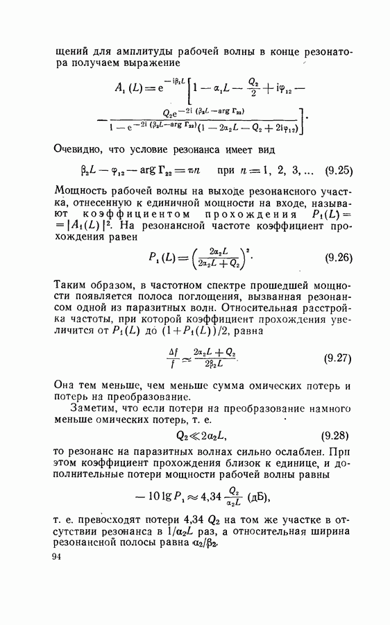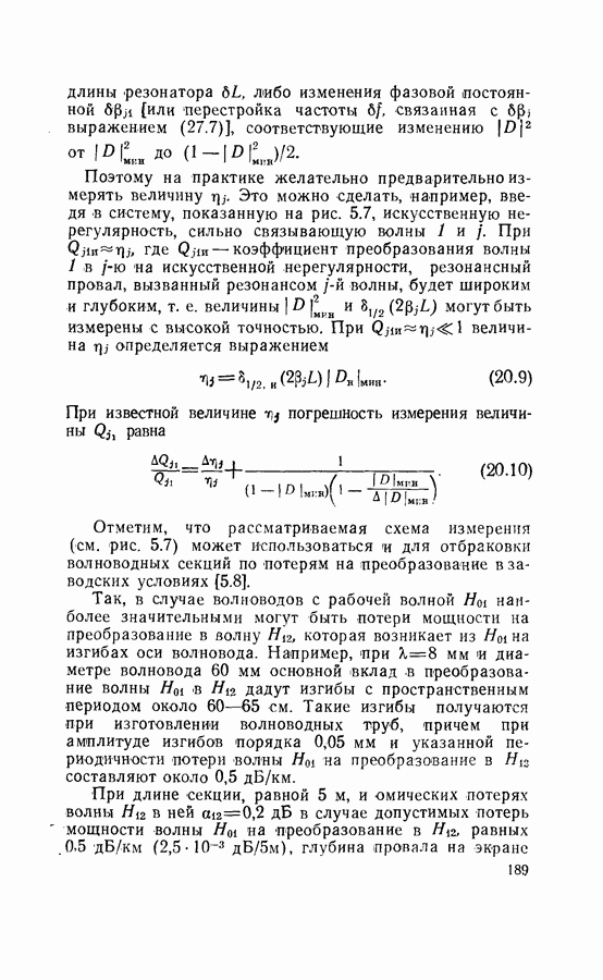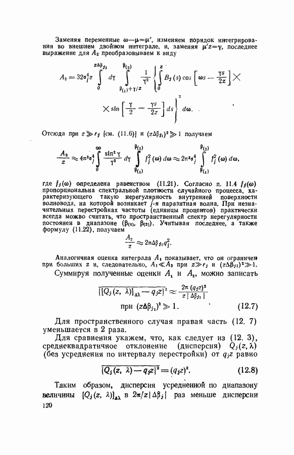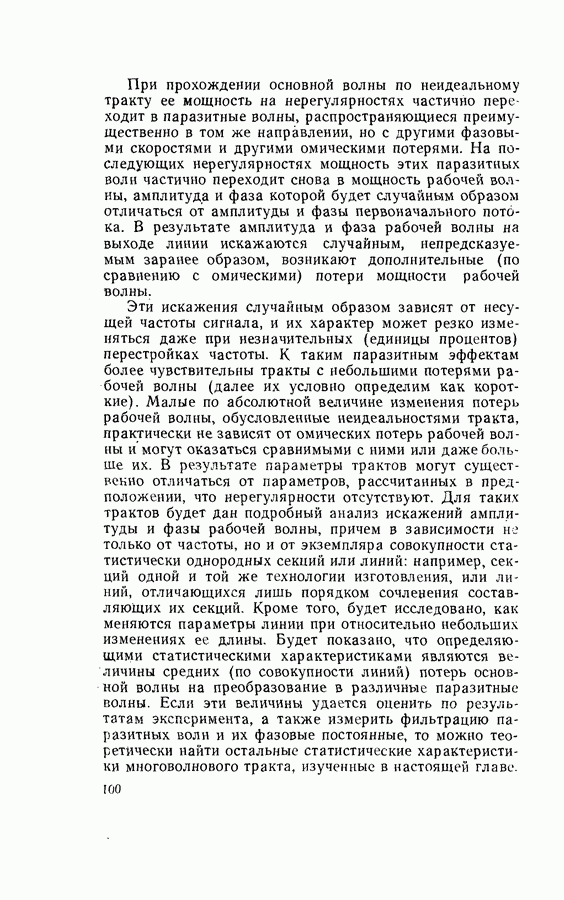 и обратно, приводящий к дополнительным потерям основной волны, определяется в основном лишь теми гармониками в спектре соответствующих нерегулярностей, которые расположены в узкой полосе вокруг «частоты»