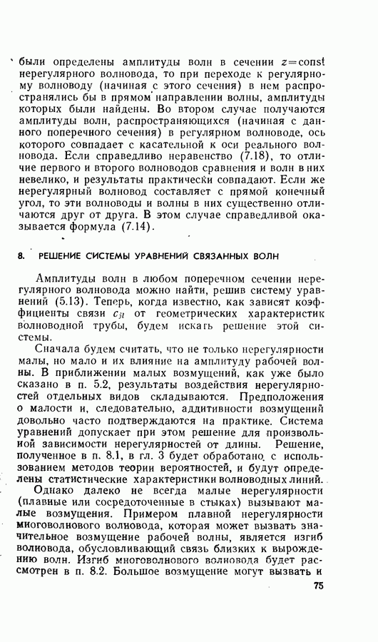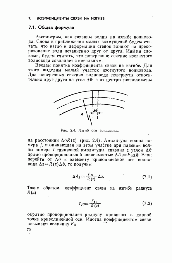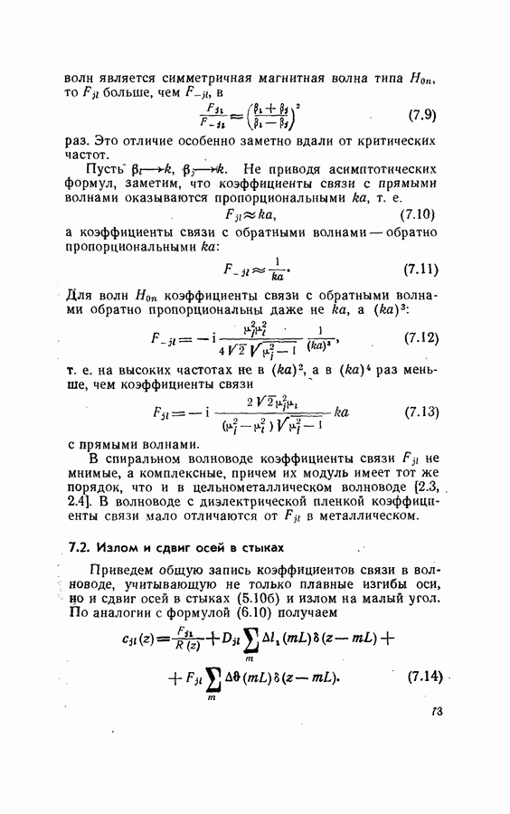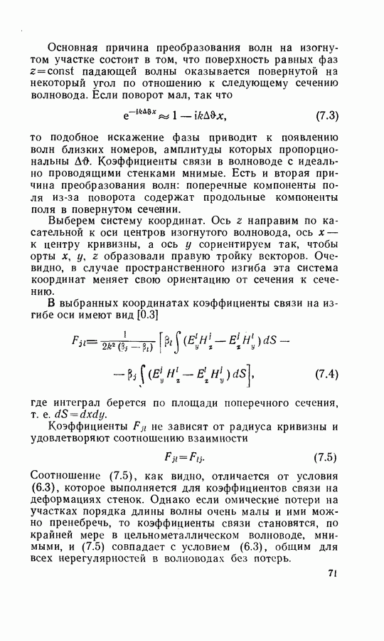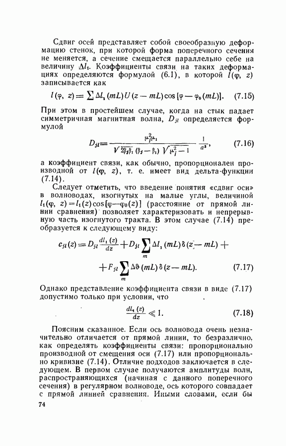 Согласно результатам, приведенным в § 6 и 7, коэффициент связи пропорционален либо скорости изменения параметров сечения волновода, т. е. производной величины нерегулярностей, либо кривизне оси,