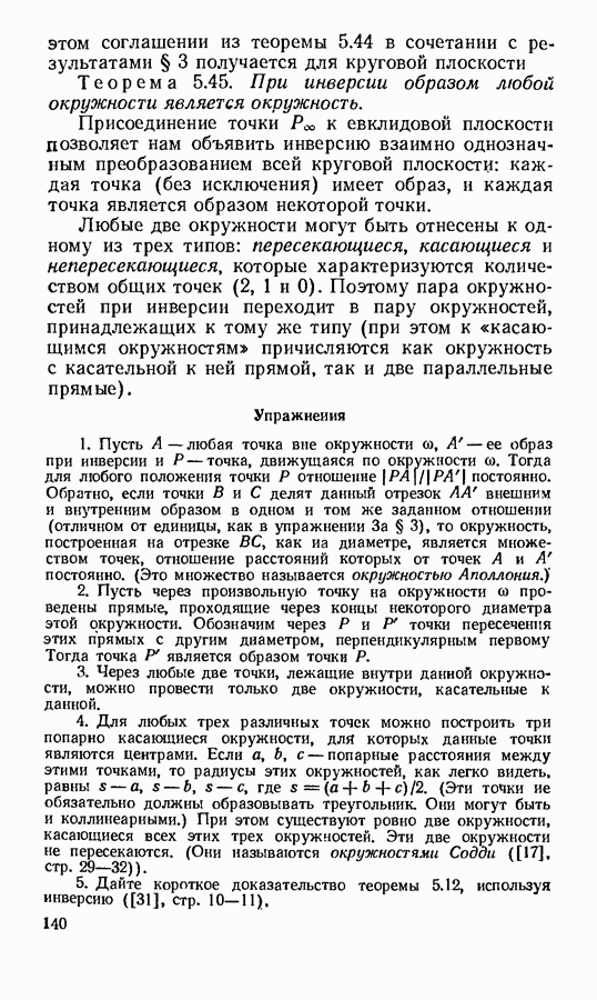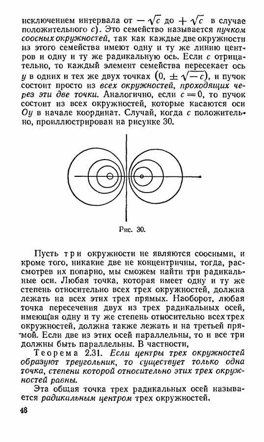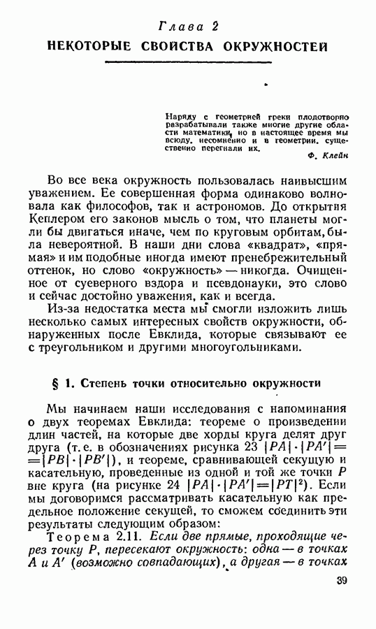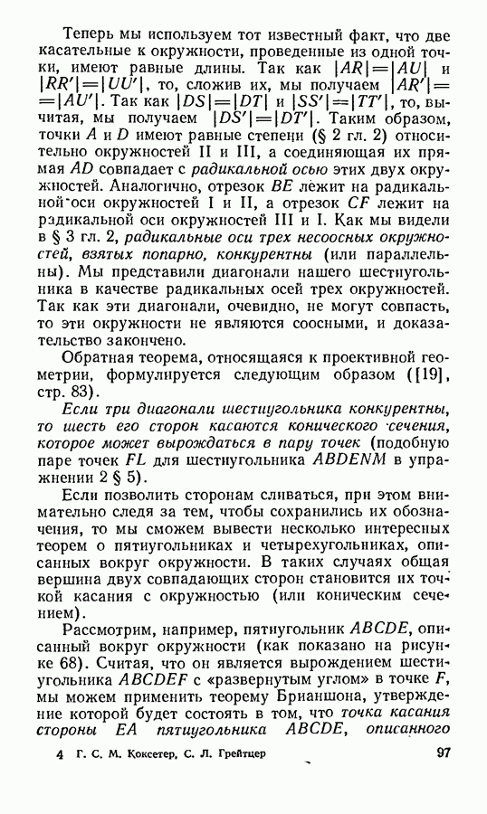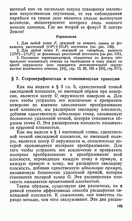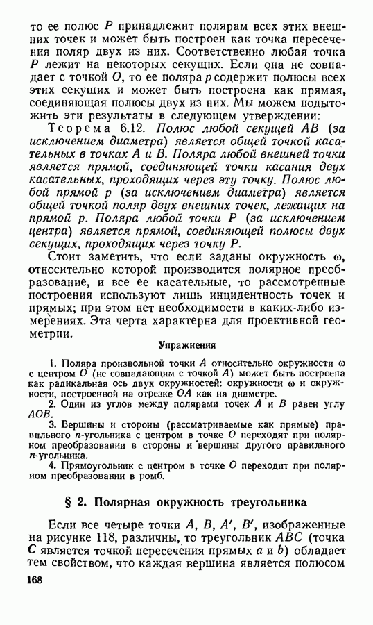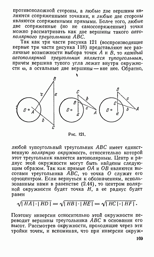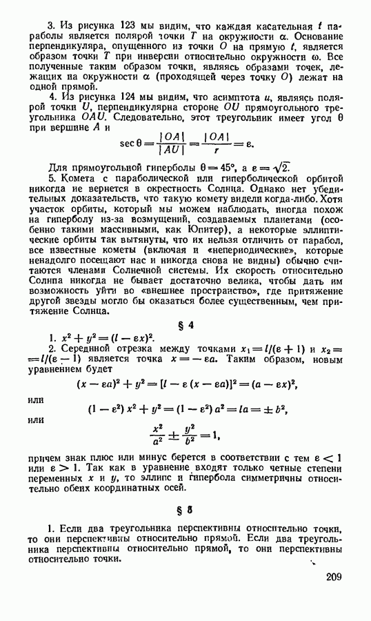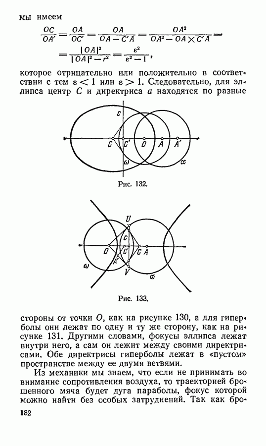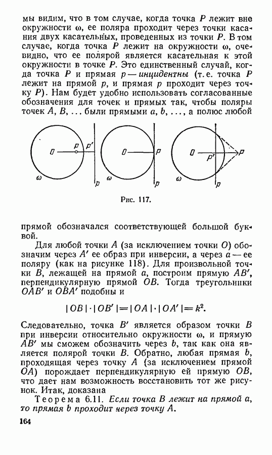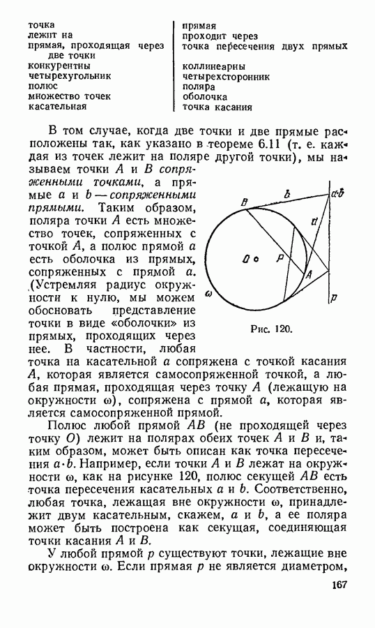 которое называется эксцентриситетом конического сечения. Точка О называется его фокусом. Описывая коническое сечение как образ при полярном преобразовании окружности а, мы рассматриваем его в обоих аспектах: как множество полюсов прямых, касательных к окружности а, так и как оболочку из поляр точек, лежащих на окружности а. Если